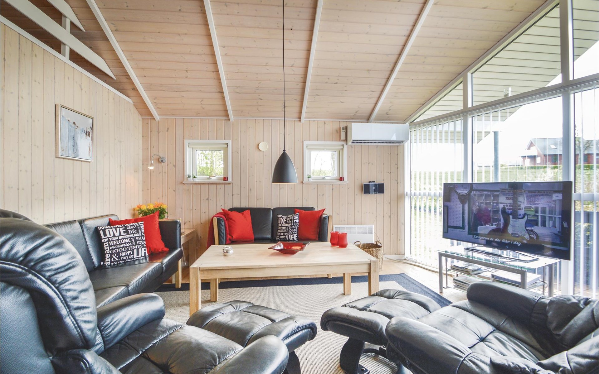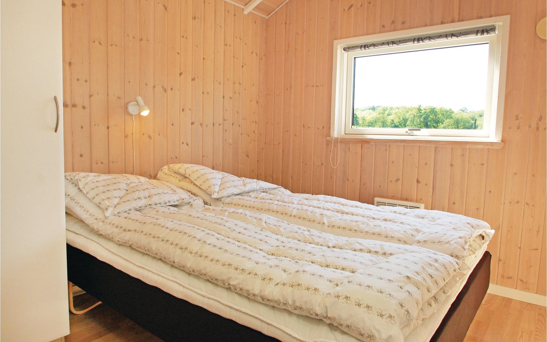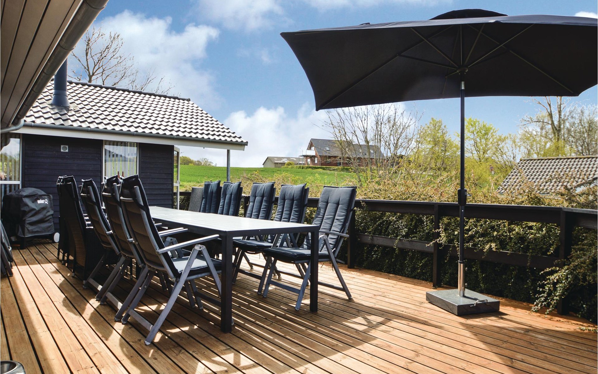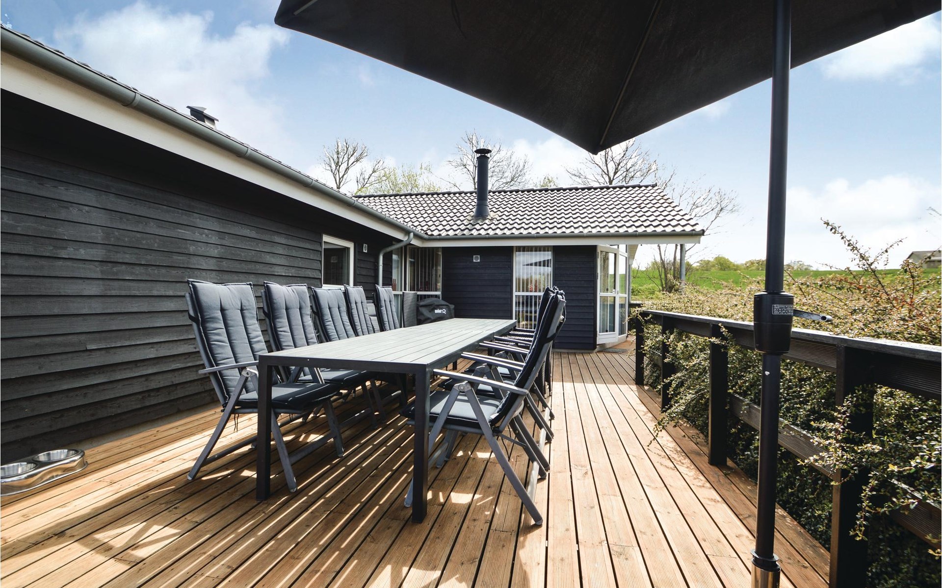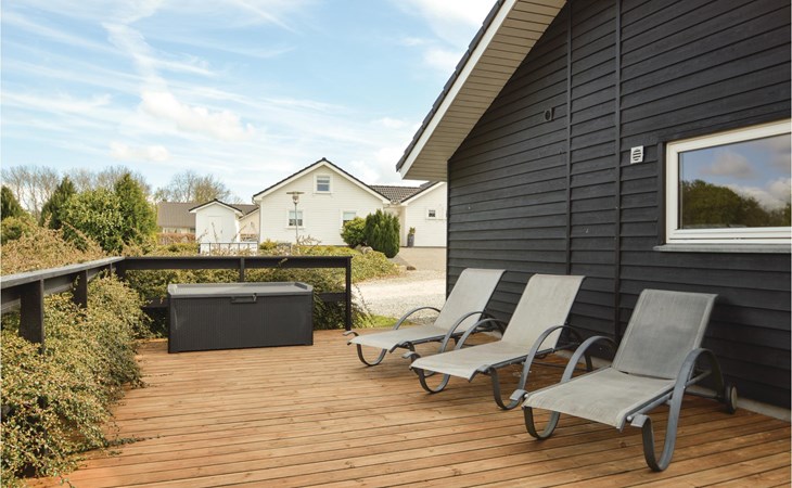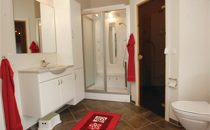Het vakantiehuis heeft een eigen tuinperceel en ligt hoog ten opzichte van de andere huizen. Vanaf het grote terras heeft u een goed uitzicht over het gebied met bos en waterlopen. Het huis is mooi en modern ingericht. Het is slechts enkele kilometers verwijderd van een waterpark, een golfbaan en een speeltuin.