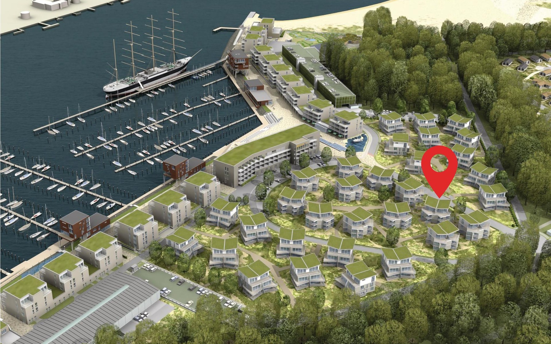 Deze hoogwaardige vakantiewoning ligt op een rustige locatie in het nieuwe vakantieresort BeachBay aan de Priwall in Lübeck Travemünde. De duinvilla ligt tussen strandgras en aangelegde zandduinen achter de promenadevilla's.