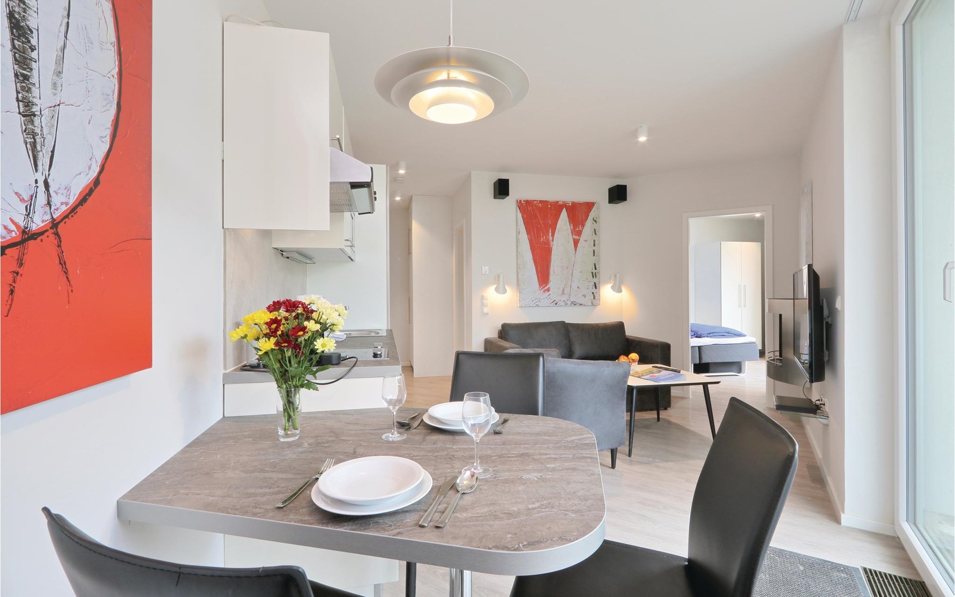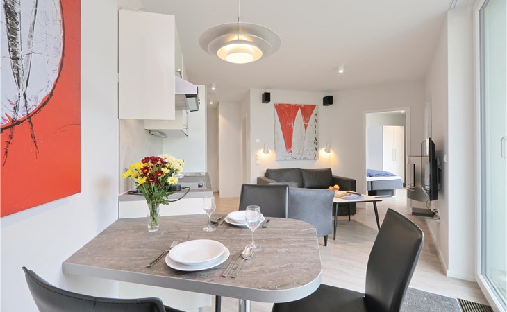 De modern ingerichte vakantiewoning biedt genoeg ruimte voor vier personen. De slaapkamer is ingericht met een gezellig tweepersoonsbed en er is een slaapbank in het woongedeelte, waar nog twee personen kunnen slapen. De kitchenette en eethoek bevinden zich ook hier. Je kunt het jezelf gemakkelijk maken voor de bio-ethanol open haard. De twee balkons zijn toegankelijk vanuit de slaapkamer of het woongedeelte. Hier kun je 's ochtends genieten van de eerste zonnestralen en de frisse Oostzeelucht.