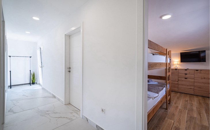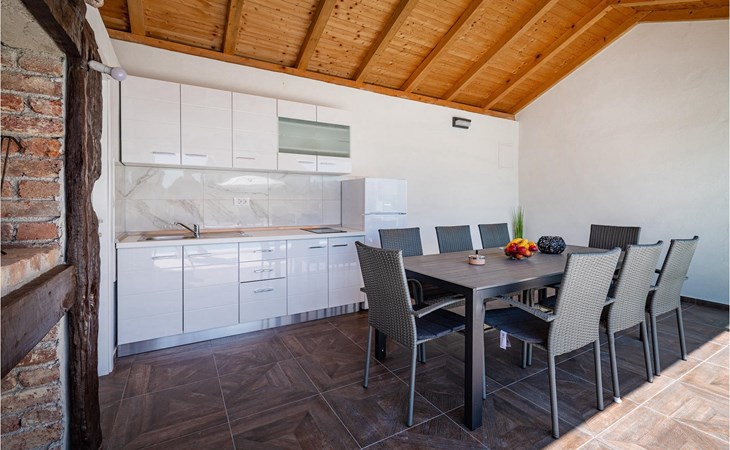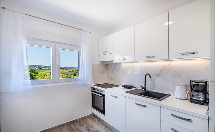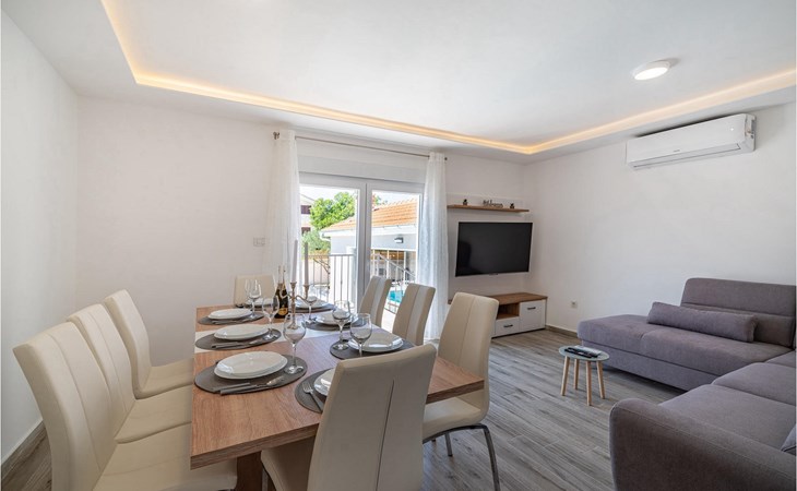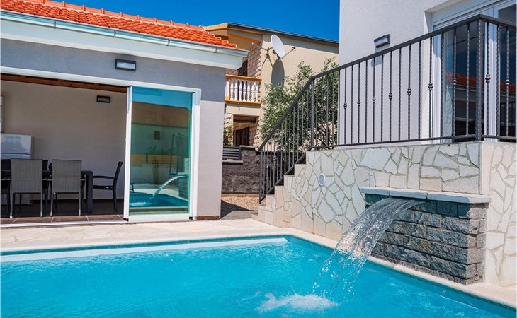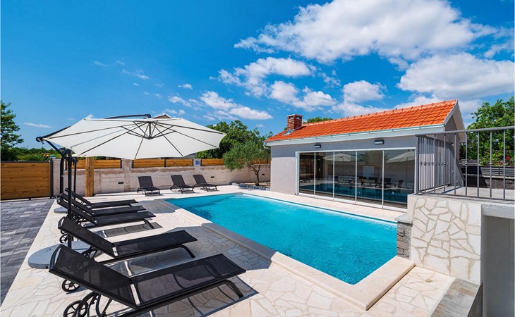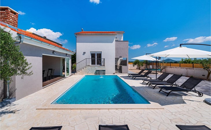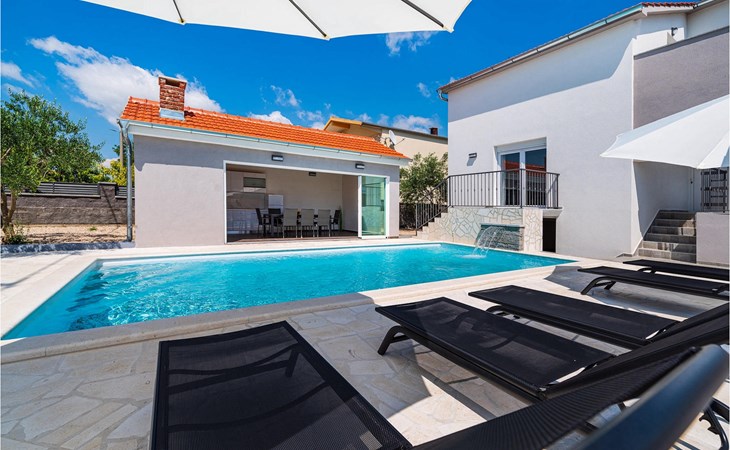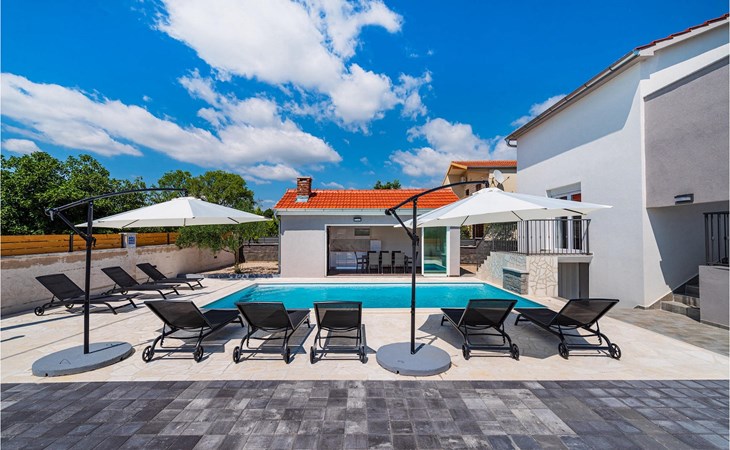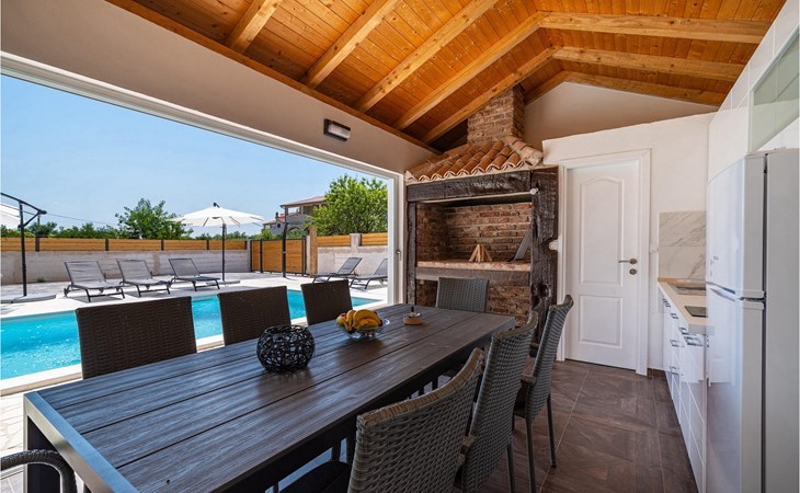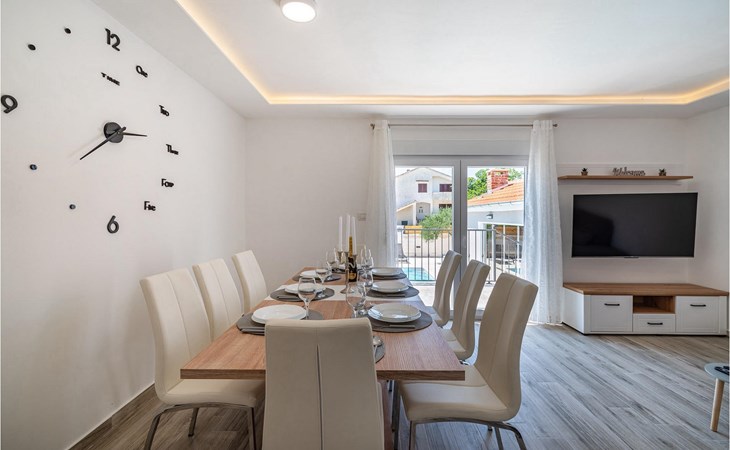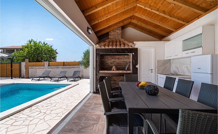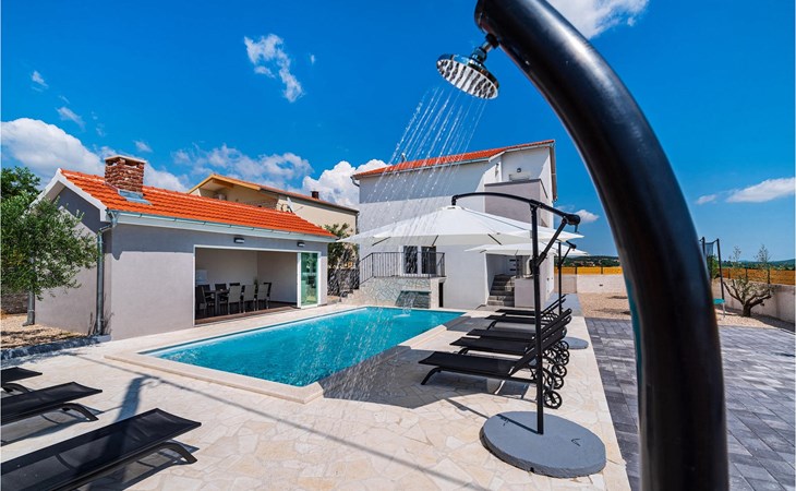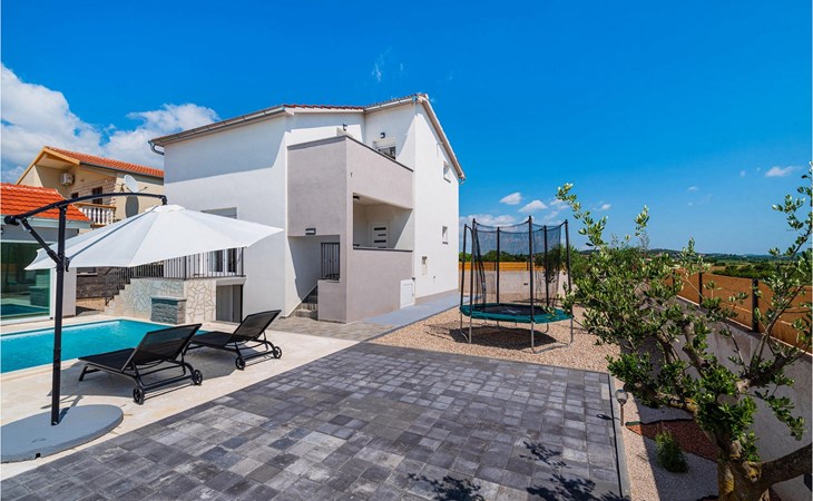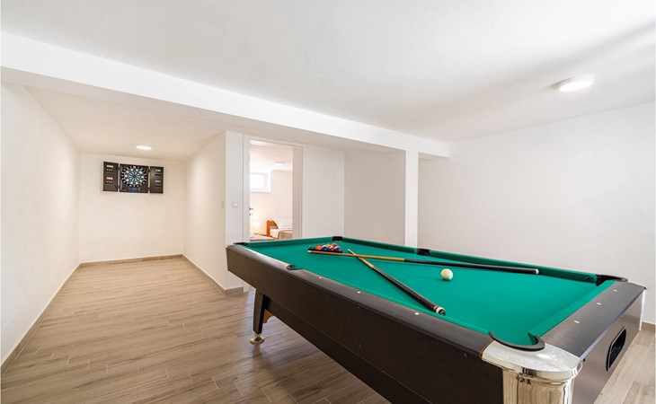 Villa Feniks in het dorpje Polaa is een ideale villa voor een gezinsvakantie. De tuin is volledig omheind en biedt je de privacy die je wenst tijdens je vakantie. Voor deze prachtige villa ligt een zwembad van 32 vierkante meter waar je je kunt verfrissen van de zomerhitte. Als je een fan bent van zonnebaden, ontspan dan in de ligstoelen bij het zwembad en geniet van verfrissende drankjes en interessante lectuur. Bij het zwembad is er een overdekt gedeelte met een buitenkeuken en een houten eettafel met 8 zitplaatsen waar je kunt genieten van Dalmatische specialiteiten van de grill. Wek je innerlijke kind en maak plezier met de jongste gezinsleden op de trampoline. Er is geen tekort aan entertainmentmogelijkheden in de villa: je kunt biljarten of darten in de kelderruimte. Ook het interieur van de villa zal je niet teleurstellen. Op de begane grond van de villa is er een keuken met alles wat je nodig hebt om maaltijden te bereiden, een open ruimte met een gezellige woonkamer en een eetkamer. Op de eerste verdieping van de villa is er een badkamer, een slaapkamer met een tweepersoonsbed, een tweede slaapkamer, die ook een tweepersoonsbed heeft, en een derde slaapkamer met een stapelbed, die zeker favoriet zal zijn bij de jongste gasten. De slaapkamers op de eerste verdieping hebben een televisie en airconditioning. In de kelder van de villa is een vierde slaapkamer met twee eenpersoonsbedden en airconditioning. Een vakantie in Villa Phoenix zal je verkwikken en je als een feniks optillen naar nieuwe overwinningen in het leven. Mis een leuke familievakantie in de Dalmatische sfeer van Polaa niet. Villa Feniks ligt in Polaa, vlakbij de stad Biograd na Moru. Het ligt in het gebied Ravni Kotar, dat bekend staat om zijn inheemse Maraska-kers en agrotoerisme. Bezoek het natuurpark Vrana Lake, waar zich het grootste natuurlijke meer en een van de grootste wetlands in het Middellandse Zeegebied van Kroatië bevindt. Er zijn 95 wettelijk beschermde diersoorten in het parkgebied. Het oude stadscentrum van Vrana werd in de middeleeuwen gebouwd in de onmiddellijke nabijheid van het meer. Het benedictijnse klooster werd later gebruikt door de Tempeliers en de symbolen van de macht van het Kroatische koninkrijk werden lange tijd binnen de muren bewaard. Bezoek de toeristische centra van Biograd na Moru en Pakotane. Pakotane ligt in het centrum van Dalmatië en heeft veel culturele en historische bezienswaardigheden zoals de kerken St. Justin, St. Michael, St. Roka en plaatselijke festivals zoals carnaval en zomerspelen. Biograd na moru is een bekend populair zomervakantieoord met prachtige zandstranden. Geschiedenisliefhebbers kunnen het Biograd Museum bezoeken. Bezoek talrijke eilanden zoals Paman, Galesnjak en NP Kornati. Een niet te missen bestemming is Zadar, de culturele en historische bakermat van Kroatië, beroemd om de kerk van Sint Donata, Sint Stoija en Sint Maria, de kist van Sint Imuna, de hoofdstraat Kalelarga, het zeeorgel en de groet aan de zon.