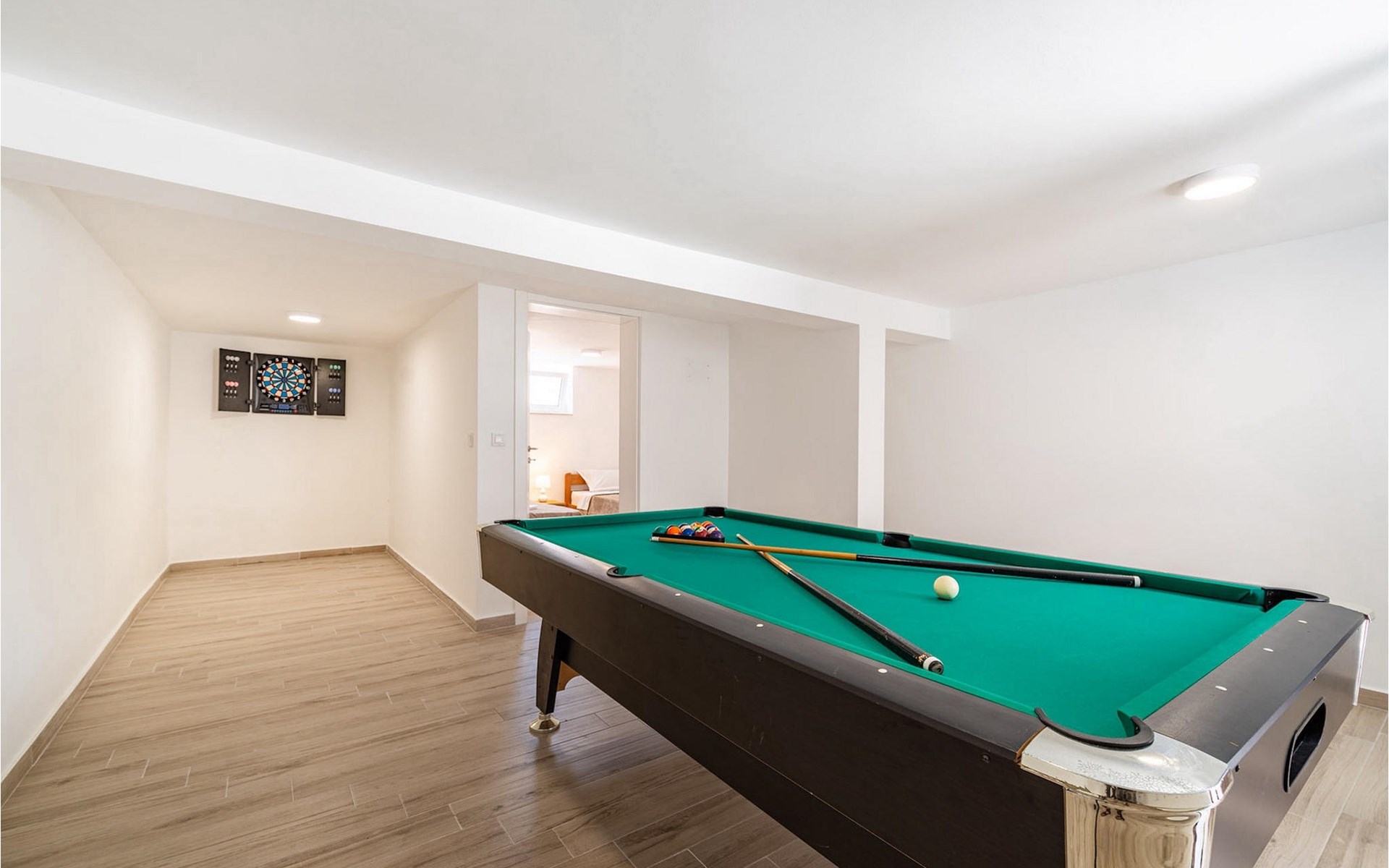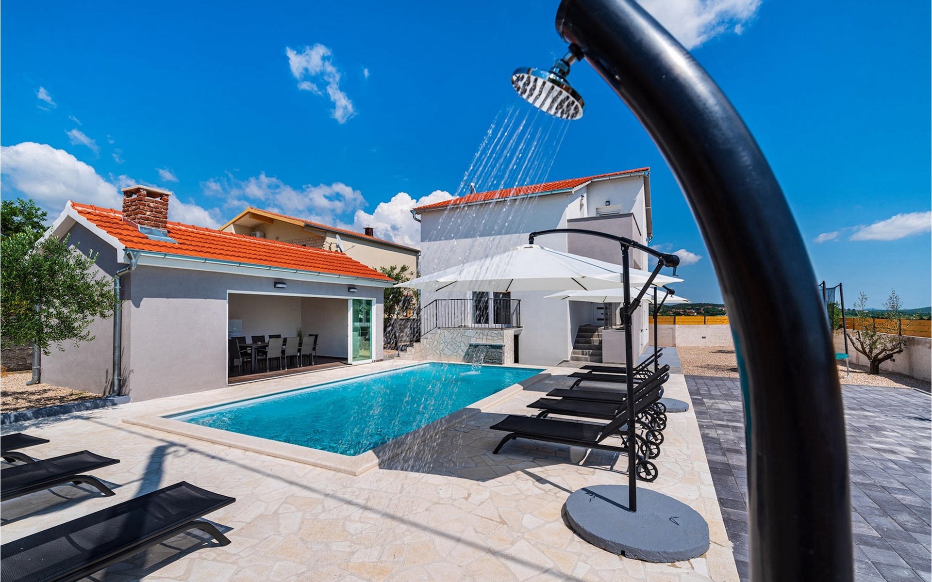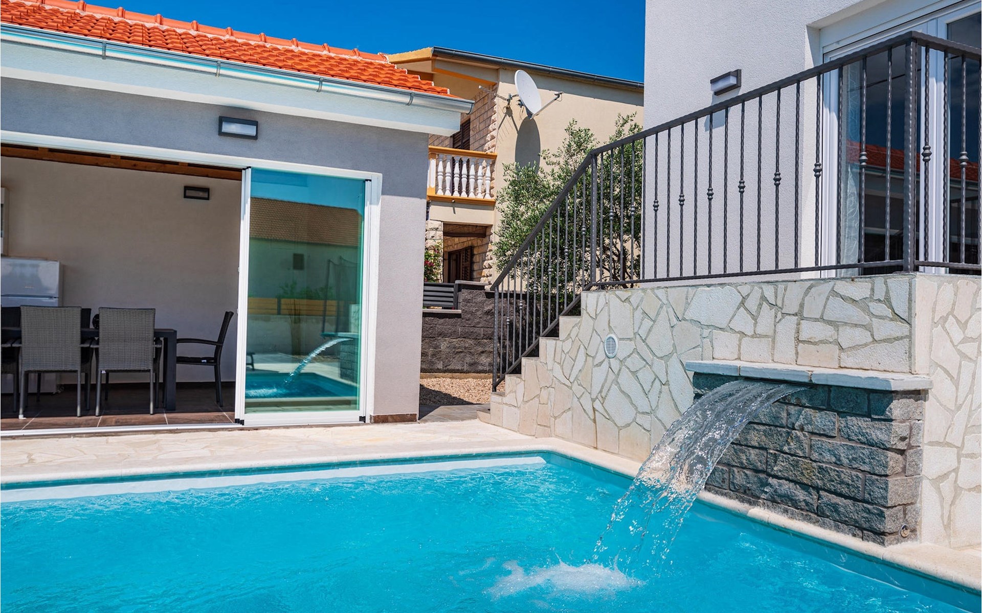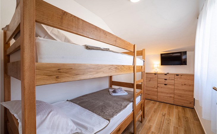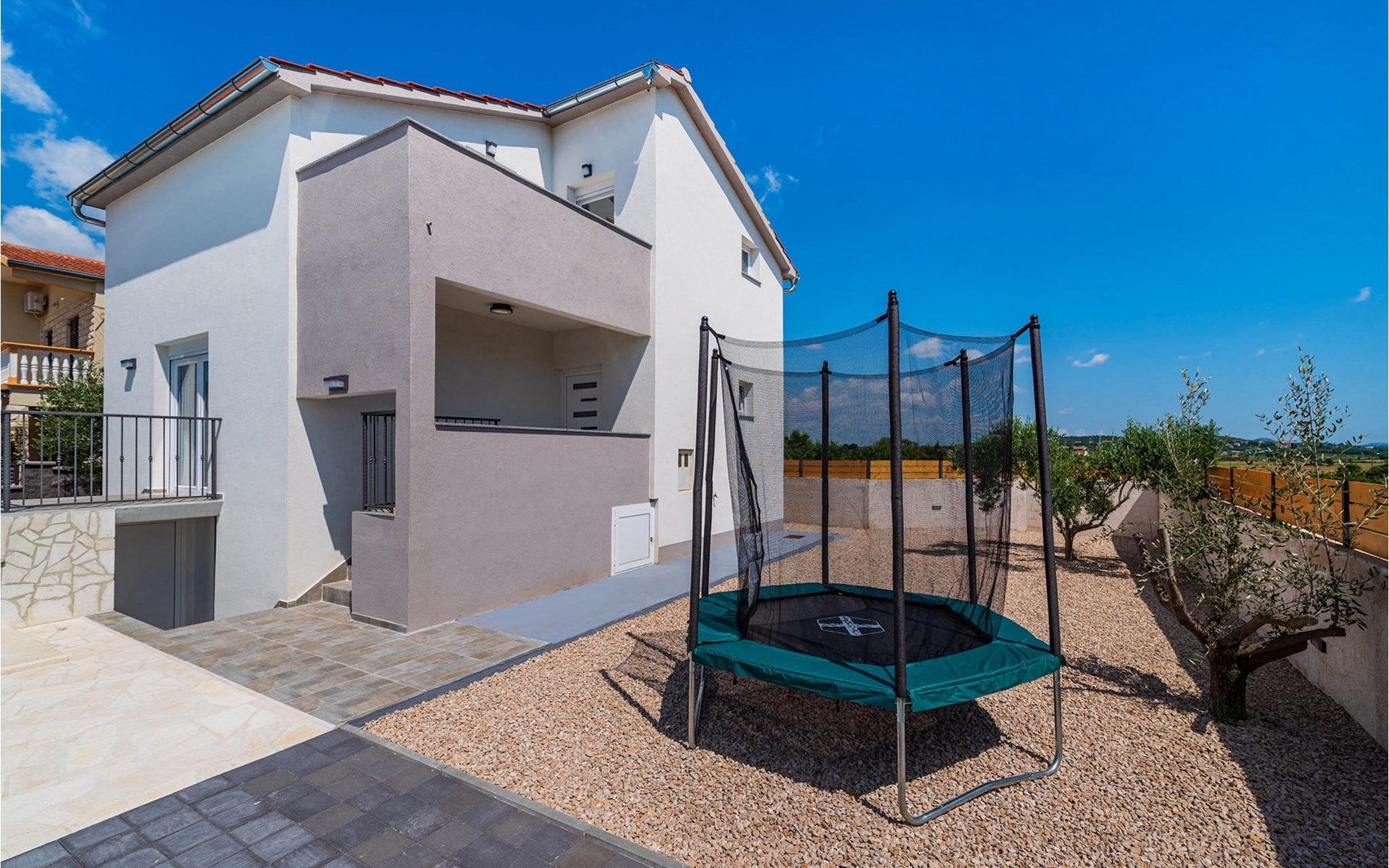 Villa Feniks in het dorpje Polaa is een ideale villa voor een gezinsvakantie. De tuin is volledig omheind en biedt je de privacy die je wenst tijdens je vakantie. Voor deze prachtige villa ligt een zwembad van 32 vierkante meter waar je je kunt verfrissen van de zomerhitte. Als je een fan bent van zonnebaden, ontspan dan in de ligstoelen bij het zwembad en geniet van verfrissende drankjes en interessante lectuur. Bij het zwembad is er een overdekt gedeelte met een buitenkeuken en een houten eettafel met 8 zitplaatsen waar je kunt genieten van Dalmatische specialiteiten van de grill. Wek je innerlijke kind en maak plezier met de jongste gezinsleden op de trampoline. Er is geen tekort aan entertainmentmogelijkheden in de villa: je kunt biljarten of darten in de kelderruimte. Ook het interieur van de villa zal je niet teleurstellen. Op de begane grond van de villa is er een keuken met alles wat je nodig hebt om maaltijden te bereiden, een open ruimte met een gezellige woonkamer en een eetkamer. Op de eerste verdieping van de villa is er een badkamer, een slaapkamer met een tweepersoonsbed, een tweede slaapkamer, die ook een tweepersoonsbed heeft, en een derde slaapkamer met een stapelbed, die zeker favoriet zal zijn bij de jongste gasten. De slaapkamers op de eerste verdieping hebben een televisie en airconditioning. In de kelder van de villa is een vierde slaapkamer met twee eenpersoonsbedden en airconditioning. Een vakantie in Villa Phoenix zal je verkwikken en je als een feniks optillen naar nieuwe overwinningen in het leven. Mis een leuke familievakantie in de Dalmatische sfeer van Polaa niet. Villa Feniks ligt in Polaa, vlakbij de stad Biograd na Moru. Het ligt in het gebied Ravni Kotar, dat bekend staat om zijn inheemse Maraska-kers en agrotoerisme. Bezoek het natuurpark Vrana Lake, waar zich het grootste natuurlijke meer en een van de grootste wetlands in het Middellandse Zeegebied van Kroatië bevindt. Er zijn 95 wettelijk beschermde diersoorten in het parkgebied. Het oude stadscentrum van Vrana werd in de middeleeuwen gebouwd in de onmiddellijke nabijheid van het meer. Het benedictijnse klooster werd later gebruikt door de Tempeliers en de symbolen van de macht van het Kroatische koninkrijk werden lange tijd binnen de muren bewaard. Bezoek de toeristische centra van Biograd na Moru en Pakotane. Pakotane ligt in het centrum van Dalmatië en heeft veel culturele en historische bezienswaardigheden zoals de kerken St. Justin, St. Michael, St. Roka en plaatselijke festivals zoals carnaval en zomerspelen. Biograd na moru is een bekend populair zomervakantieoord met prachtige zandstranden. Geschiedenisliefhebbers kunnen het Biograd Museum bezoeken. Bezoek talrijke eilanden zoals Paman, Galesnjak en NP Kornati. Een niet te missen bestemming is Zadar, de culturele en historische bakermat van Kroatië, beroemd om de kerk van Sint Donata, Sint Stoija en Sint Maria, de kist van Sint Imuna, de hoofdstraat Kalelarga, het zeeorgel en de groet aan de zon.