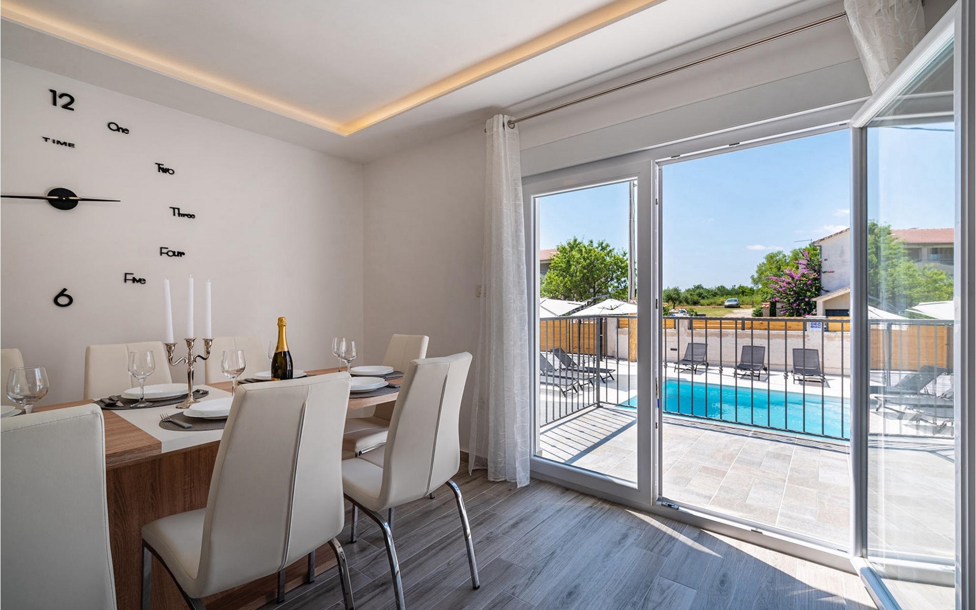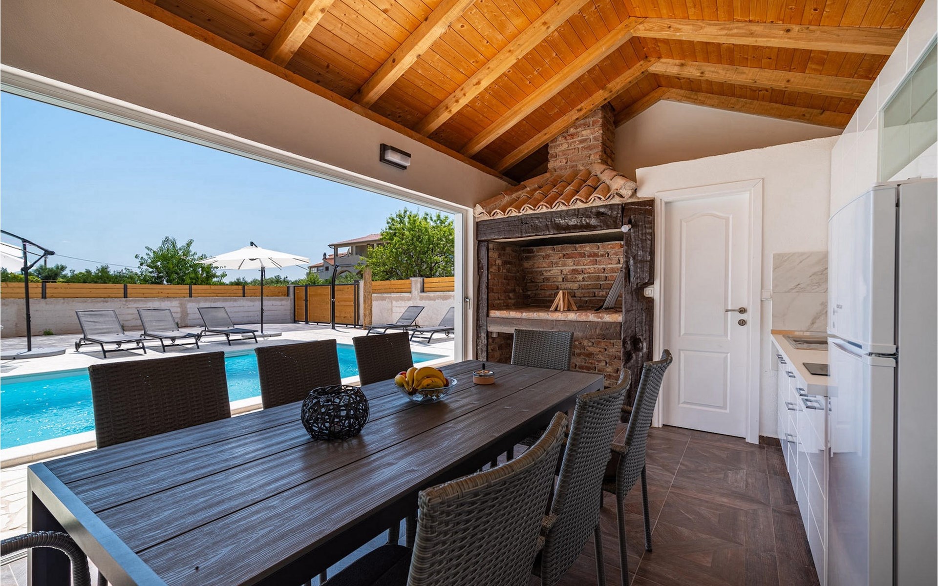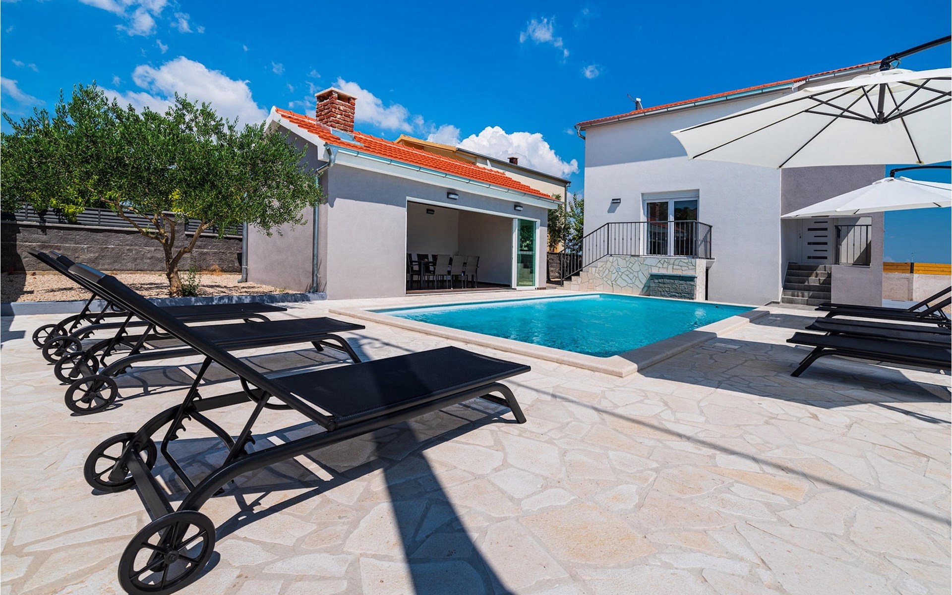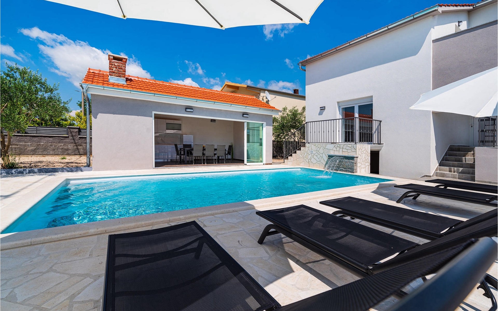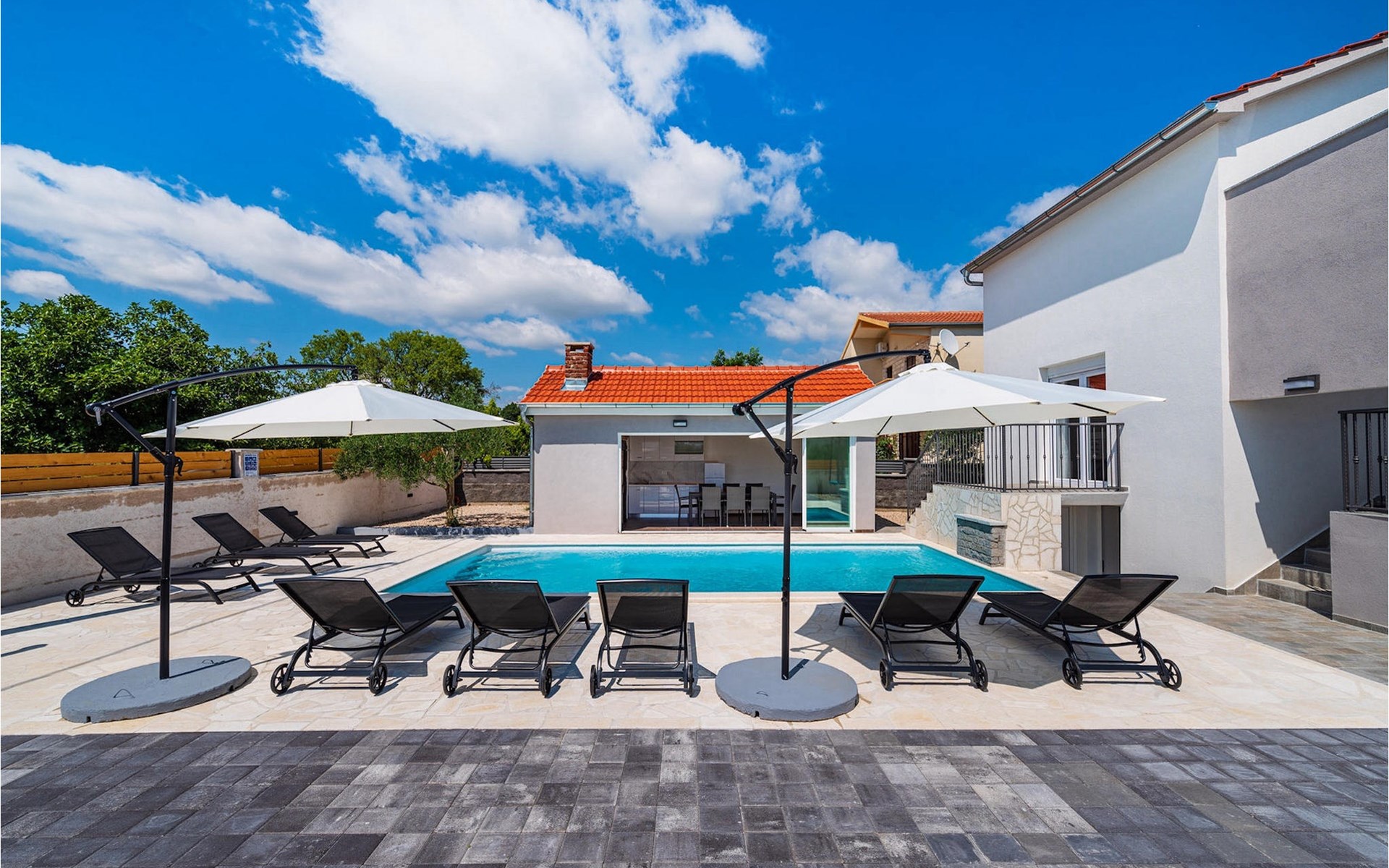 Villa Feniks in het dorpje Polaa is een ideale villa voor een gezinsvakantie. De tuin is volledig omheind en biedt je de privacy die je wenst tijdens je vakantie. Voor deze prachtige villa ligt een zwembad van 32 vierkante meter waar je je kunt verfrissen van de zomerhitte. Als je een fan bent van zonnebaden, ontspan dan in de ligstoelen bij het zwembad en geniet van verfrissende drankjes en interessante lectuur. Bij het zwembad is er een overdekt gedeelte met een buitenkeuken en een houten eettafel met 8 zitplaatsen waar je kunt genieten van Dalmatische specialiteiten van de grill. Wek je innerlijke kind en maak plezier met de jongste gezinsleden op de trampoline. Er is geen tekort aan entertainmentmogelijkheden in de villa: je kunt biljarten of darten in de kelderruimte. Ook het interieur van de villa zal je niet teleurstellen. Op de begane grond van de villa is er een keuken met alles wat je nodig hebt om maaltijden te bereiden, een open ruimte met een gezellige woonkamer en een eetkamer. Op de eerste verdieping van de villa is er een badkamer, een slaapkamer met een tweepersoonsbed, een tweede slaapkamer, die ook een tweepersoonsbed heeft, en een derde slaapkamer met een stapelbed, die zeker favoriet zal zijn bij de jongste gasten. De slaapkamers op de eerste verdieping hebben een televisie en airconditioning. In de kelder van de villa is een vierde slaapkamer met twee eenpersoonsbedden en airconditioning. Een vakantie in Villa Phoenix zal je verkwikken en je als een feniks optillen naar nieuwe overwinningen in het leven. Mis een leuke familievakantie in de Dalmatische sfeer van Polaa niet. Villa Feniks ligt in Polaa, vlakbij de stad Biograd na Moru. Het ligt in het gebied Ravni Kotar, dat bekend staat om zijn inheemse Maraska-kers en agrotoerisme. Bezoek het natuurpark Vrana Lake, waar zich het grootste natuurlijke meer en een van de grootste wetlands in het Middellandse Zeegebied van Kroatië bevindt. Er zijn 95 wettelijk beschermde diersoorten in het parkgebied. Het oude stadscentrum van Vrana werd in de middeleeuwen gebouwd in de onmiddellijke nabijheid van het meer. Het benedictijnse klooster werd later gebruikt door de Tempeliers en de symbolen van de macht van het Kroatische koninkrijk werden lange tijd binnen de muren bewaard. Bezoek de toeristische centra van Biograd na Moru en Pakotane. Pakotane ligt in het centrum van Dalmatië en heeft veel culturele en historische bezienswaardigheden zoals de kerken St. Justin, St. Michael, St. Roka en plaatselijke festivals zoals carnaval en zomerspelen. Biograd na moru is een bekend populair zomervakantieoord met prachtige zandstranden. Geschiedenisliefhebbers kunnen het Biograd Museum bezoeken. Bezoek talrijke eilanden zoals Paman, Galesnjak en NP Kornati. Een niet te missen bestemming is Zadar, de culturele en historische bakermat van Kroatië, beroemd om de kerk van Sint Donata, Sint Stoija en Sint Maria, de kist van Sint Imuna, de hoofdstraat Kalelarga, het zeeorgel en de groet aan de zon.