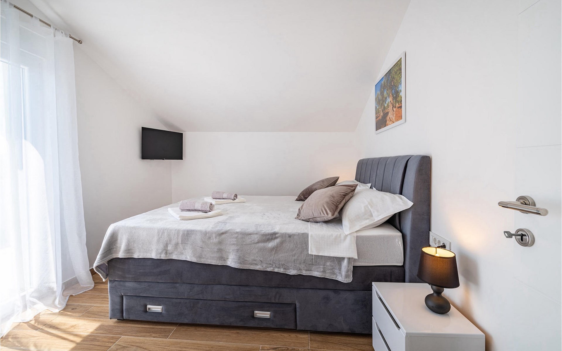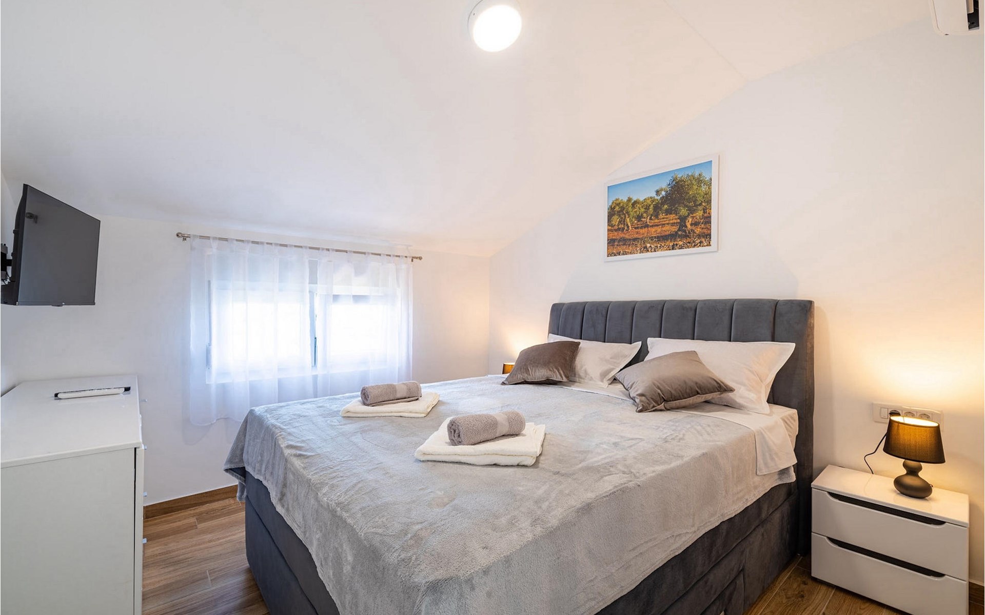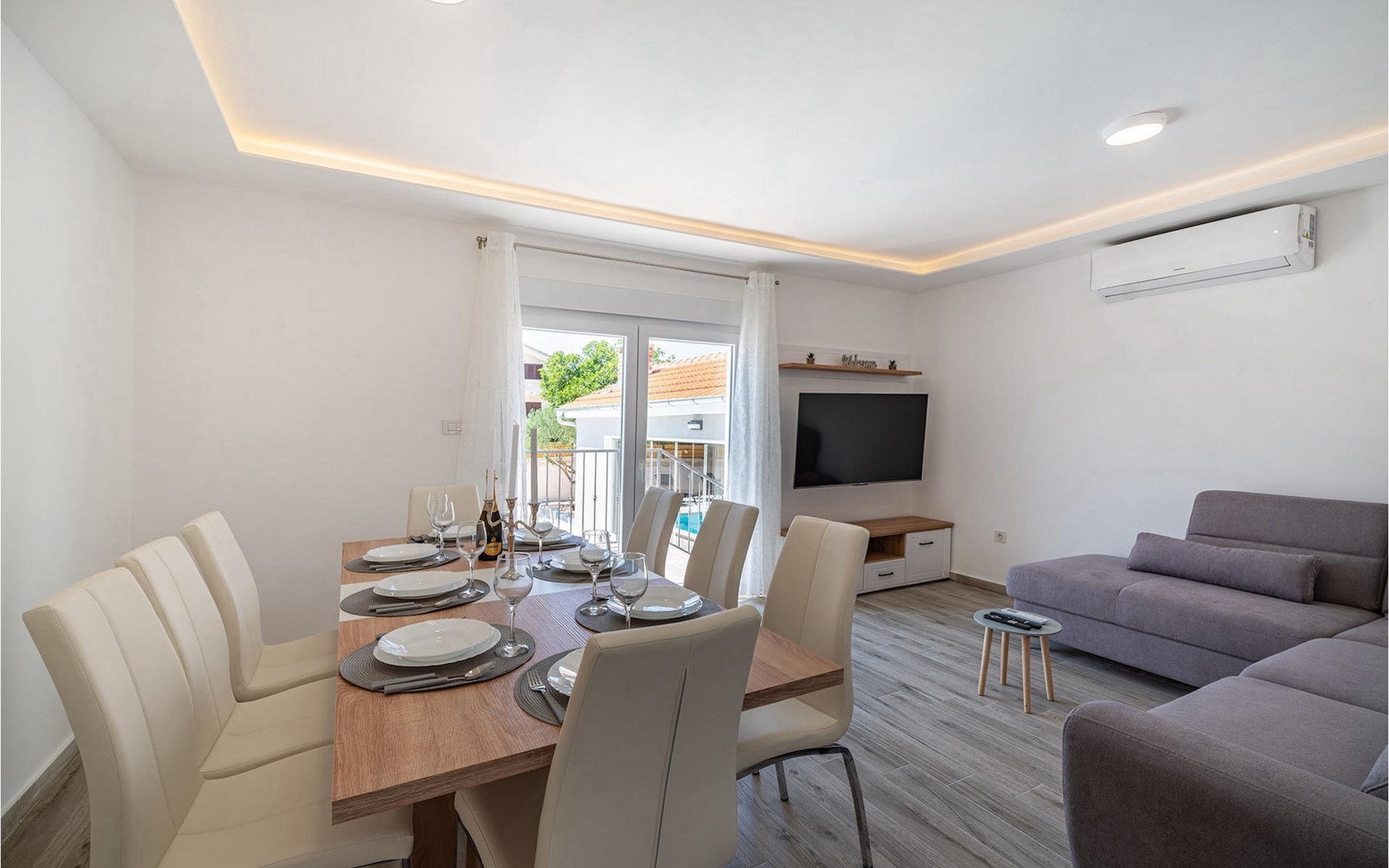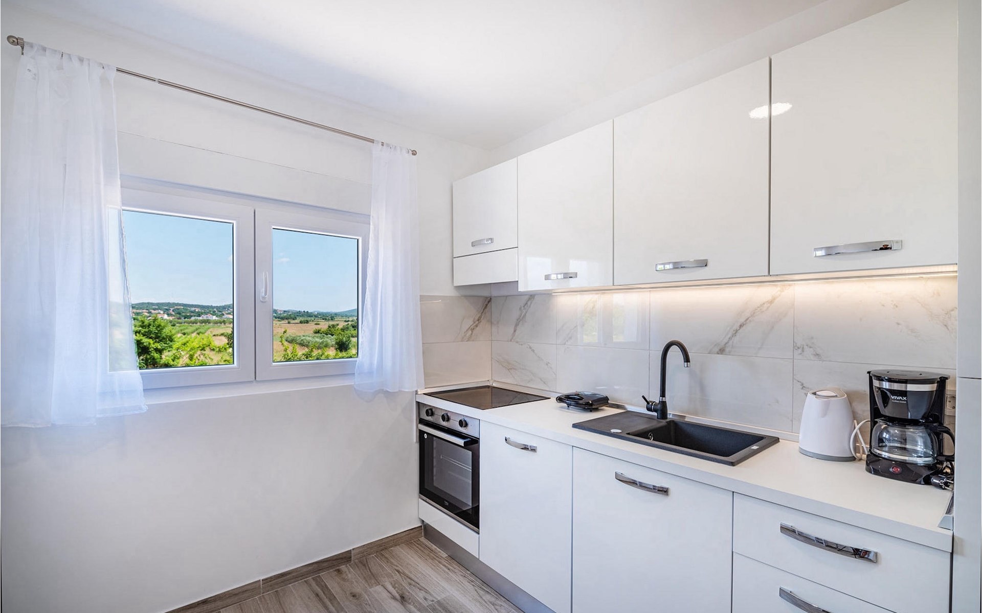 Villa Feniks in het dorpje Polaa is een ideale villa voor een gezinsvakantie. De tuin is volledig omheind en biedt je de privacy die je wenst tijdens je vakantie. Voor deze prachtige villa ligt een zwembad van 32 vierkante meter waar je je kunt verfrissen van de zomerhitte. Als je een fan bent van zonnebaden, ontspan dan in de ligstoelen bij het zwembad en geniet van verfrissende drankjes en interessante lectuur. Bij het zwembad is er een overdekt gedeelte met een buitenkeuken en een houten eettafel met 8 zitplaatsen waar je kunt genieten van Dalmatische specialiteiten van de grill. Wek je innerlijke kind en maak plezier met de jongste gezinsleden op de trampoline. Er is geen tekort aan entertainmentmogelijkheden in de villa: je kunt biljarten of darten in de kelderruimte. Ook het interieur van de villa zal je niet teleurstellen. Op de begane grond van de villa is er een keuken met alles wat je nodig hebt om maaltijden te bereiden, een open ruimte met een gezellige woonkamer en een eetkamer. Op de eerste verdieping van de villa is er een badkamer, een slaapkamer met een tweepersoonsbed, een tweede slaapkamer, die ook een tweepersoonsbed heeft, en een derde slaapkamer met een stapelbed, die zeker favoriet zal zijn bij de jongste gasten. De slaapkamers op de eerste verdieping hebben een televisie en airconditioning. In de kelder van de villa is een vierde slaapkamer met twee eenpersoonsbedden en airconditioning. Een vakantie in Villa Phoenix zal je verkwikken en je als een feniks optillen naar nieuwe overwinningen in het leven. Mis een leuke familievakantie in de Dalmatische sfeer van Polaa niet. Villa Feniks ligt in Polaa, vlakbij de stad Biograd na Moru. Het ligt in het gebied Ravni Kotar, dat bekend staat om zijn inheemse Maraska-kers en agrotoerisme. Bezoek het natuurpark Vrana Lake, waar zich het grootste natuurlijke meer en een van de grootste wetlands in het Middellandse Zeegebied van Kroatië bevindt. Er zijn 95 wettelijk beschermde diersoorten in het parkgebied. Het oude stadscentrum van Vrana werd in de middeleeuwen gebouwd in de onmiddellijke nabijheid van het meer. Het benedictijnse klooster werd later gebruikt door de Tempeliers en de symbolen van de macht van het Kroatische koninkrijk werden lange tijd binnen de muren bewaard. Bezoek de toeristische centra van Biograd na Moru en Pakotane. Pakotane ligt in het centrum van Dalmatië en heeft veel culturele en historische bezienswaardigheden zoals de kerken St. Justin, St. Michael, St. Roka en plaatselijke festivals zoals carnaval en zomerspelen. Biograd na moru is een bekend populair zomervakantieoord met prachtige zandstranden. Geschiedenisliefhebbers kunnen het Biograd Museum bezoeken. Bezoek talrijke eilanden zoals Paman, Galesnjak en NP Kornati. Een niet te missen bestemming is Zadar, de culturele en historische bakermat van Kroatië, beroemd om de kerk van Sint Donata, Sint Stoija en Sint Maria, de kist van Sint Imuna, de hoofdstraat Kalelarga, het zeeorgel en de groet aan de zon.