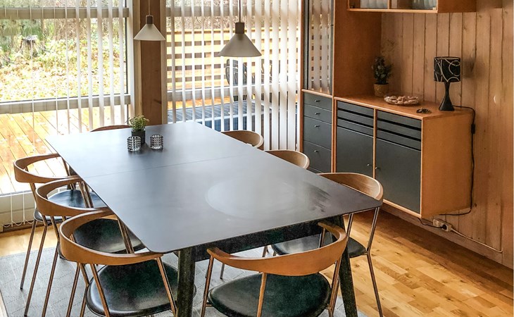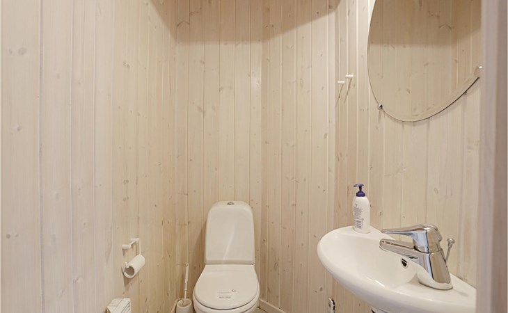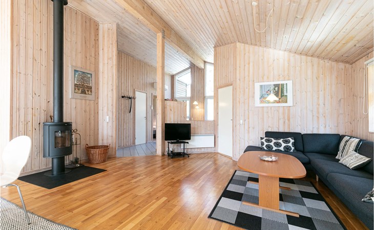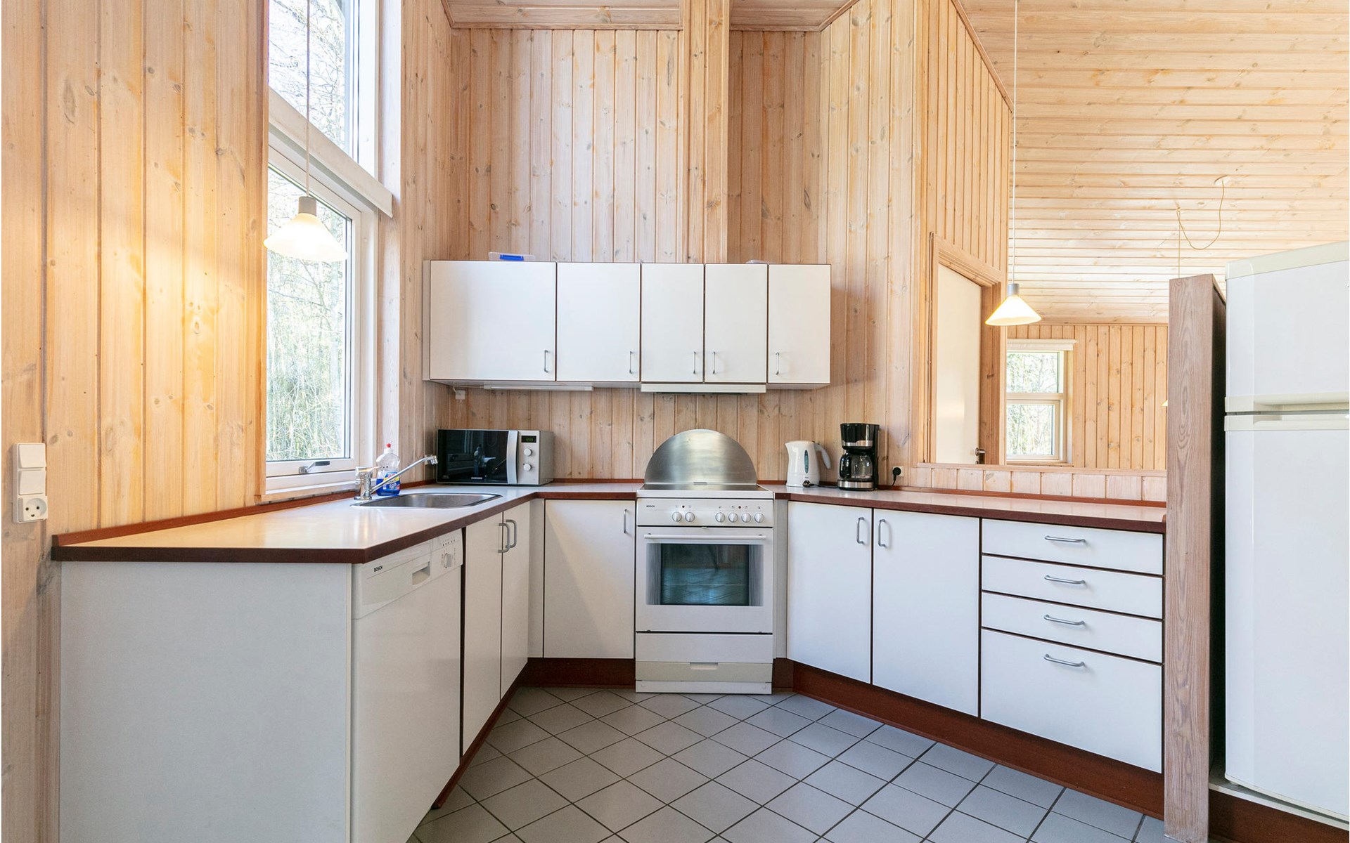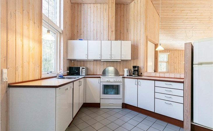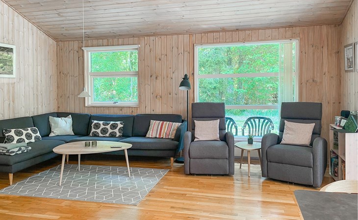 U woont dicht bij het prachtige meer Rubinsø. Het mooie interieur omvat een open keuken waar koken gemakkelijk is. De begane grond biedt veel ruimte en er is ook een aangenaam verwarmende open haard voor koelere dagen. De woonkamer is zeer ruim en biedt uitzicht op de tuin. Er is een in hoogte verstelbare kinderstoel. Het mooie terras ligt direct voor de woonkamer.