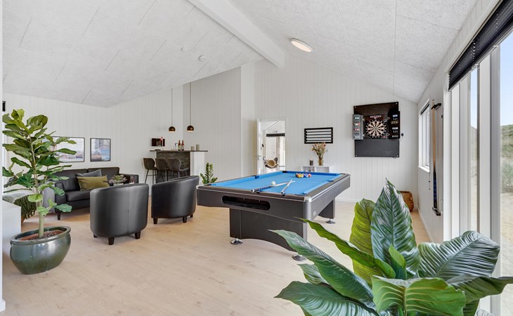 Gelegen in de eerste duinenrij belooft dit vakantiehuis een vakantie van een klasse apart. Lichte kamers en veel ruimte om te ontspannen en samen te eten zorgen ervoor dat je hier kunt genieten van een ontspannen vakantie met meerdere gezinnen of veel vrienden. Breng plezierige uren door met zwemmen in het binnenzwembad, biljarten, tafeltennissen of darten. Aan het eind van de dag nodigt de sauna je uit om te ontspannen in de gezellige warmte.