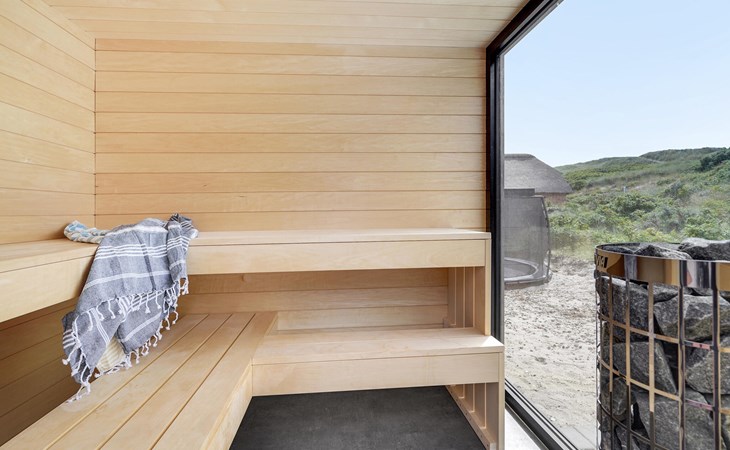 Breng een heerlijke vakantie door in dit comfortabele vakantiehuis met binnenzwembad, wellnessruimte buiten en uitzicht op de duinen.