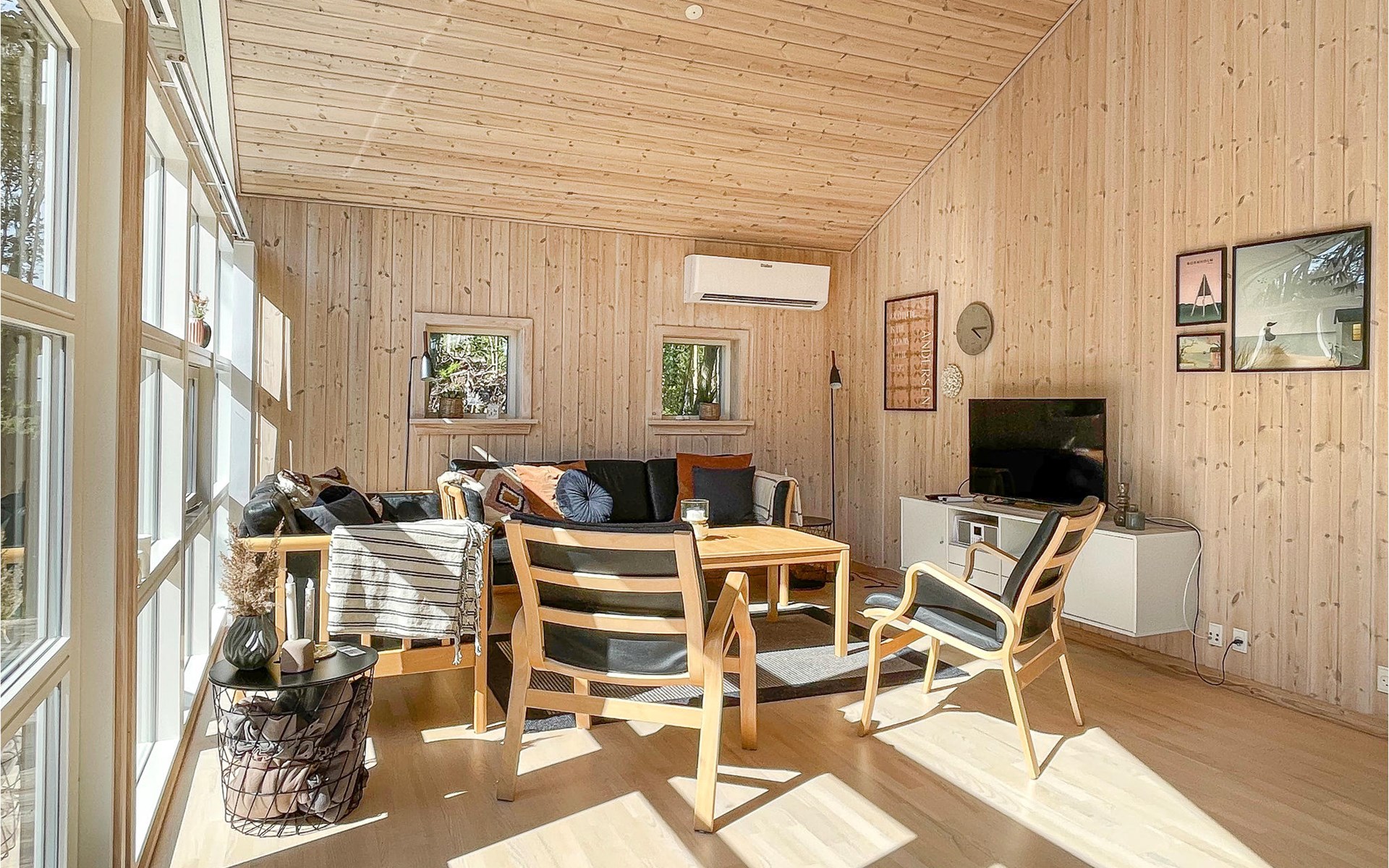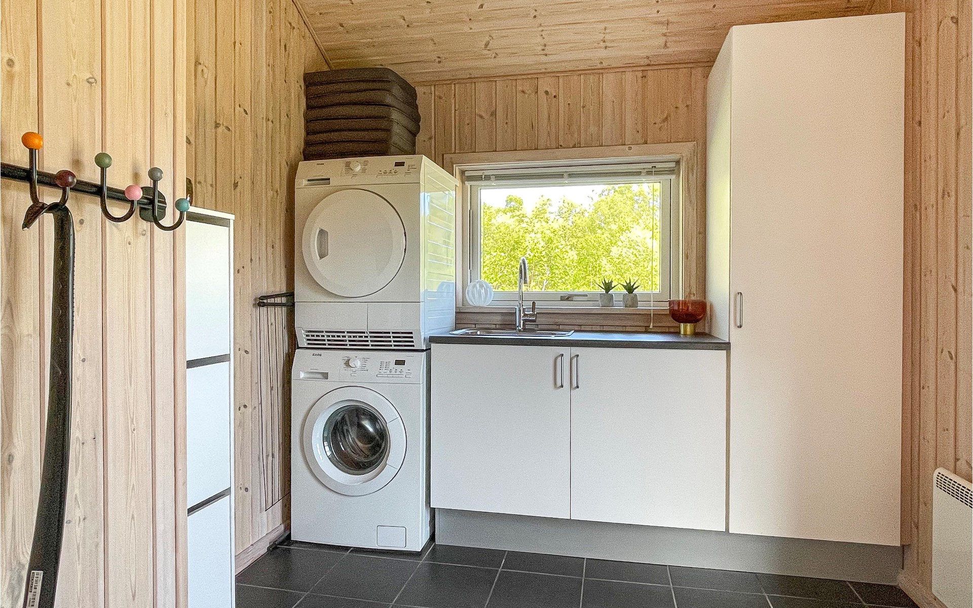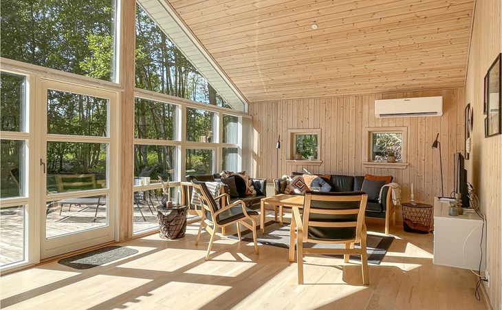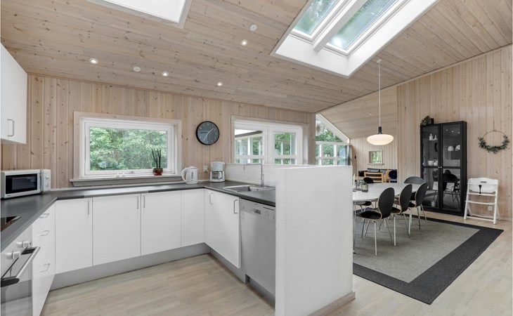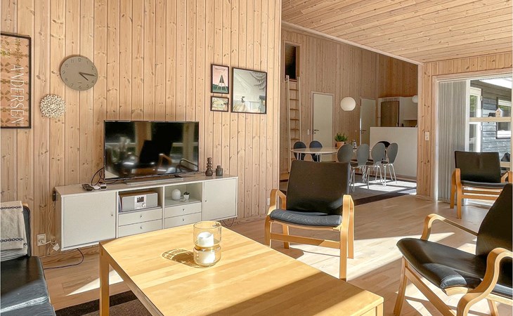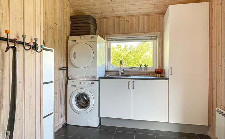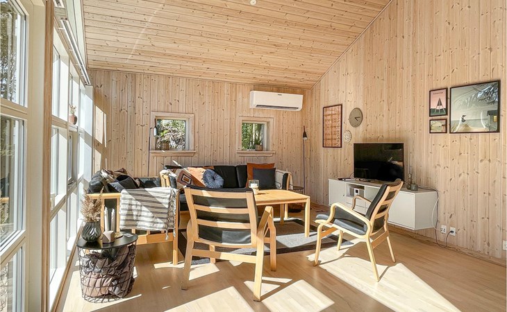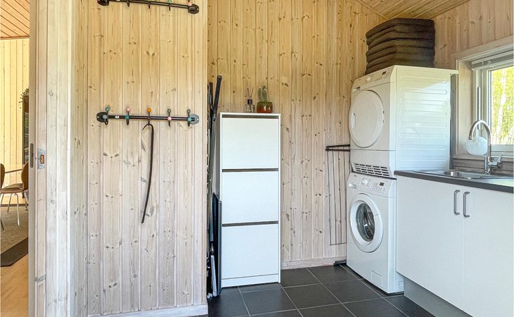 Welkom in dit luxe vakantiehuis, dat een gezellige vakantiesfeer uitademt met grote ramen en houten vloeren, muren en plafonds. In de grote, lichte woonkamer kun je het jezelf gemakkelijk maken en ontspannen terwijl je je vermaakt, tv kijkt, naar de radio of muziek luistert. Direct aangrenzend zijn de eethoek en de open, goed uitgeruste keuken. De grote badkamer van het huis, met vloerverwarming, is uitgerust met een bubbelbad, dat je uitnodigt om volledig te ontspannen na een lange, actieve vakantiedag. Het huis heeft ook drie slaapkamers en een kleine loft met een matras van 120 cm en een Playstation - ideaal voor kinderen. In de bijkeuken vind je een wasmachine en een droger. Er is een carport beschikbaar om te parkeren, die ook oplaadmogelijkheden heeft voor elektrische auto's.