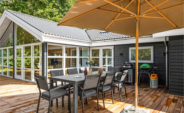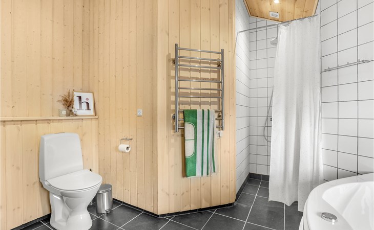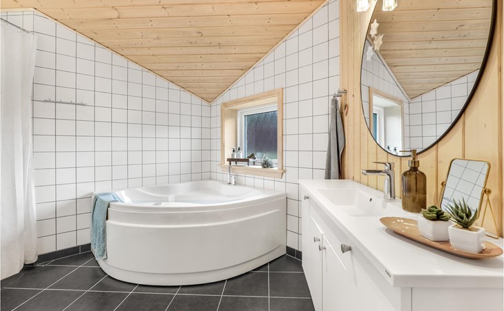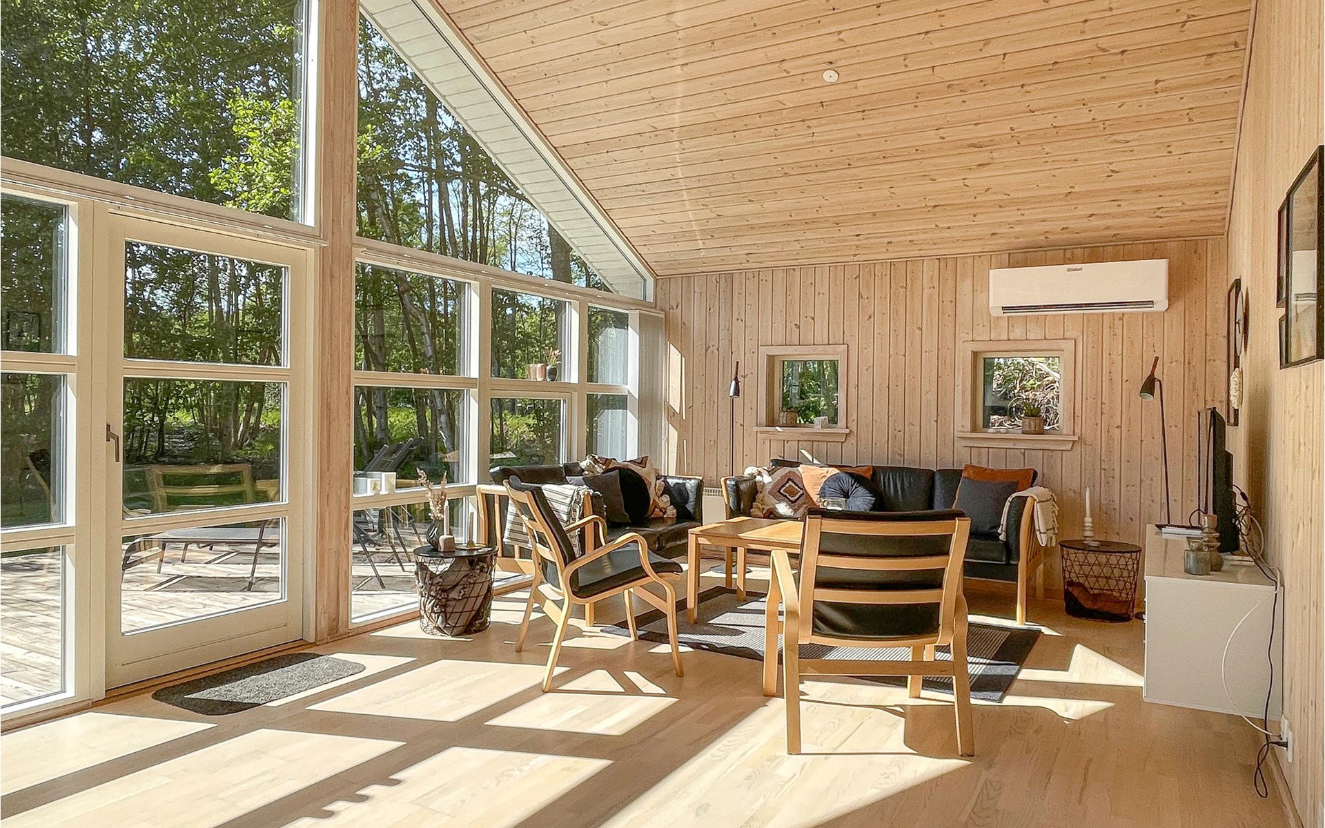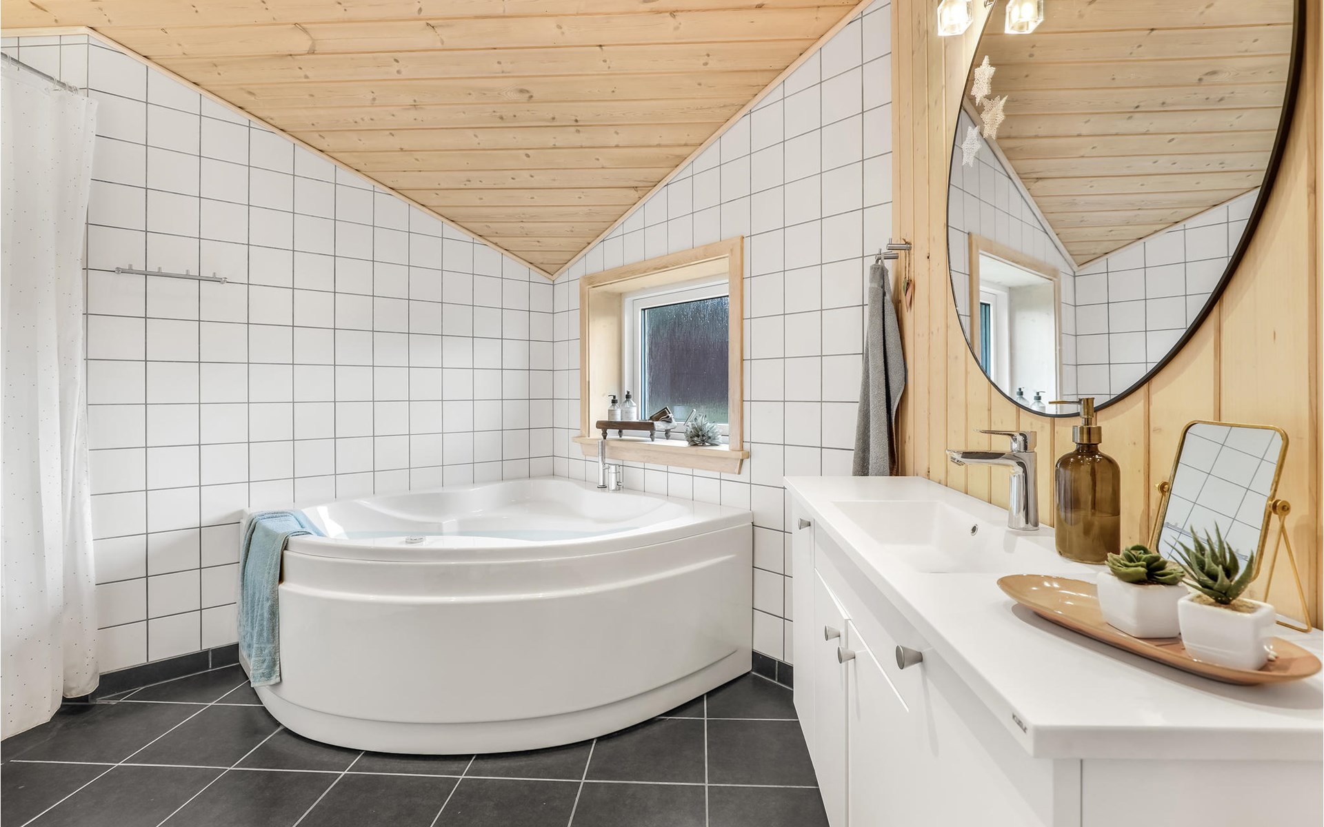 Welkom in dit luxe vakantiehuis, dat een gezellige vakantiesfeer uitademt met grote ramen en houten vloeren, muren en plafonds. In de grote, lichte woonkamer kun je het jezelf gemakkelijk maken en ontspannen terwijl je je vermaakt, tv kijkt, naar de radio of muziek luistert. Direct aangrenzend zijn de eethoek en de open, goed uitgeruste keuken. De grote badkamer van het huis, met vloerverwarming, is uitgerust met een bubbelbad, dat je uitnodigt om volledig te ontspannen na een lange, actieve vakantiedag. Het huis heeft ook drie slaapkamers en een kleine loft met een matras van 120 cm en een Playstation - ideaal voor kinderen. In de bijkeuken vind je een wasmachine en een droger. Er is een carport beschikbaar om te parkeren, die ook oplaadmogelijkheden heeft voor elektrische auto's.