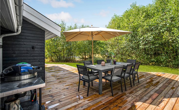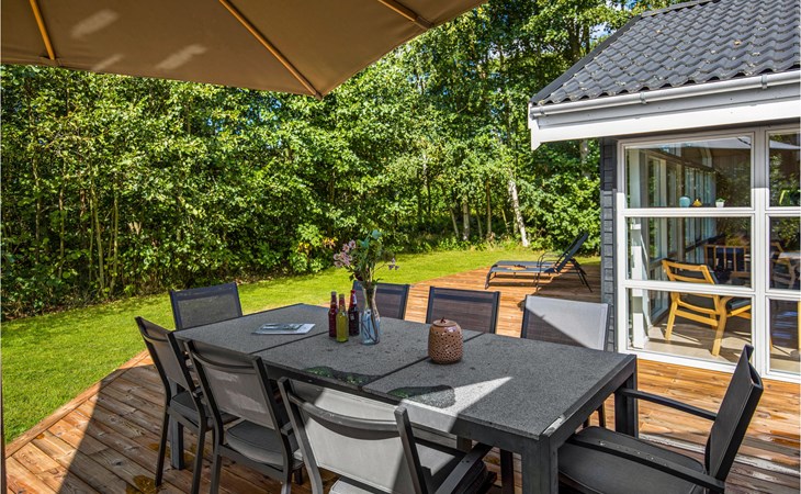 Je kunt een groot deel van je vakantie doorbrengen op het grote houten terras met divers loungemeubilair en zowel een houtskool- als een gasbarbecue, zodat je ook maaltijden buiten kunt toveren. Het huis staat op een ruim perceel met veel speel- en ontwikkelingsruimte.