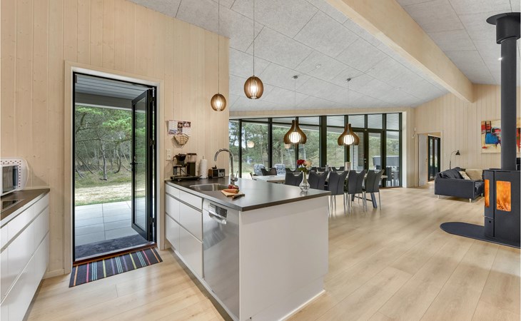 U bent slechts 1,5 km verwijderd van het dichtstbijzijnde strand. Hier kunt u zwemmen, watersporten beoefenen of gewoon heerlijk wandelen. Blåvand zelf is een badplaats met een perfecte infrastructuur en een breed scala aan vrijetijdsactiviteiten. De oude handelsstad Esbjerg is dichtbij, en in Ho, op een paar kilometer afstand, zijn er verschillende put & take meren voor sportvissers, evenals een 18-holes golfbaan. Niet ver van het vakantiehuis komt u de grootste populatie kroonherten van Denemarken tegen, ze leven in een enorm beschermd gebied. Hier staat ook de beroemde vuurtoren Blåvand Fyr. Deze biedt uitzicht op Horns Rev, de kust en het heidelandschap van Kallesmærsk Hede. Een gebied gemaakt om te wandelen.
