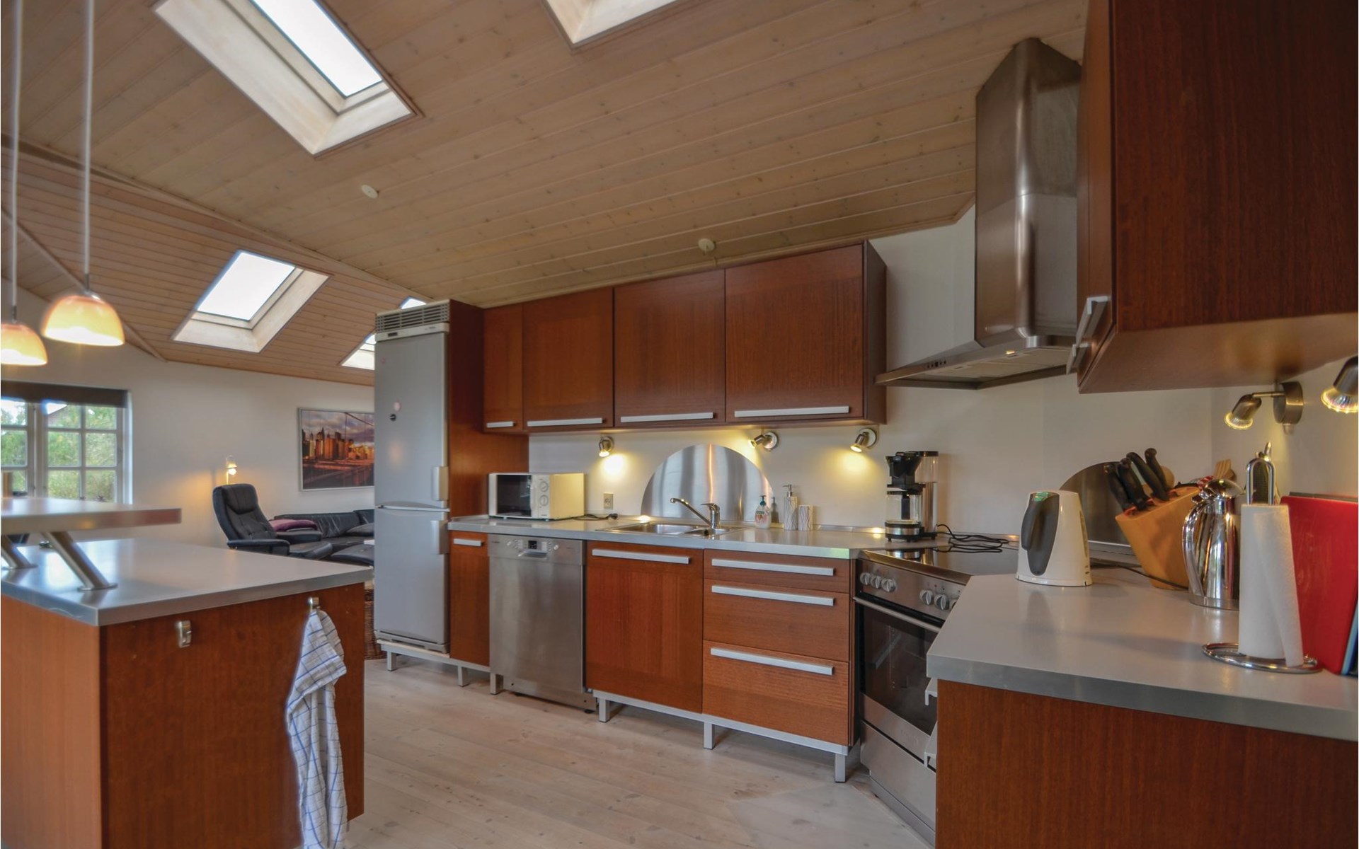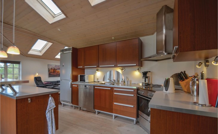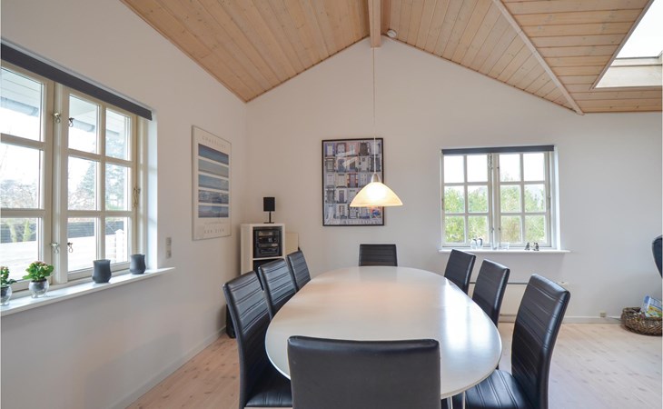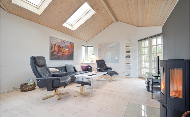 Licht en mooi en met veel ruimte wacht het huis op u met een gezellig interieur. De woonkamer staat in open verbinding met de keuken. U beschikt over twee slaapkamers en nog twee slaapplaatsen in het bijgebouw. Het bijgebouw wordt elektrisch verwarmd en is ideaal voor twee grote kinderen. Op het terrein heeft u alle ruimte om een balletje te slaan. Het kindvriendelijke en populaire strand van Vibæk ligt op korte loopafstand, gelegen aan de rand van Ebeltoft.