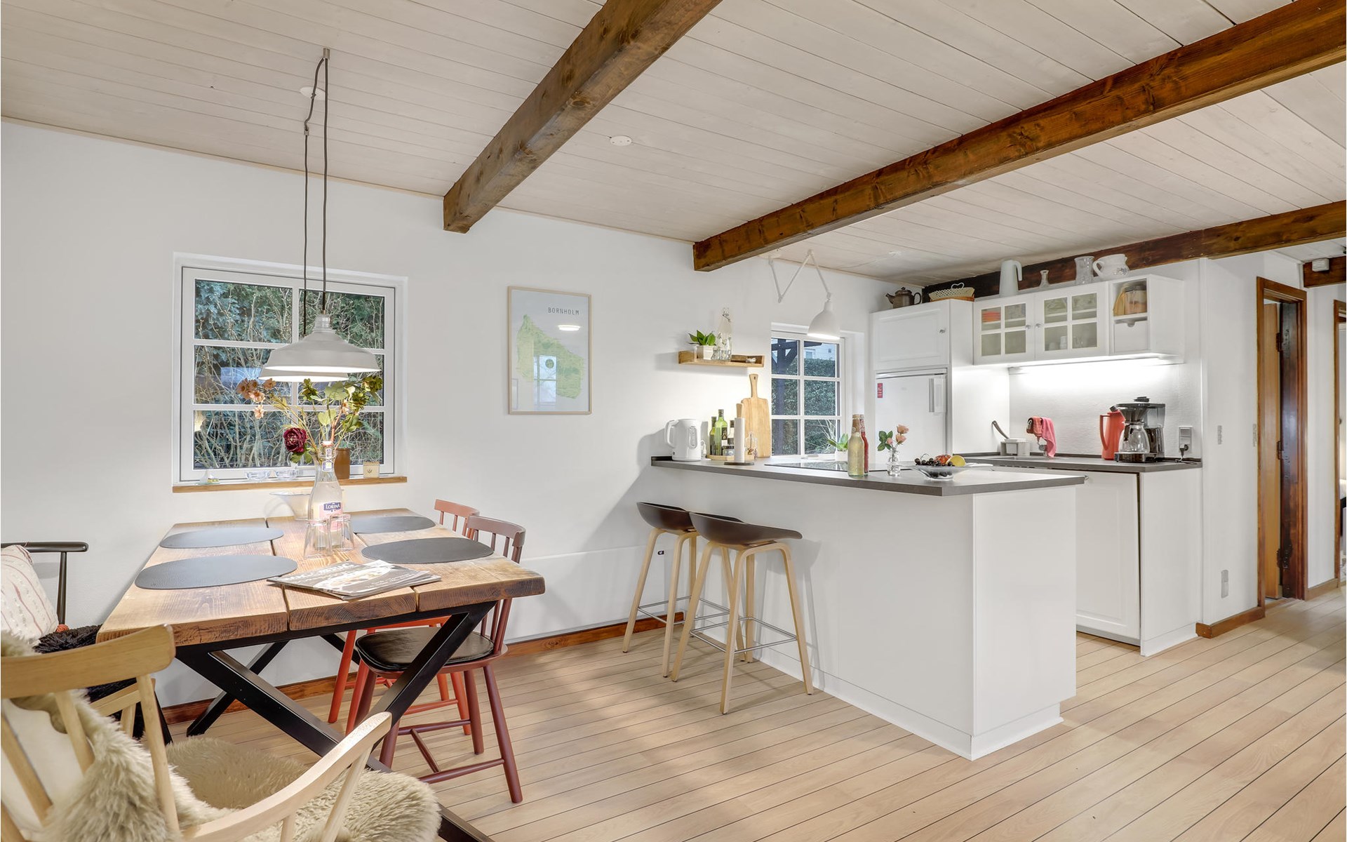 Geniet van een ontspannen vakantie in dit mooie vakantiehuis met uitzicht op zee in Snogebäk. Het is bijna een droom als je geniet van het uitzicht vanaf het huis en het terras. Het mooie en compacte huis biedt alles wat je nodig hebt om te ontspannen. Na actieve dagen op Bornholm kun je ontspannen in de gezellige woonkamer, spelletjes spelen, samen koken en gewoon je voeten omhoog leggen. Je kunt van je maaltijden genieten op het terras op het oosten met uitzicht op het strand en de zee. Op zonnige dagen kun je koken in de buitenkeuken en smakelijke lokale producten op de barbecue gooien. Als de hitte je te veel wordt, kun je afkoelen onder de buitendouche.
