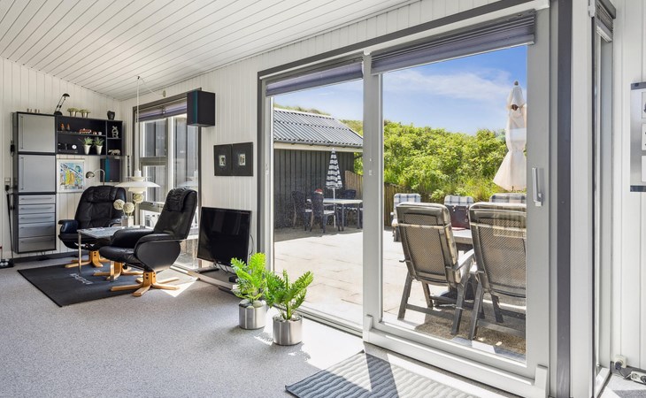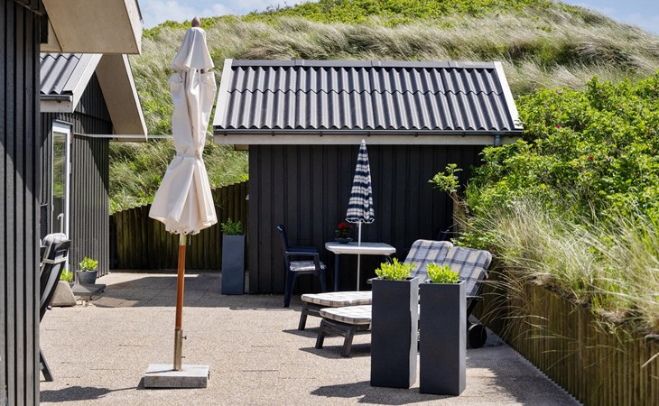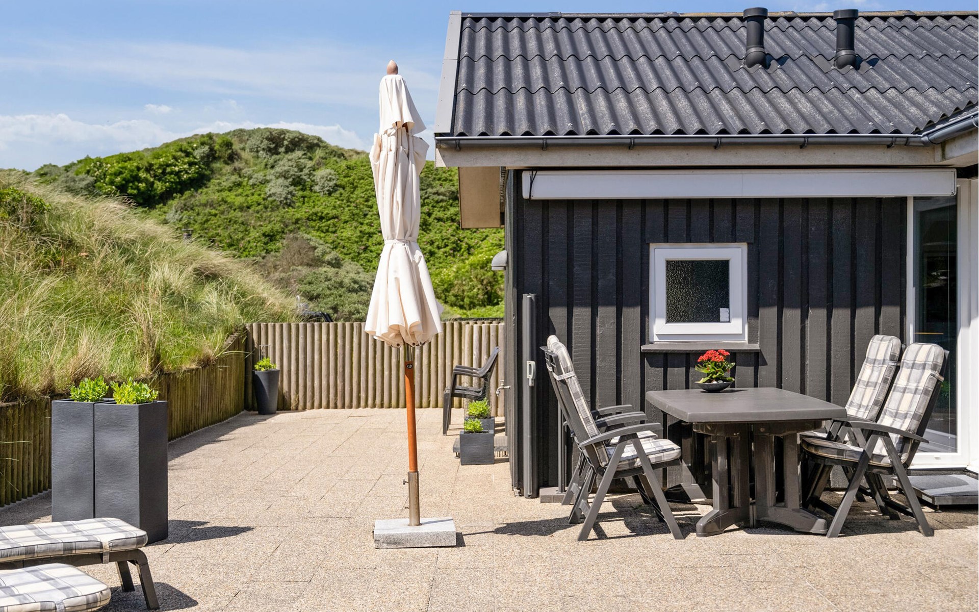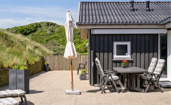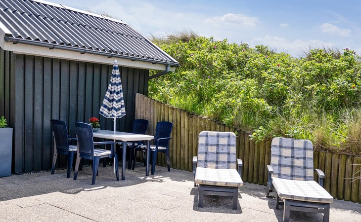 Het huis is ongerept en past harmonieus in de omgeving. Stap uit op het grote terras, dat beschut ligt tegen de wind tussen de duinen. Ontbijt in de zon, ontspan op de ligstoelen of geniet 's avonds van de geur van de barbecue in de frisse zeelucht. Na een dag op het strand zorgen de sauna en whirlpool voor rustgevende ontspanning.