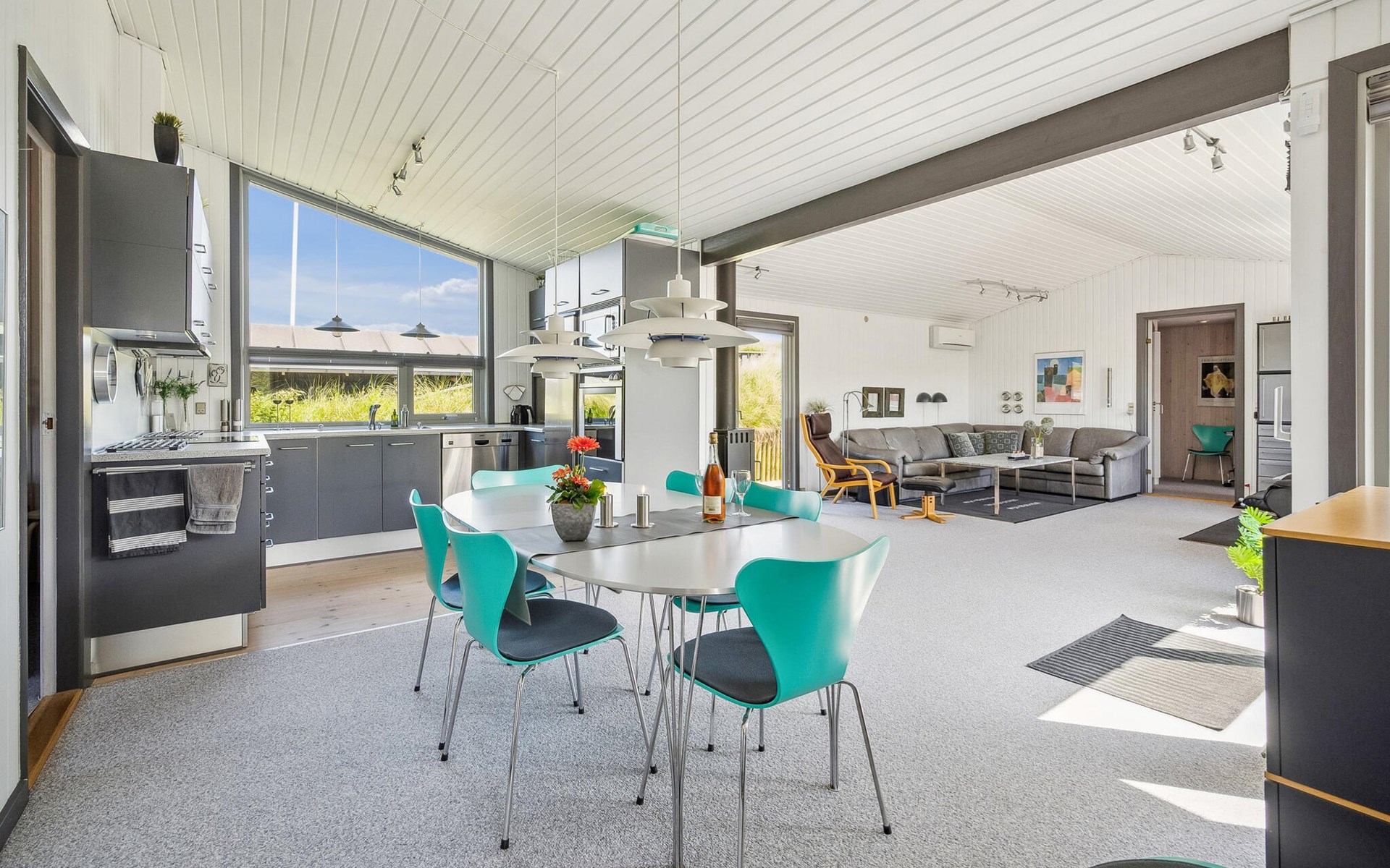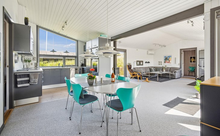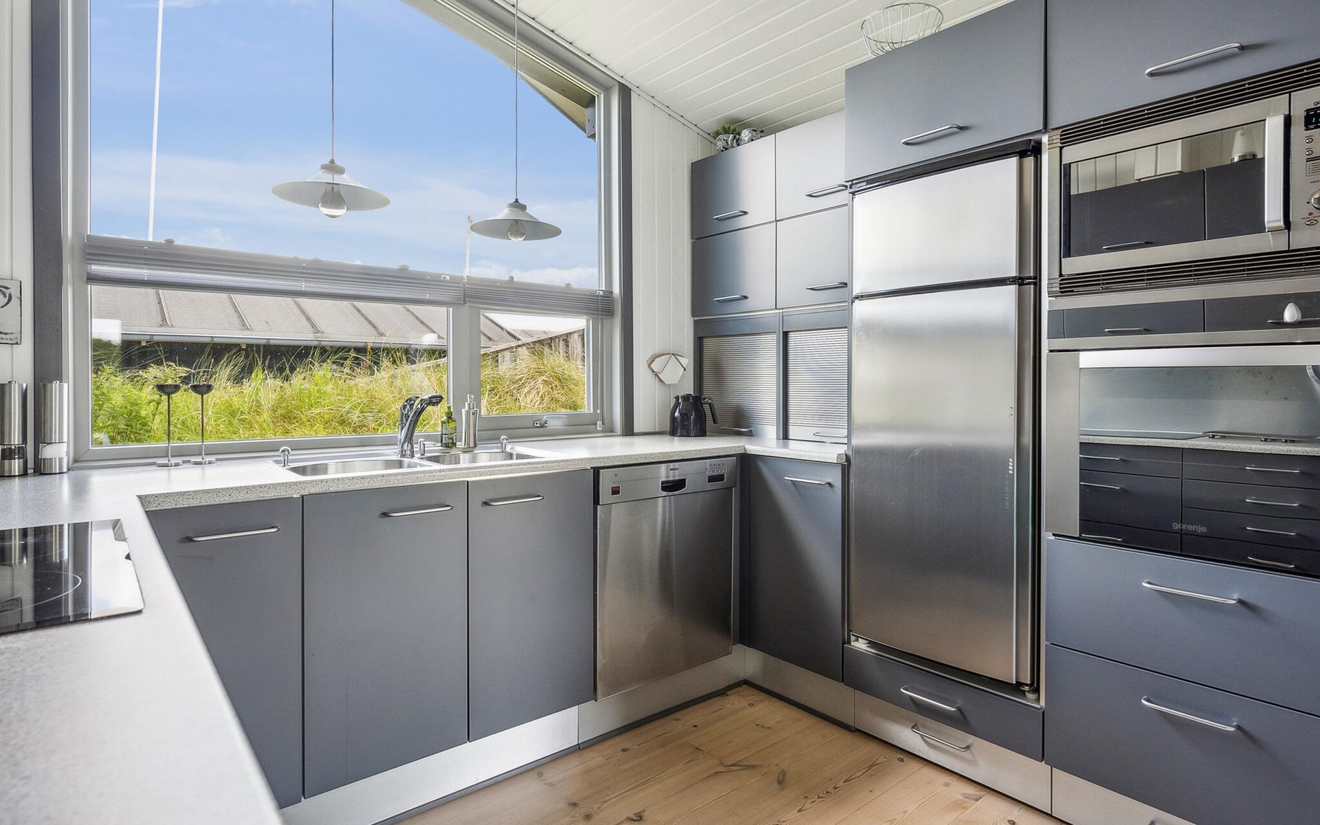 Binnen in je vakantiehuis vind je een lichte, open woonkamer met grote ramen die veel natuurlijk licht binnenlaten en uitzicht bieden op de duinen. Maak het jezelf gemakkelijk op de bank, lees een boek of geniet van de gloed van de open haard. De moderne keuken maakt koken met het hele gezin een waar genoegen. Familie en vrienden kunnen aan de eettafel zitten om de dag af te sluiten met lekker eten en een goed gesprek.