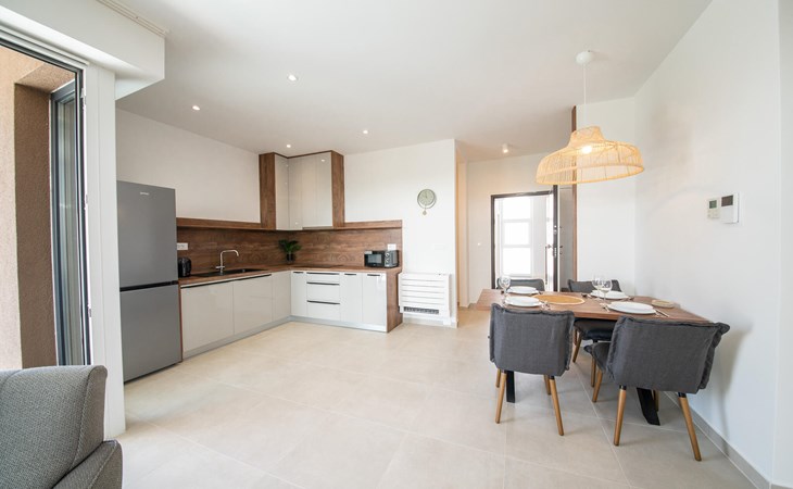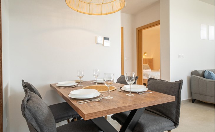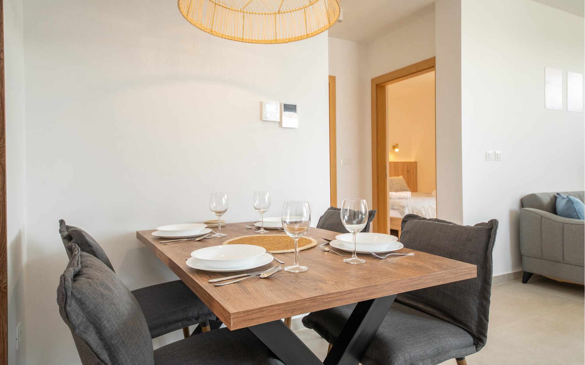 Laat je inspireren door de lichte leefruimtes in je vakantiewoning. Maak het jezelf gemakkelijk in de gezellige zithoek, gebruik de eethoek voor gezamenlijke maaltijden en bereid je gerechten in de volledig uitgeruste keuken. Geniet van een interieur dat indruk maakt met stijlvolle details en een uitnodigende sfeer creëert.