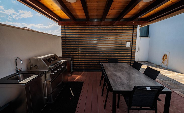 Ga naar buiten en ontspan bij het zwembad met ruim zonneterras. Kies tussen zonnebaden of een plekje in de schaduw en maak gebruik van de overdekte barbecueplaats met eethoek voor gezellige avonden in de buitenlucht. Ontspan in de sauna en trakteer jezelf op rustgevende momenten. Blijf fit in de gemeenschappelijke fitnessruimte, die is uitgerust met een multifunctioneel apparaat, een hometrainer en gewichten.