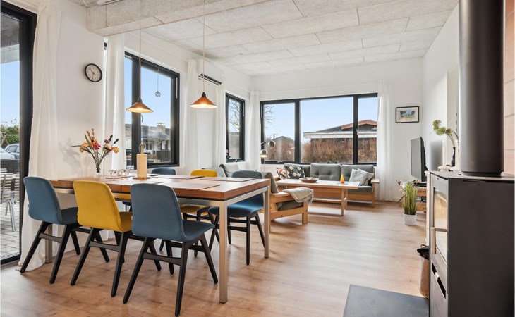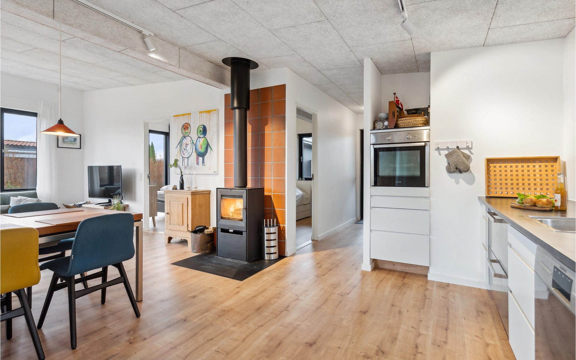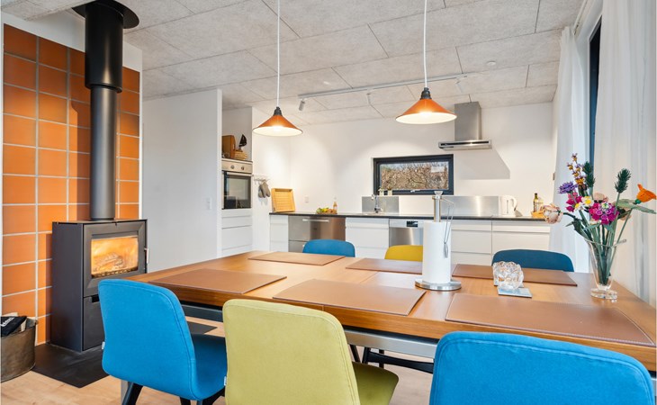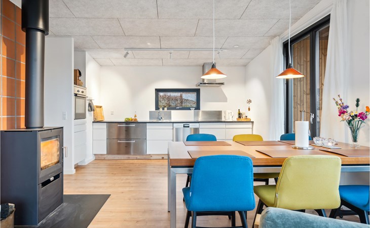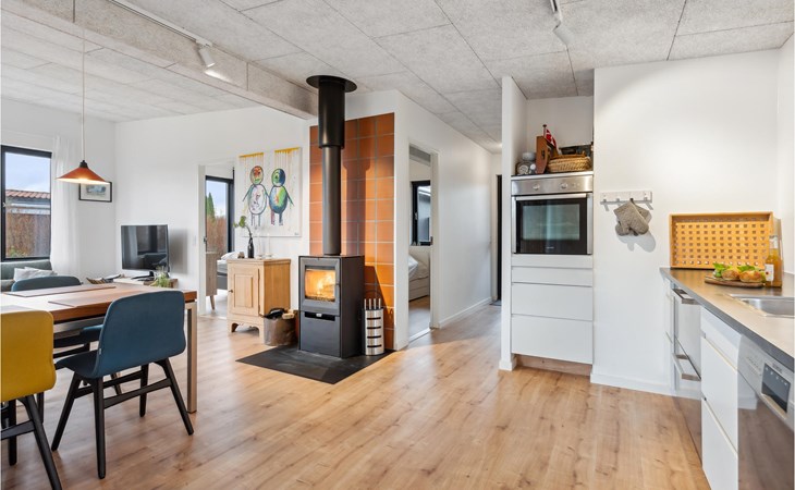Dit mooie vakantiehuis aan het Vejle Fjord is smaakvol ingericht en met liefde gedecoreerd. Zodra u binnenkomt, zult u de lichte woonsfeer en de smaakvolle inrichting opmerken. Maak het jezelf hier gemakkelijk en geniet van de sfeer van de uitnodigende woonkamer, waar de houtkachel het warme hart van de open kamer is op koelere dagen.