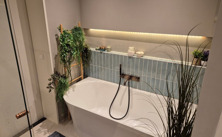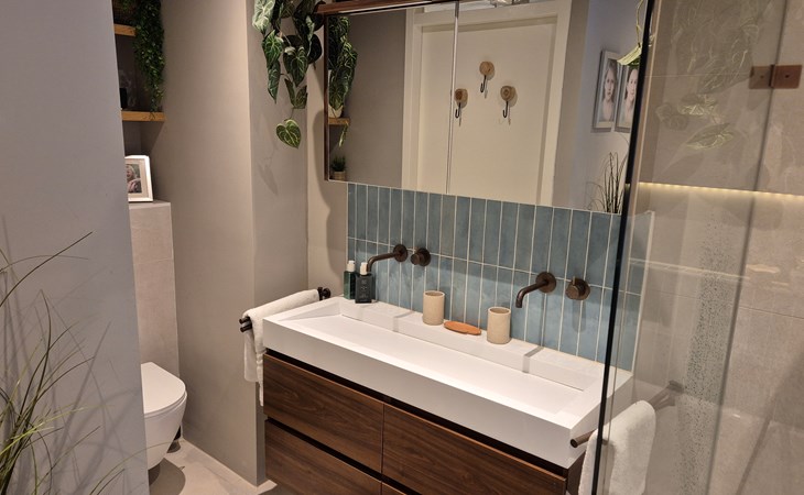 Er is een huiskamer met open keuken. In de huiskamer staat een lekker bank en een smart TV met DVD speler. Het eetgedeelte heeft een grote tafel met bankje en vijf stoelen. De royale open keuken is volledig ingericht met o.a. een vaatwasser, ruime oven en magnetron. Er is een kleine hal met kapstok. De eerste slaapkamer heeft een ensuite badkamer. De badkamer heeft een heerlijk ligbad, een aparte douche, een wastafel en een toilet.