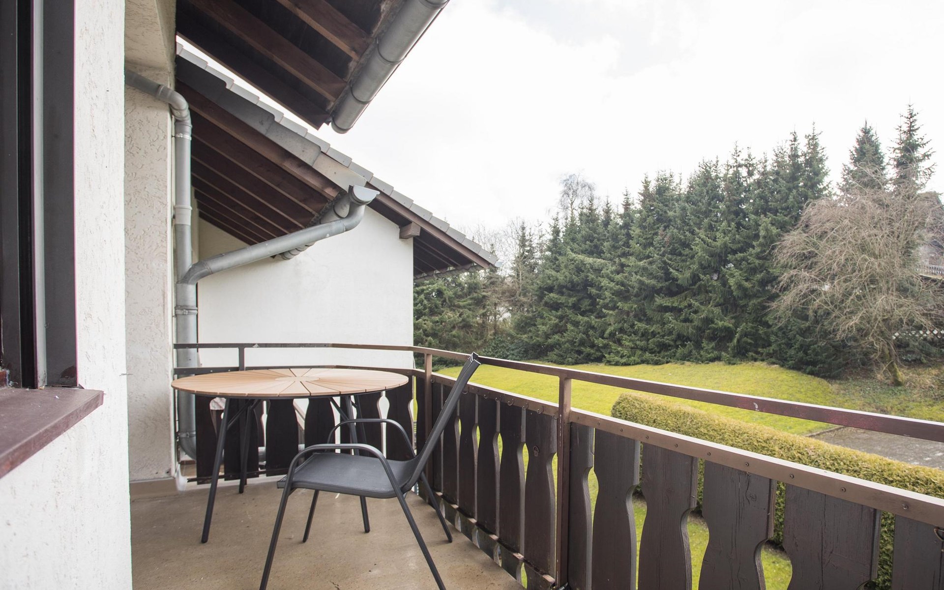 Met een prachtig uitzicht over de tuin en het groen van Winterberg is het hier heerlijk vertoeven. Het balkon is uitgerust met een tafel en vier zitplaatsen, ideaal voor een ontbijt in de buitenlucht of een avond onder de sterren.