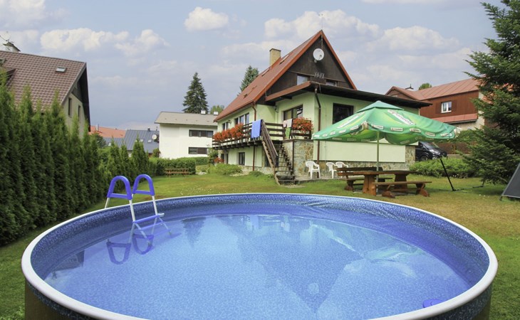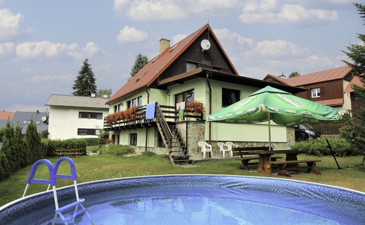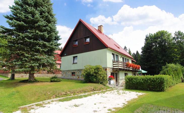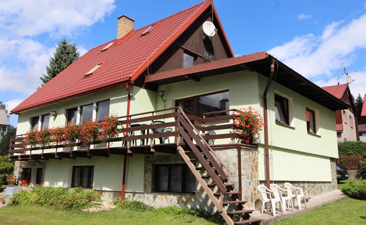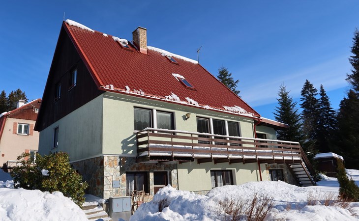 Gezellig Huis met 2 woningen van 2 verdiepingen, vrijstaand. In de wijk Nový Svět, in de plaats, 400 m van het centrum van Harrachov, 50 m van de bosrand, 800 m van het skigebied. Voor medegebruik: terrein, tuin, openluchtzwembad rond (seizoensgebonden beschikbaarheid: 01.Jun. - 15.Sep.). Tuinmeubelen, barbecue, stookplaats. In het huis: sauna (extra). Bergruimte voor fietsen, berging voor ski's. Parkeerplaats bij het huis. Supermarkt 500 m, restaurant 150 m, café 400 m, fietsverhuur 1.5 km, bushalte "Harrachov, sklárna" 300 m, station "Harrachov" 2.1 km, openluchtzwembad 1.5 km. Golfterrein (9 holes) 3 km, tennis 1.5 km, skilift, stoeltjeslift, skipisten 800 m, skiverhuur 10 m, skischool 500 m, langlaufloipe 200 m, kinderspeelplaats 500 m. Attracties in de buurt: Bobová dráha, Muzeum skla 400 m, Skokanské můstky Harrachov 1.8 km, Mumlavský vodopád 2 km, Vodopády Kamienczyka, Szklarki (PL) 7 km, Huťský vodopád, Vosecká bouda, Dvořačky 9 km, Aquapark Babylon Liberec 34 km. Bekende skigebieden kunnen gemakkelijk worden bereikt: Čertova hora 800 m, Zákoutí 1,5 km, Ryžoviště 3 km, Kořenov 6,5 km, Rokytnice nad Jizerou 14 km. Bekende meren kunnen gemakkelijk worden bereikt: Vodní nádrž Souš 15 km. De eigenaar woont in hetzelfde huis. Tuin en zwembad gedeeld met de eigenaar. Mogelijkheid tot verblijf met huisdier (ras tot 8 kg) op aanvraag (niet in het winterseizoen).