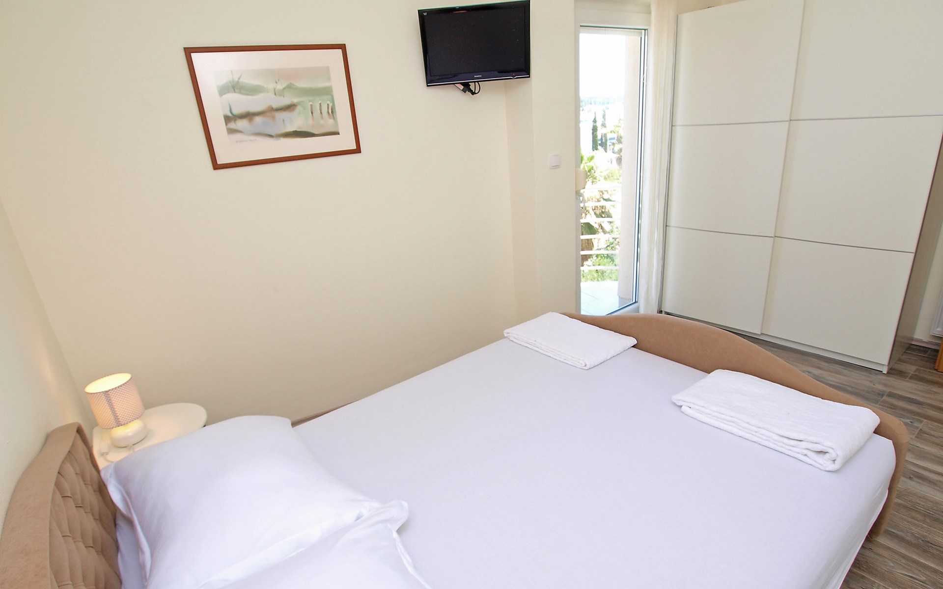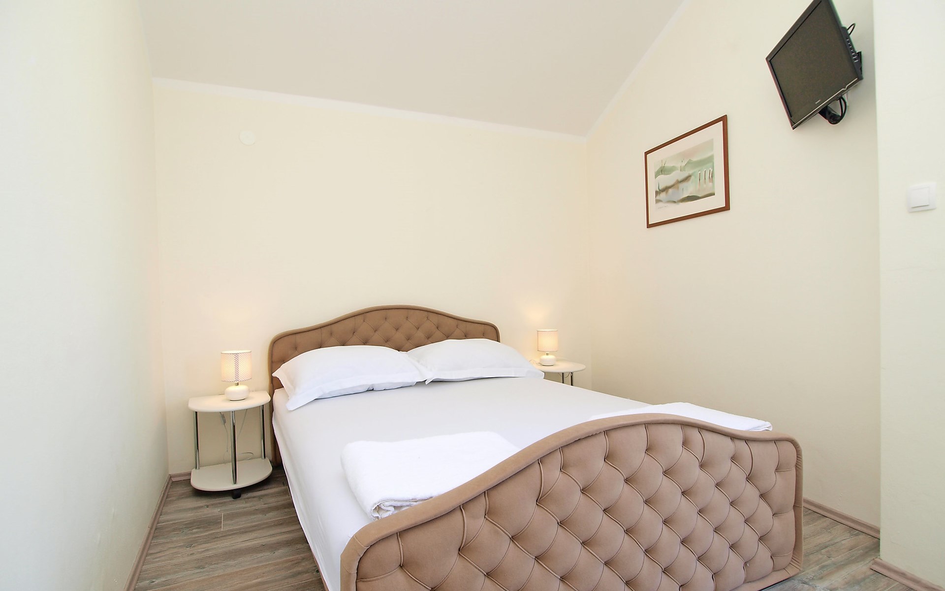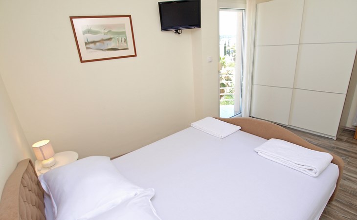 Bibinje 10 km van Zadar: Appartementencomplex "Marko". 2 km van het centrum van Bibinje, zonnige ligging, 70 m van zee, 70 m van het strand. Voor medegebruik: terrein 700 m2 (omheind), verzorgde tuin met gazon en bomen, openluchtzwembad hoekig verwarmd (7 x 3 m, 24 m2, 150 cm diepte, seizoensgebonden beschikbaarheid: 15.Mei. - 19.Okt.) met trap. Buitendouche, poolhouse met koelkast, WC en fornuis, terras (32 m2), tuinmeubelen, barbecue, kinderspeelplaats (schommel). In het huis: internetaansluiting. Parkeerplaats bij het huis op het terrein. Winkel, restaurant 650 m, café 100 m, bushalte 2.9 km, kiezelstrand 70 m, duikschool 100 m, strandbad 70 m. Jachthaven 50 m, kinderspeelplaats 100 m. Privé aanlegsteiger voor een boot (extra) op aanvraag. Voor medegebruik: terras (20 m2). Mogelijkheid tot het huren van de auto en de boot van de huiseigenaar voor (op aanvraag, extra).