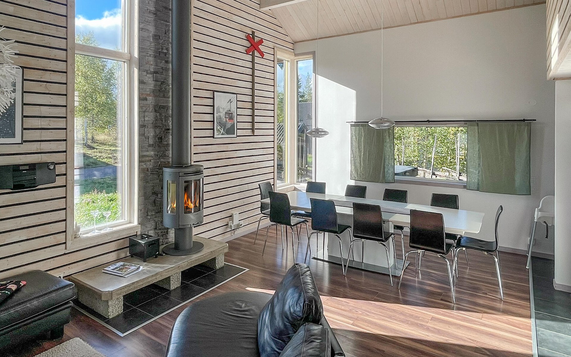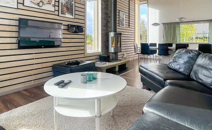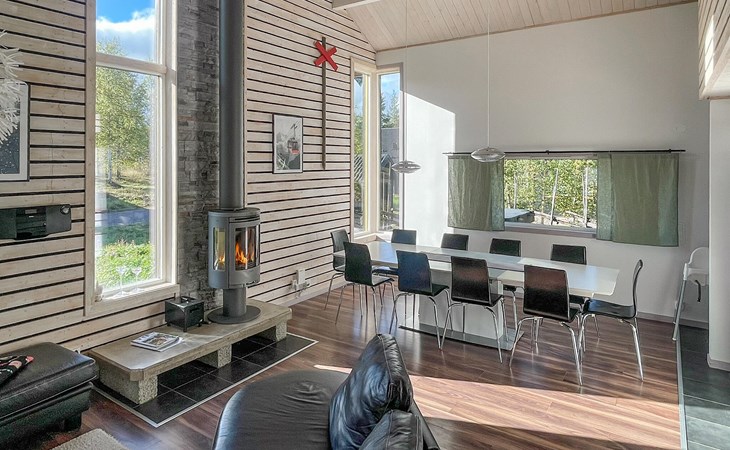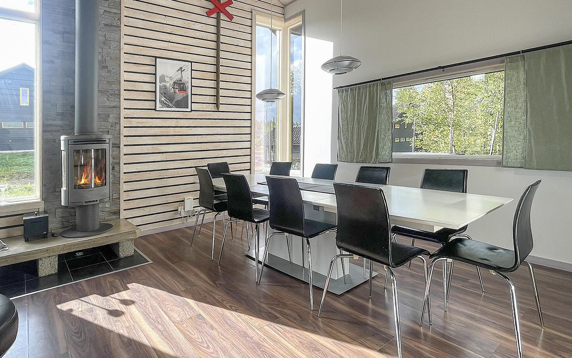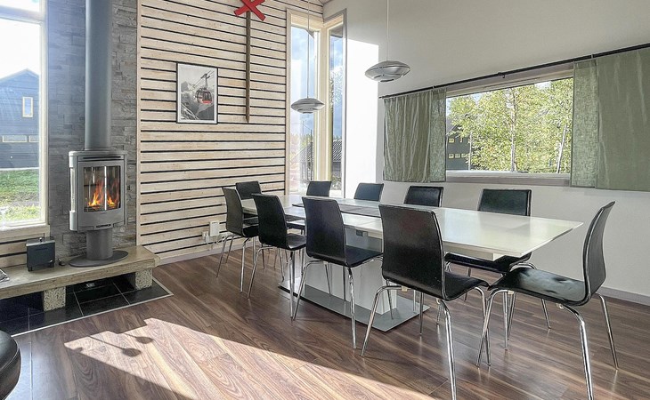 Verheug je op ontspannen dagen in dit comfortabele vakantiehuis dat ontspanning en natuurbeleving ideaal combineert. Verblijf midden in het berglandschap en geniet van een huis dat modern wooncomfort combineert met typisch Scandinavische stijl. Ontspan in de ruime woonkamer met houtkachel, comfortabele bank en panoramische ramen die veel licht binnenlaten. Gebruik de aangrenzende eethoek met grote tafel voor gezamenlijke maaltijden en kook in de moderne keuken. Voor extra ontspanning is er een privésauna en een badkamer met whirlpool. Er is ook een gezellige loftruimte met een tv om te ontspannen.