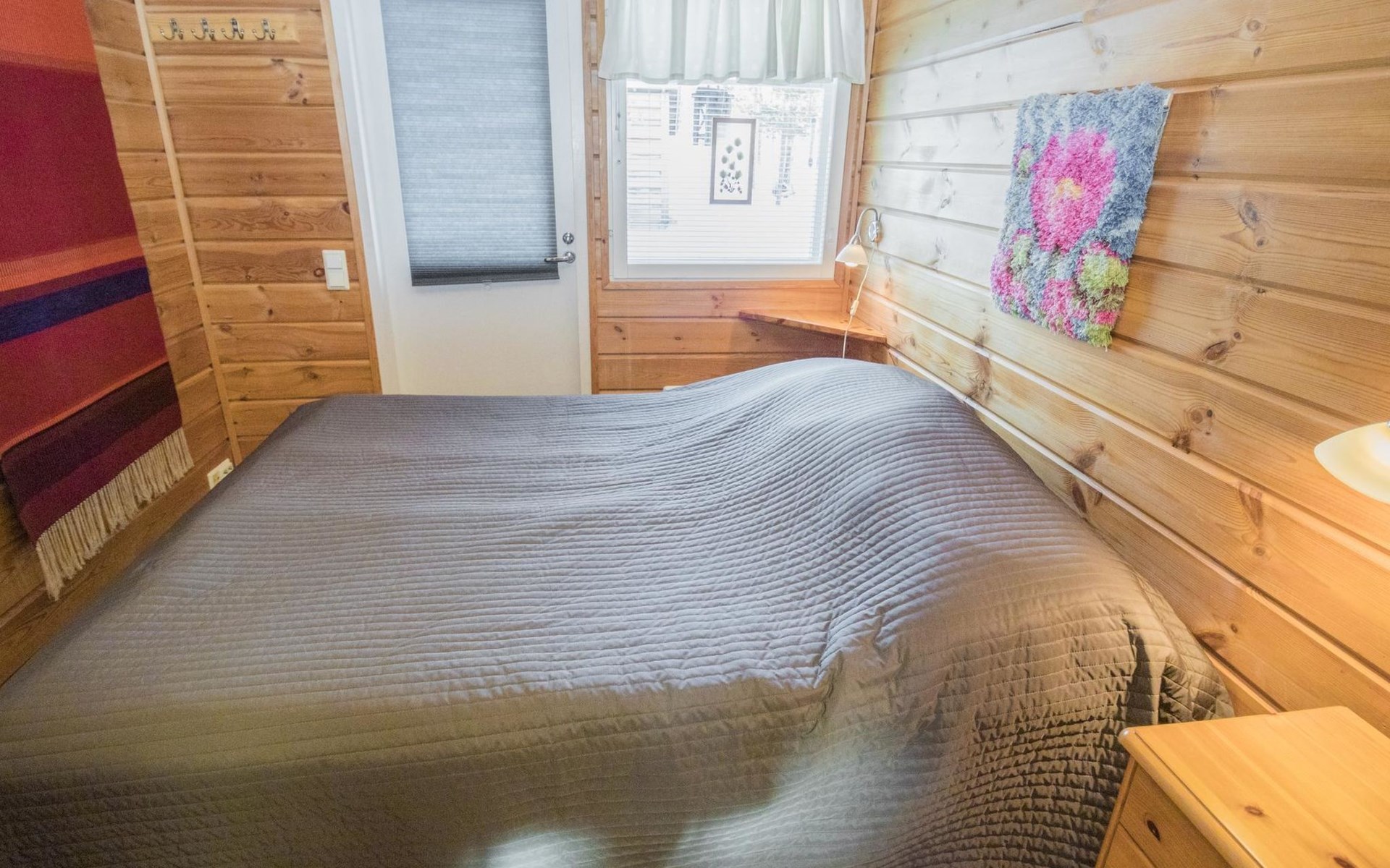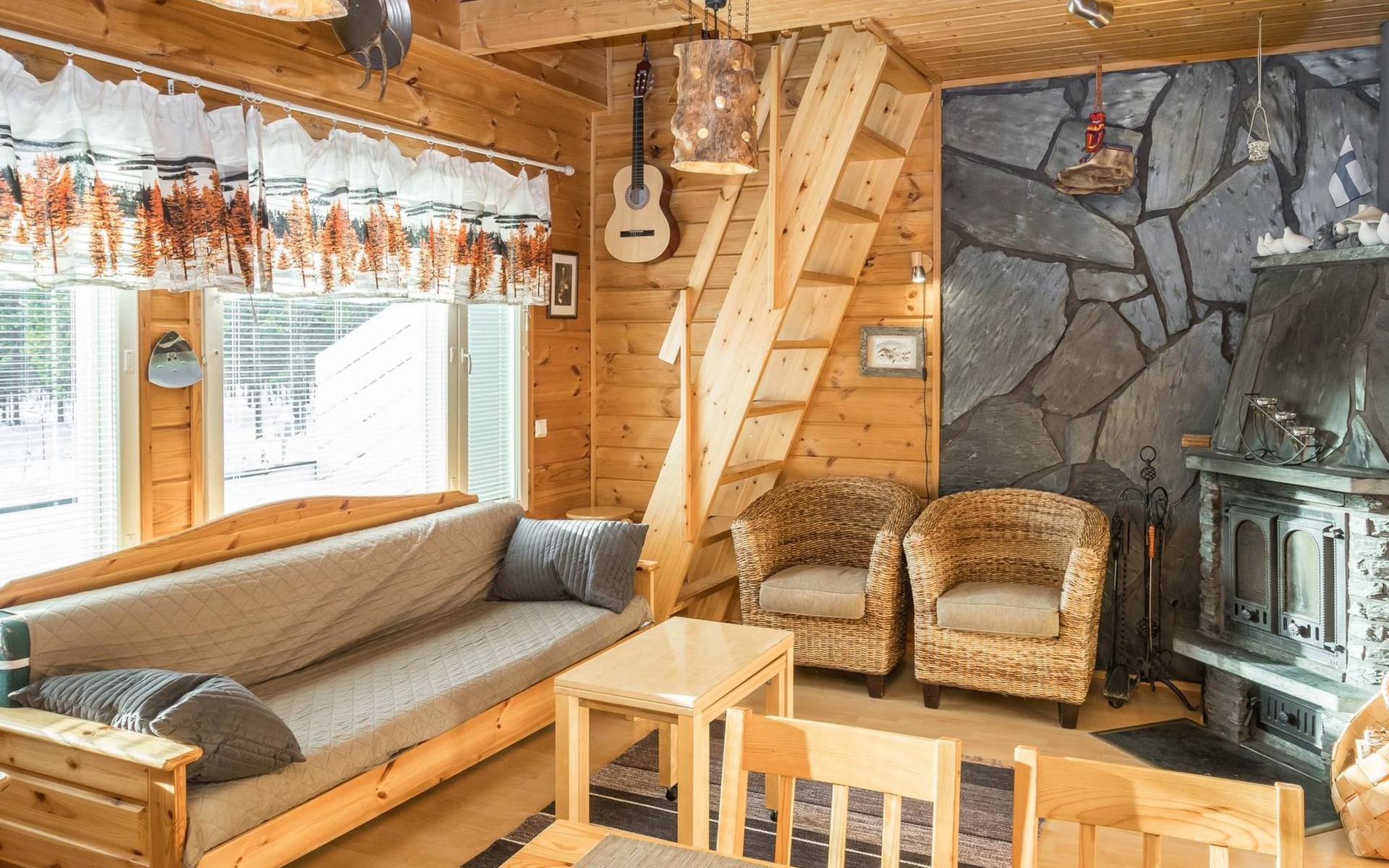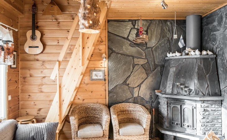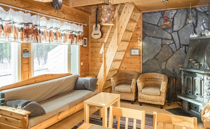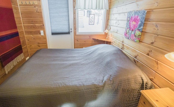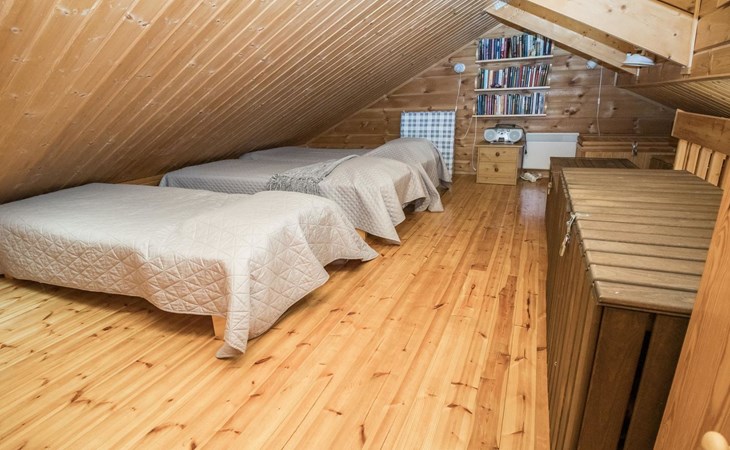 A good night's sleep comes in the downstairs bedroom (folding door) with two beds. The loft has three spring mattresses, providing additional sleeping space. Steep stairs to the loft which has a low room height.