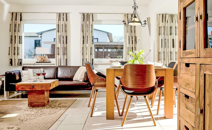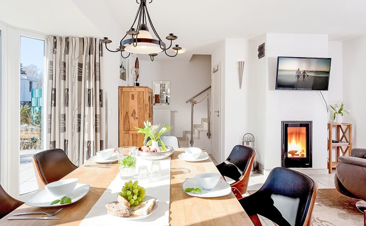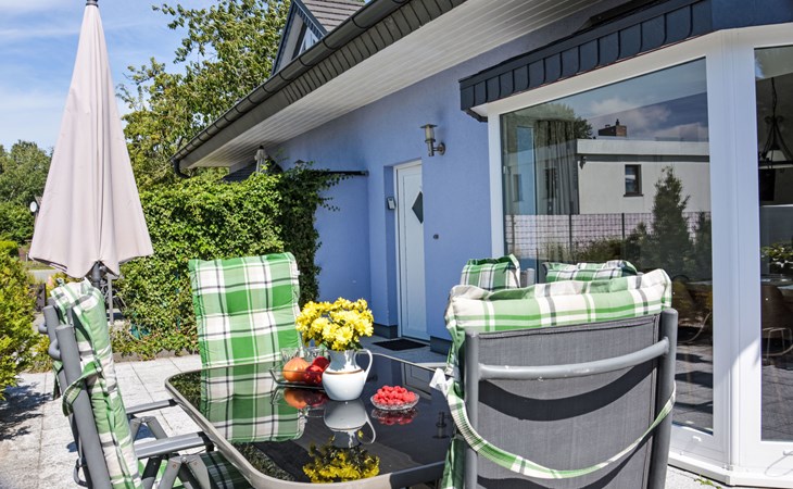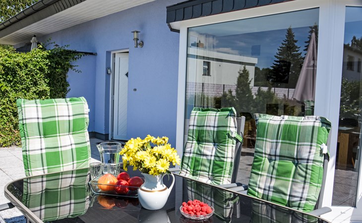 Zinnowitz: Moderne twee onder één kap woning "Fietje". In de plaats, 950 m van het centrum van Zinnowitz, 900 m van zee, 900 m van het strand. In het huis: bergruimte voor fietsen. Parkeerplaats (voor 2 auto's) bij het huis. Levensmiddelenwinkel, supermarkt 400 m, restaurant 350 m, bakkerij, café 400 m, bushalte 280 m, thermaalbad "Bernsteintherme" 1 km. Tennis 1.5 km, midgetgolf 1.5 km.