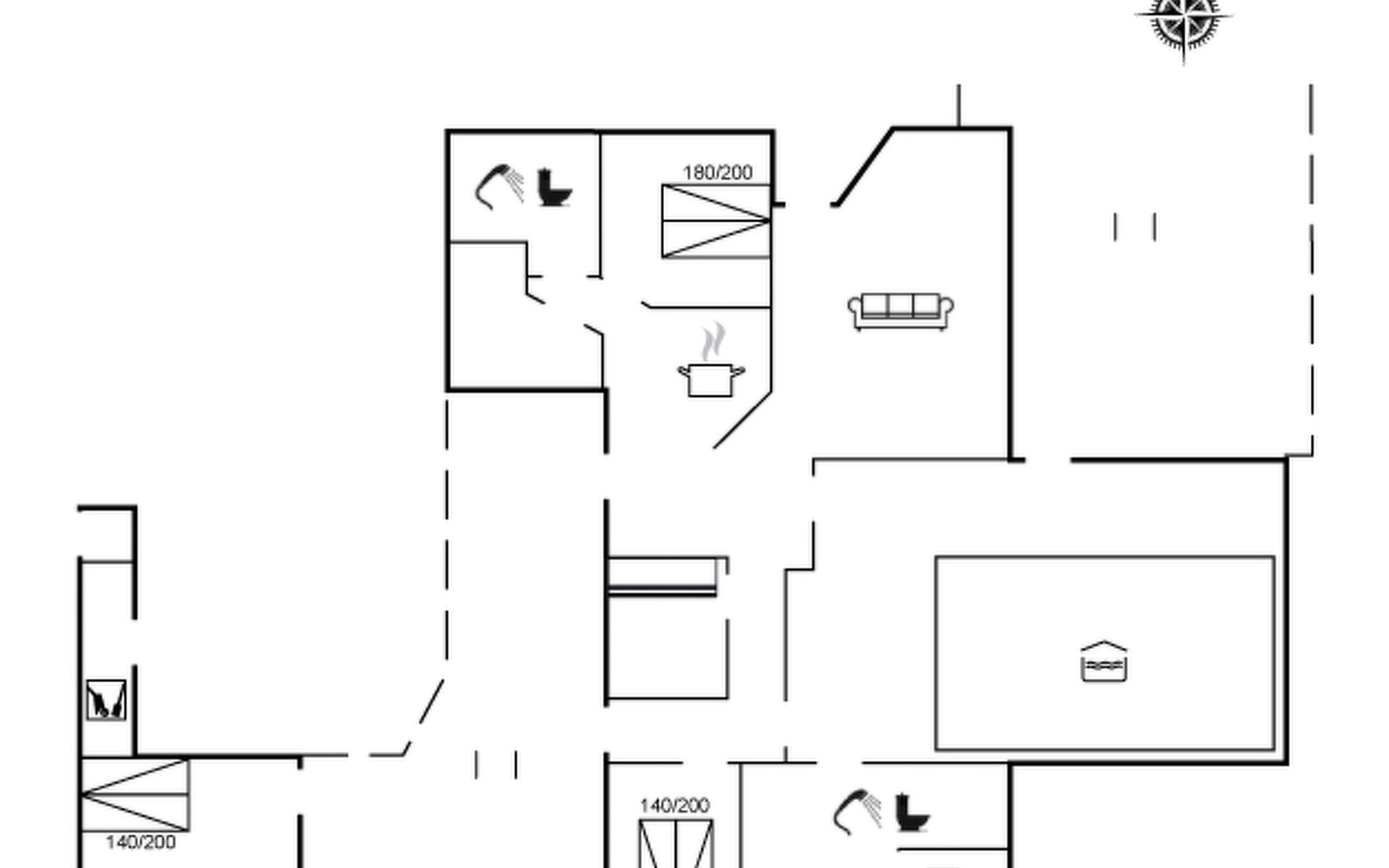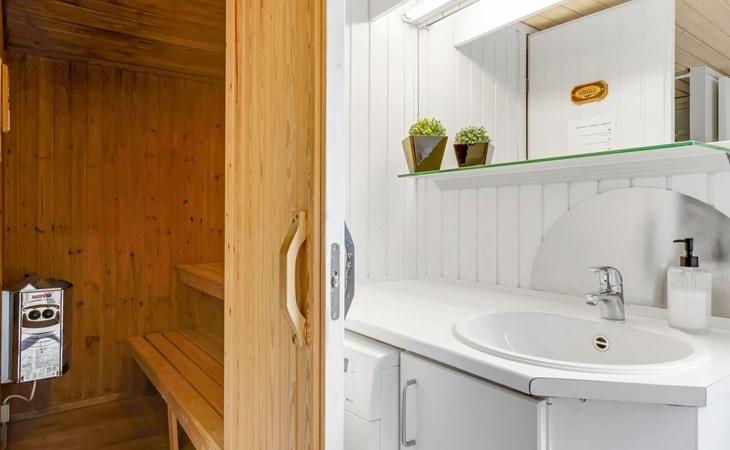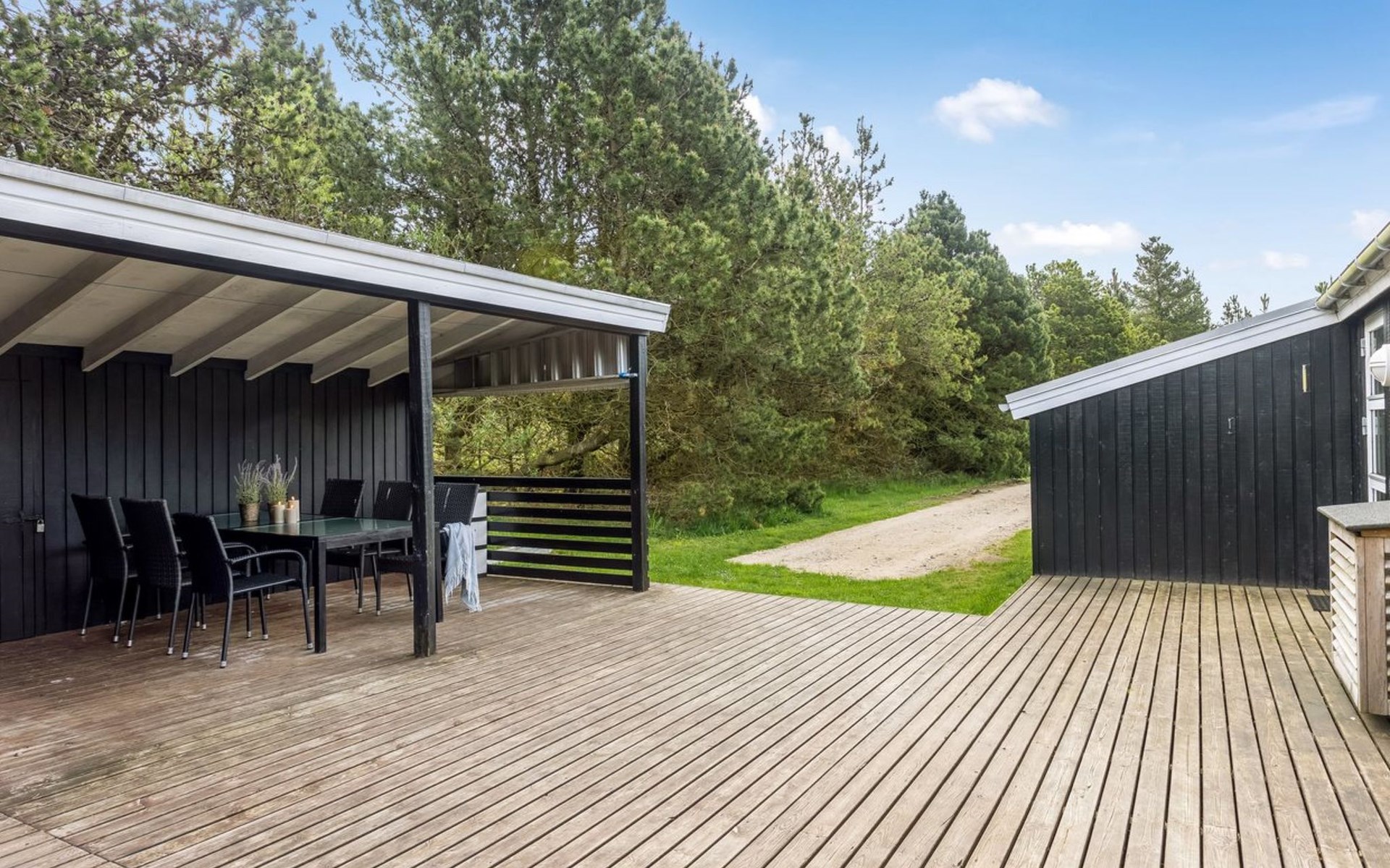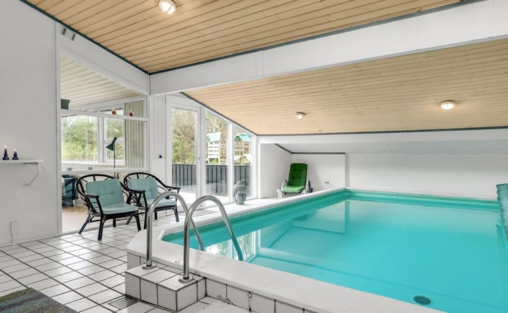 Eengezinswoning, bouwjaar 1990. 250 m van zee. Voor alleengebruik: wild terrein 2.500 m2, overdekt zwembad (3 x 6 m, 21 m2, 140 - 140 cm diepte). Terras (105 m2), kinderspeelplaats (glijbaan, schommel). In het huis: sauna, wasmachine. Levensmiddelenwinkel 400 m. De eigenaar accepteert geen jeugdgroepen.