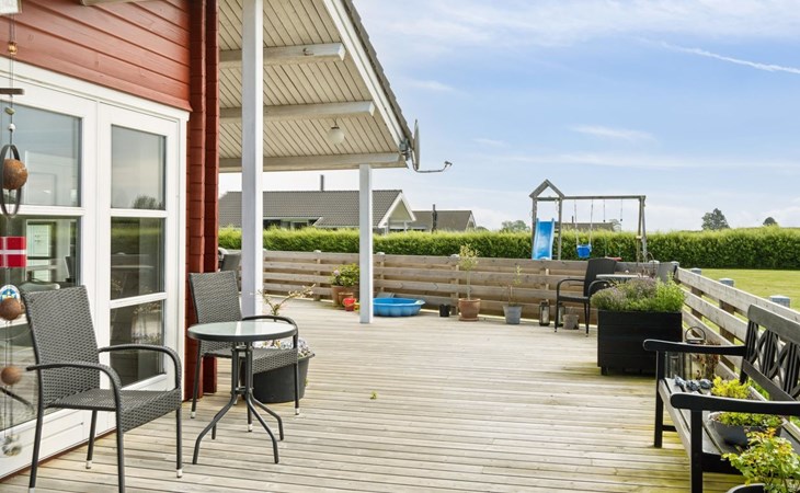Eengezinswoning, bouwjaar 2007. 600 m van zee. Voor alleengebruik: terrein 1.180 m2, verzorgde tuin. Terras (85 m2), barbecue, kinderspeelplaats (glijbaan, schommel). In het huis: sauna, trampoline, wasmachine, droger. Parkeerplaats bij het huis. Oplaadstation. Levensmiddelenwinkel 850 m. Golfterrein 15 km. De eigenaar accepteert geen jeugdgroepen.