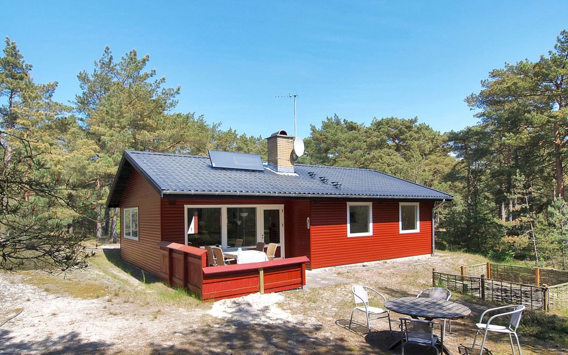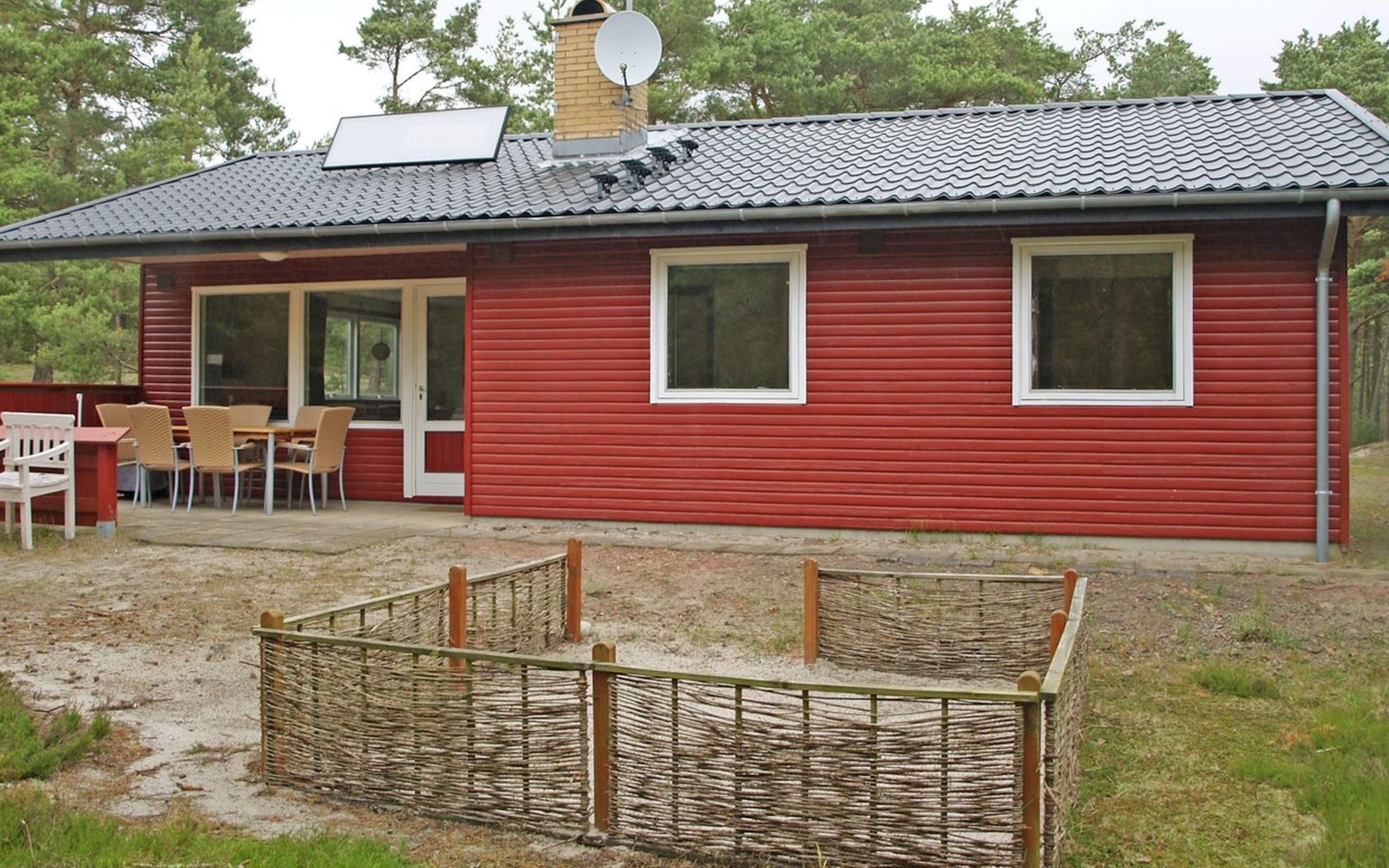 Eengezinswoning, bouwjaar 1987. 300 m van zee. Voor alleengebruik: wild terrein 2.500 m2. Terras (20 m2), kinderspeelplaats (schommel). In het huis: wasmachine. Parkeerplaats bij het huis. Levensmiddelenwinkel 4 km.