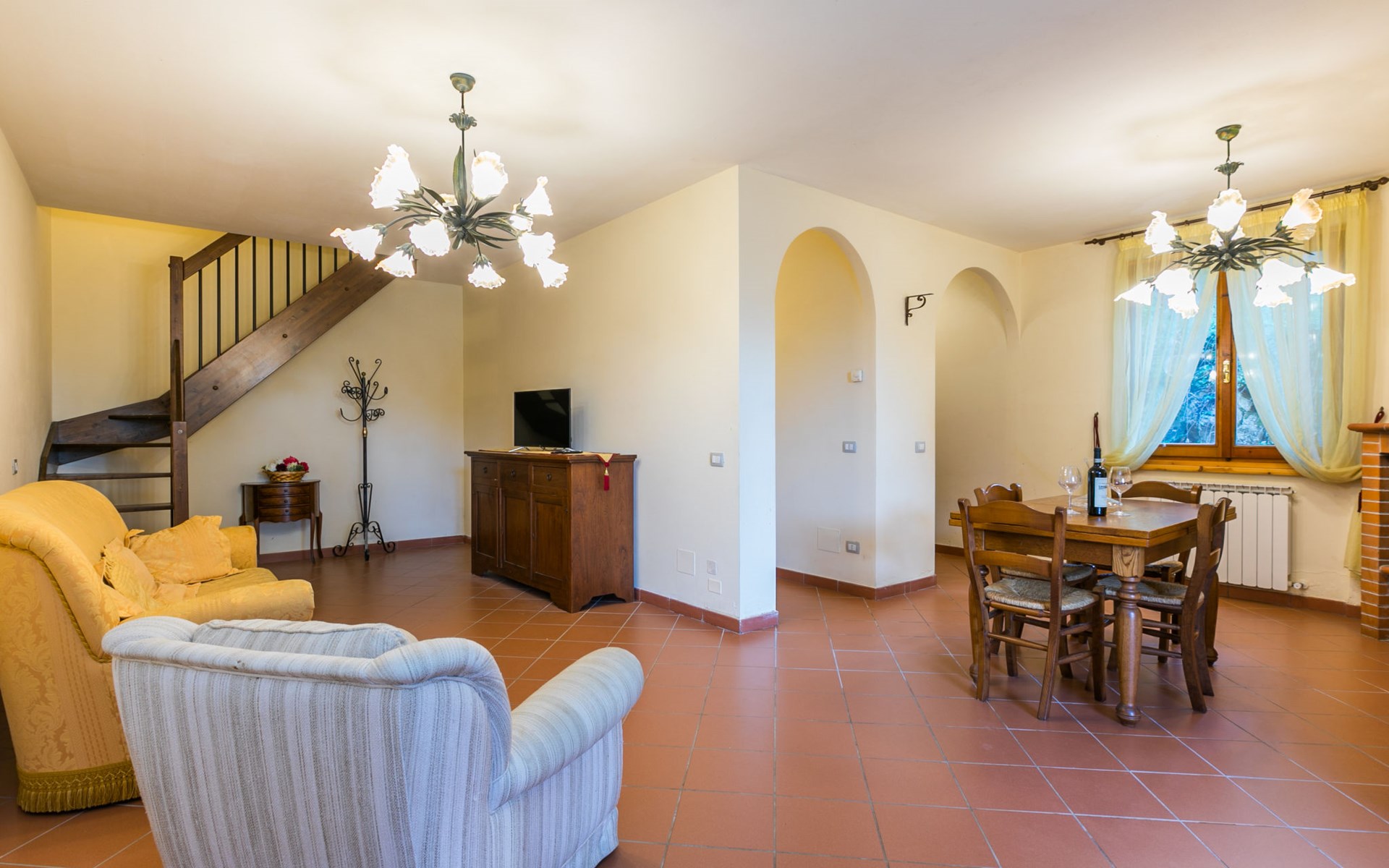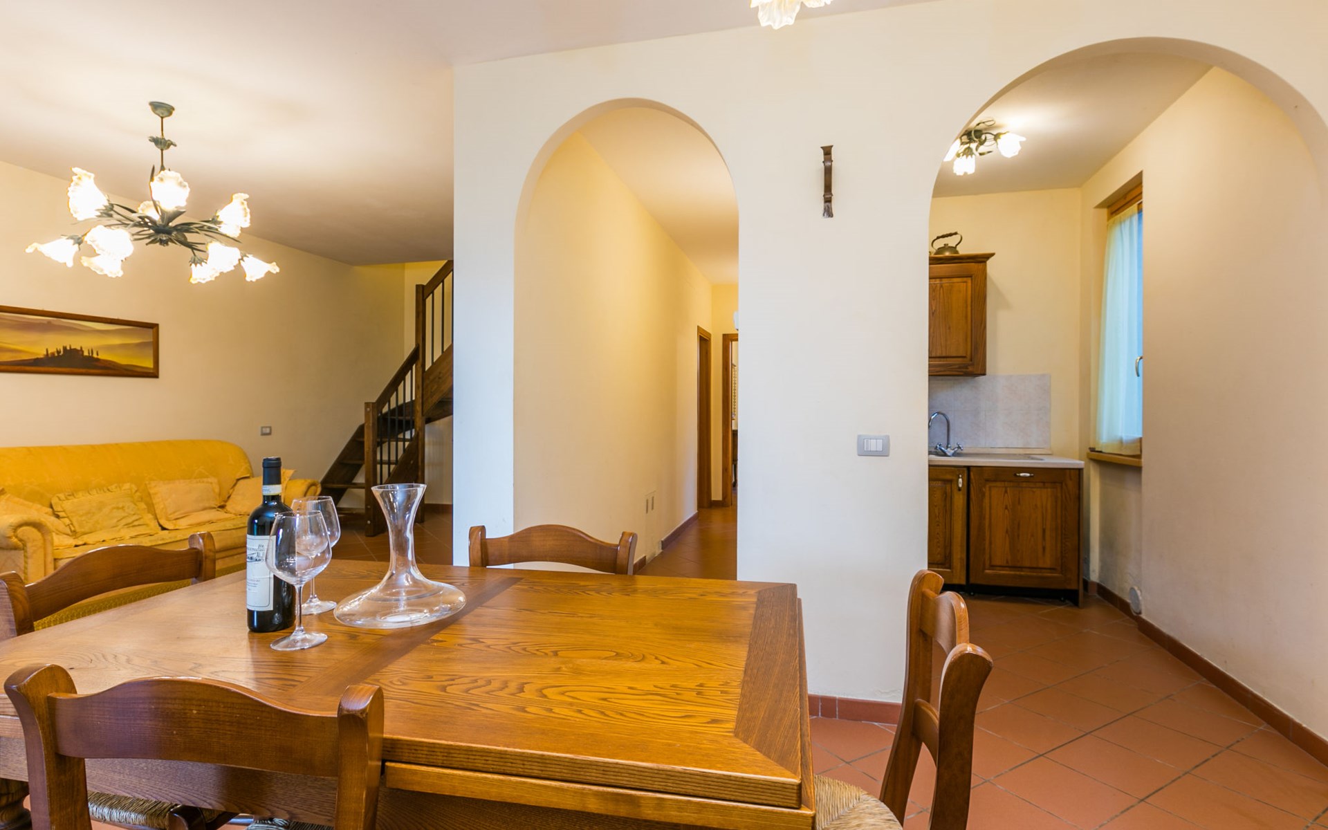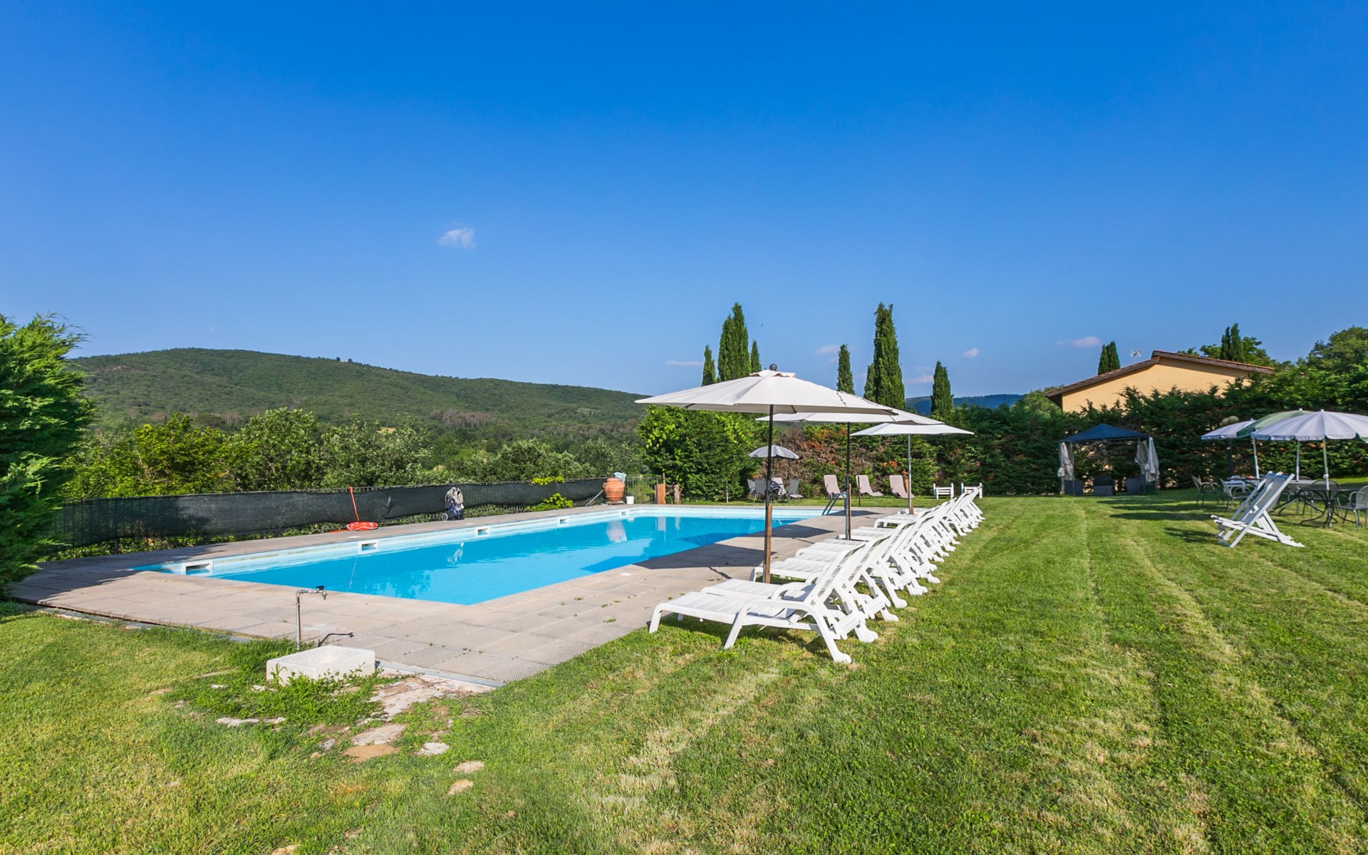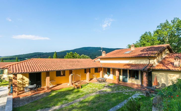 Badia Agnano 7 km van Bucine: Kindvriendelijke, gezellige residentie "Le Muricce", omgeven door bomen, velden en wijngaarden. 5 appartementen in de woning. Huurobject bestaande uit hoofd-/ bijgebouw, 1 km van het centrum van Badia Agnano, 7 km van het centrum van Bucine, 25 km van het centrum van Arezzo, zonnige ligging, te midden van groen. Voor alleengebruik: terrein 4 ha (omheind), planten en bomen, wilde tuin, weide, openluchtzwembad omheind (15 x 7 m, 120 - 150 cm diepte, seizoensgebonden beschikbaarheid: 15.Mei. - 15.Sep.). Buitendouche, tafeltennis, tuinmeubelen, barbecue, kinderspeelplaats (glijbaan, schommel), onderhoud zwembad door de eigenaar/tuinman. In het huis: Internet (WiFi), tafeltennis, wasmachine (extra). Wissel van linnengoed (extra wissel te betalen). Parkeerplaats op het terrein. Oplaadstation. Winkel 1 km, levensmiddelenwinkel 1 km, supermarkt 7 km, restaurant 1 km, bar 1 km, bakkerij 1 km, bushalte "Badia Agnano" 1 km, treinstation "Bucine" 7 km, thermaalbad "Rapolano Terme" 27 km. Wandelroutes 100 m vanaf het huis. Attracties in de buurt: Siena 40 km, Cortona 45 km, Firenze 70 km. Bekende meren kunnen gemakkelijk worden bereikt: Trasimeno 65 km. Baby uitrusting (incl.). Groepen jongeren uitsluitend op aanvraag.