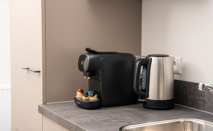 De volledig uitgeruste keuken biedt alles wat u nodig heeft om heerlijke maaltijden te bereiden. Of u nu zin heeft in een gezellig ontbijt voor twee of een feestelijke avondmaaltijd, u vindt alle benodigde apparatuur en keukengerei binnen handbereik.