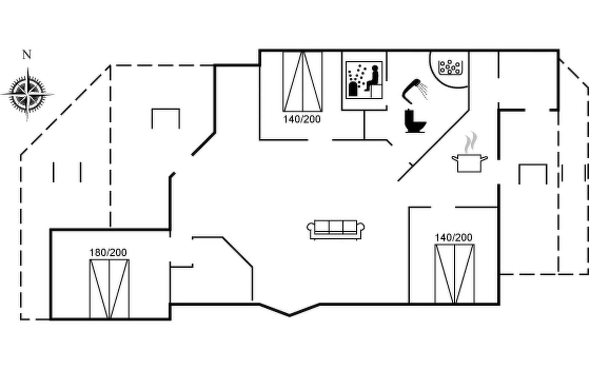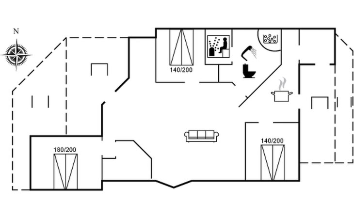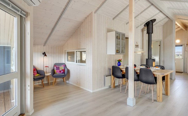 Eengezinswoning, bouwjaar 1995. 800 m van zee. Voor alleengebruik: wild terrein 1.400 m2. Terras (15 m2), kinderspeelplaats (schommel). In het huis: sauna, wasmachine, droger. Parkeerplaats bij het huis. Levensmiddelenwinkel 2 km. De eigenaar accepteert geen jeugdgroepen.