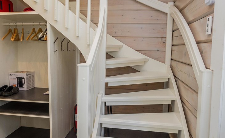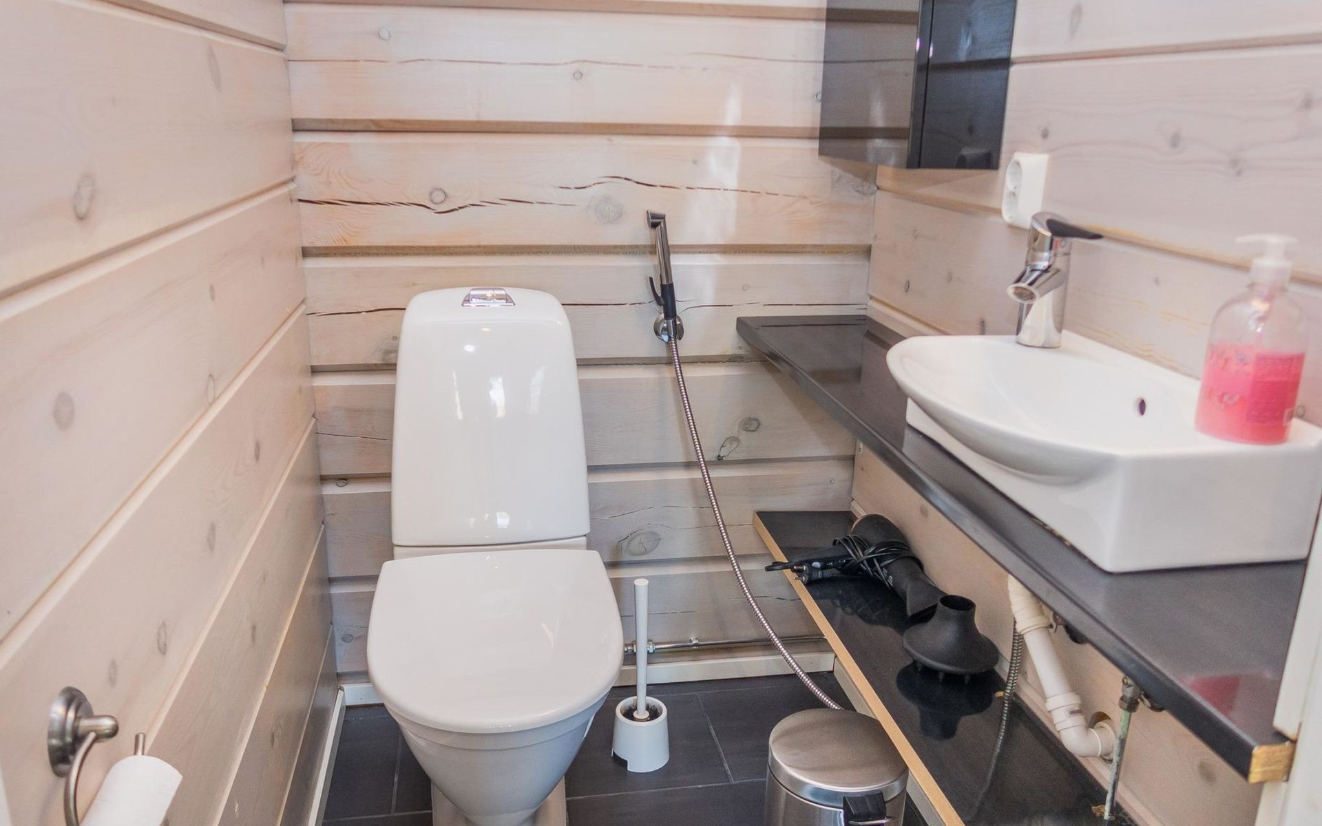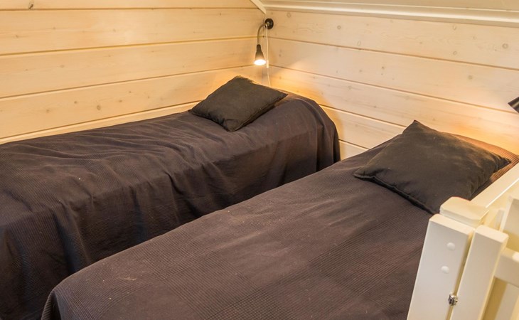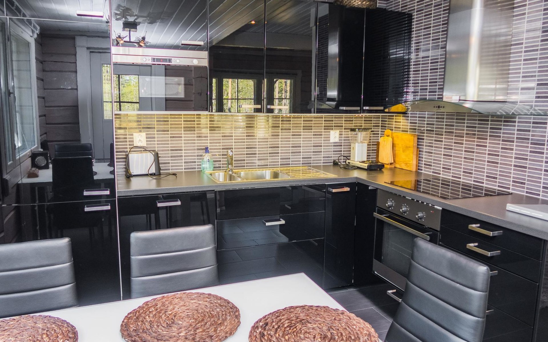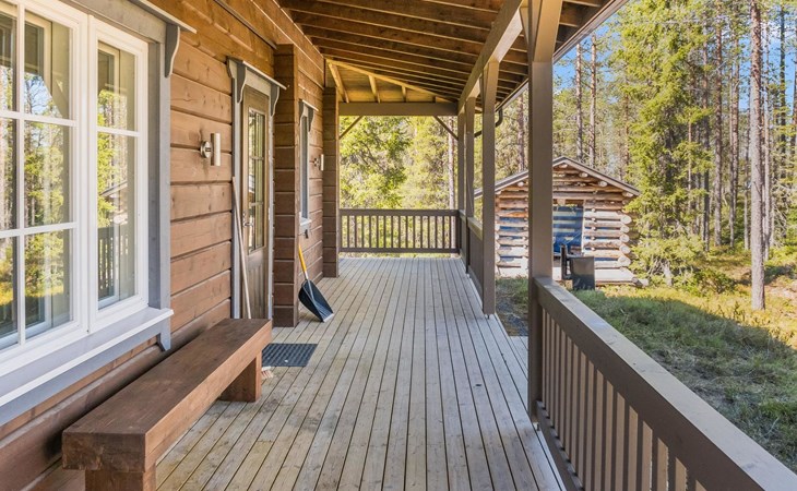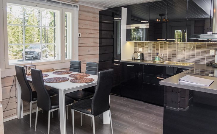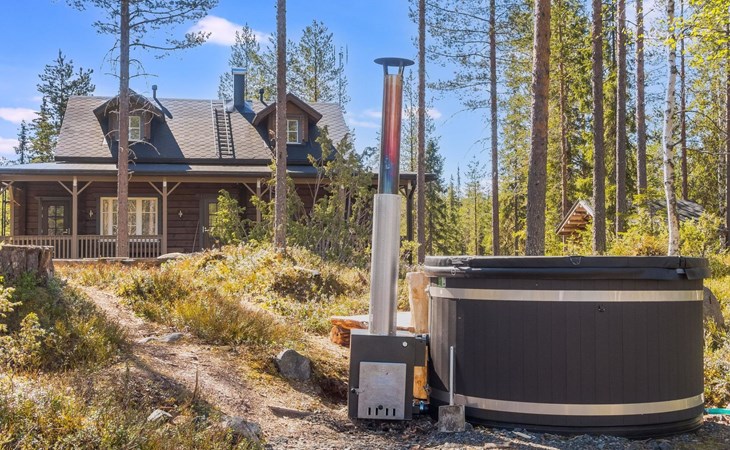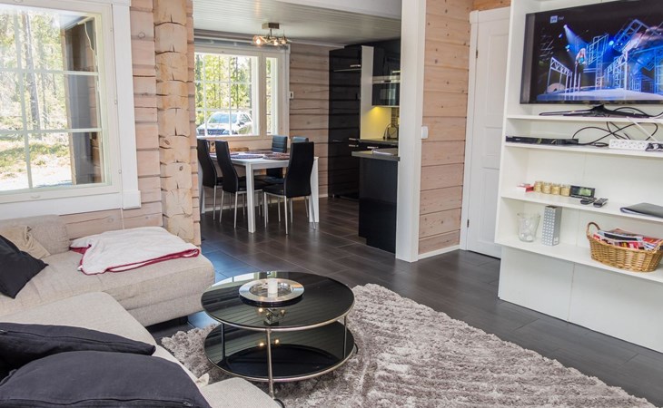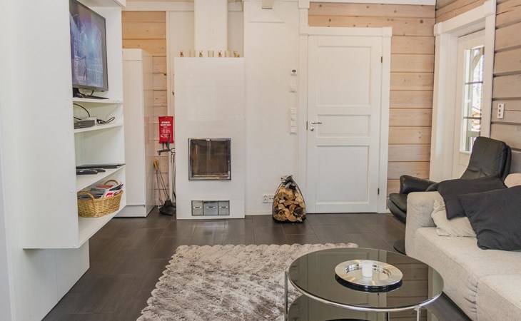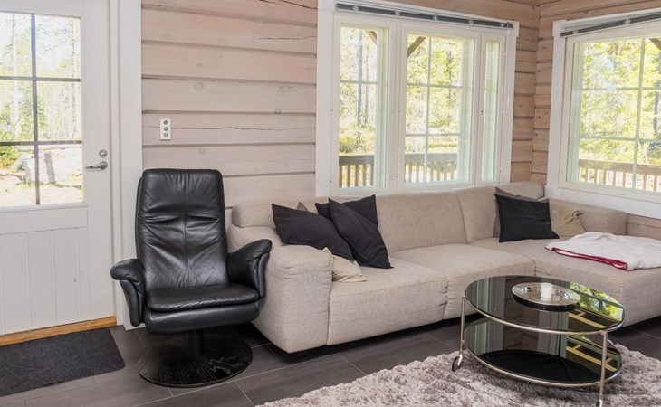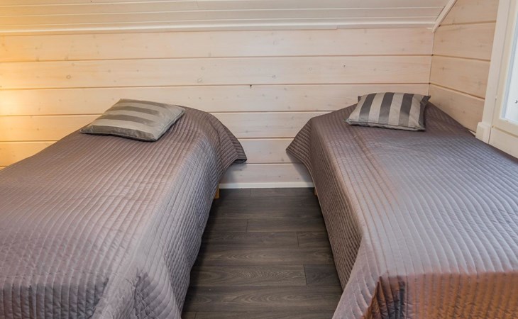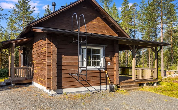 The cabin features one bedroom with a comfortable double bed and a loft with four additional beds, offering space for up to six guests. Kuusamo's breathtaking natural surroundings await right at your doorstep, making it an ideal destination for year-round outdoor activities and a peaceful stay. The living room/kitchen along with the electric sauna complete the experience, offering comfort and relaxation in all seasons.