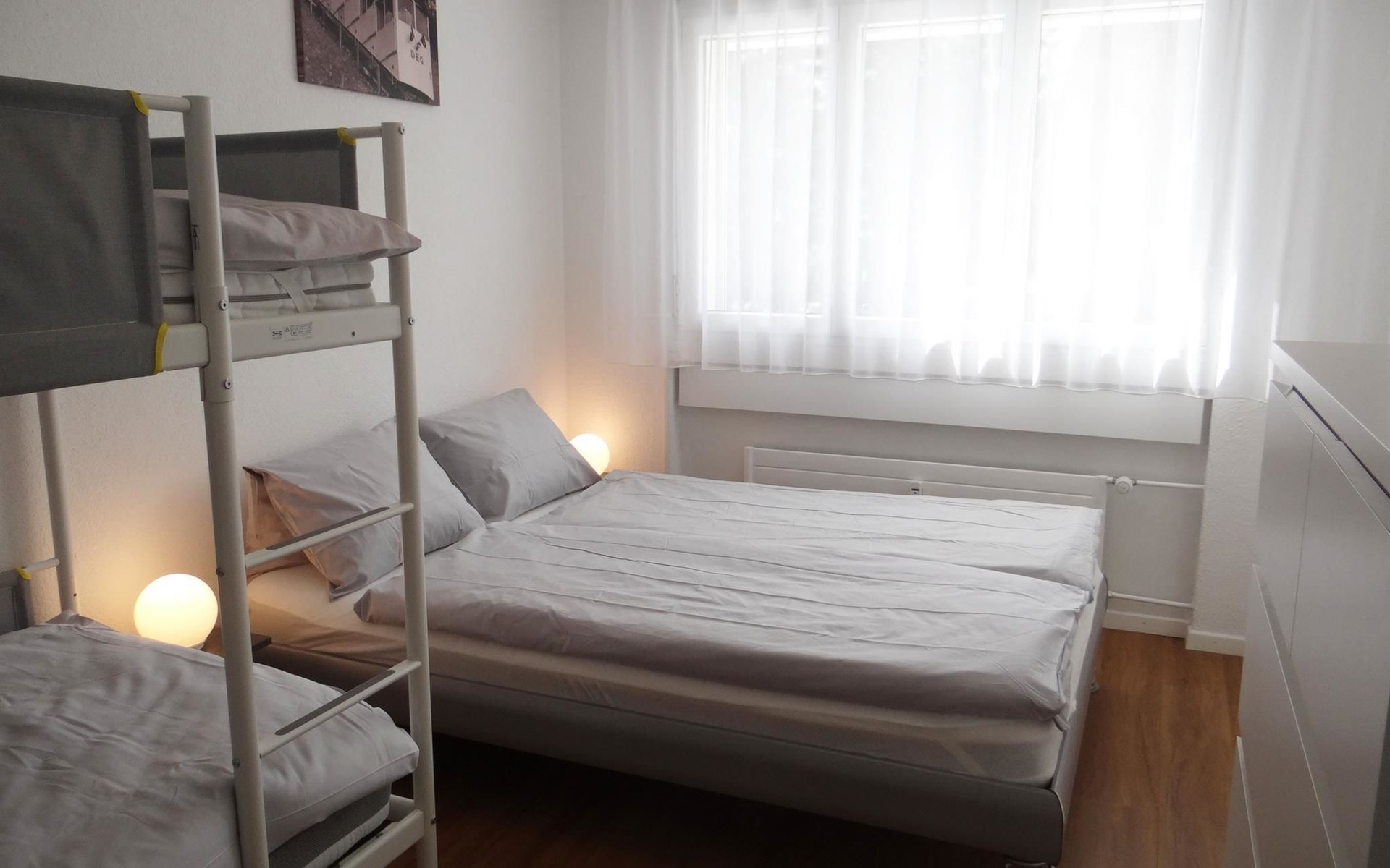 3-room apartment on 3rd floor: living/dining room with TV, 1 bedroom with double bed 160 cm, 1 bedroom with double bed 140cm and 1x2 bunk beds. kitchen, shower/WC.