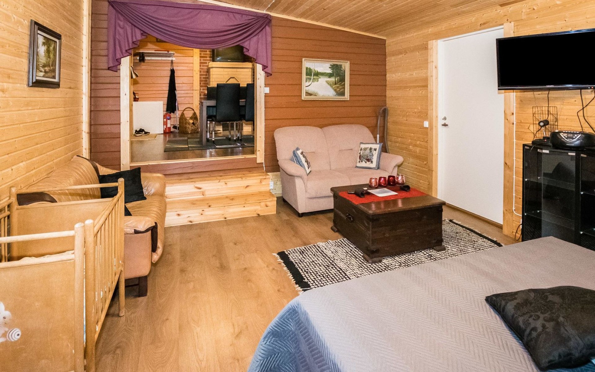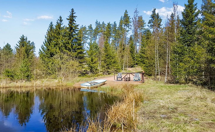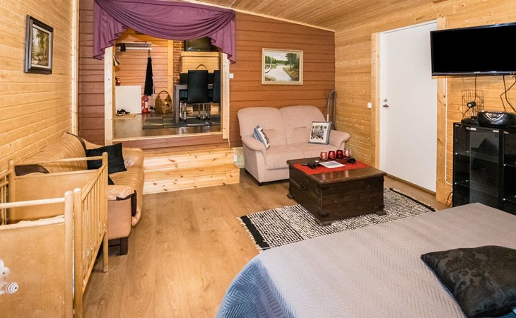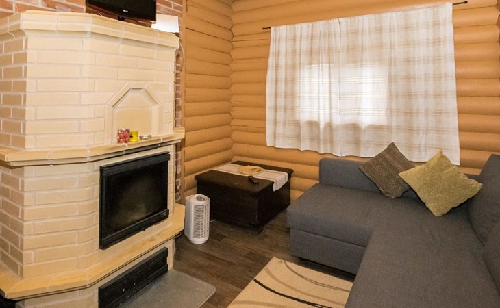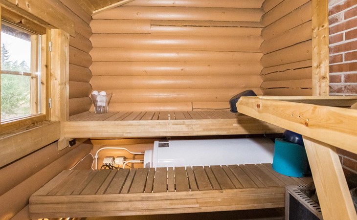 A separate sauna building with electric heating, where fireplace room with sofa bed, dressing room, sauna (wood-burning stove and shower), porch. Both cottages have TV.
