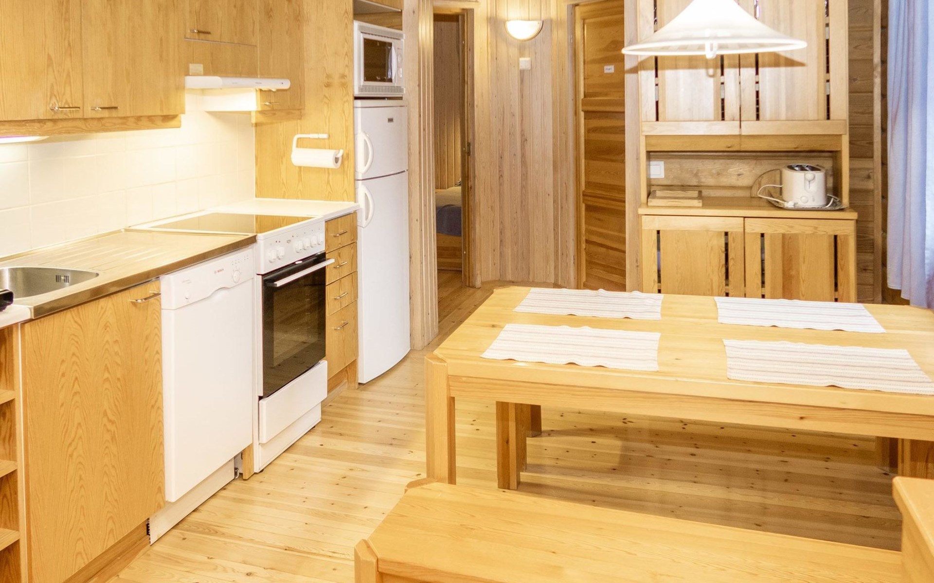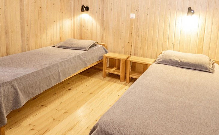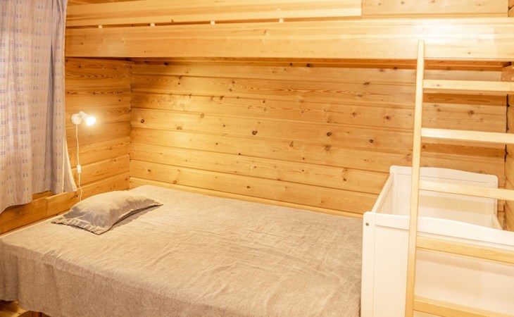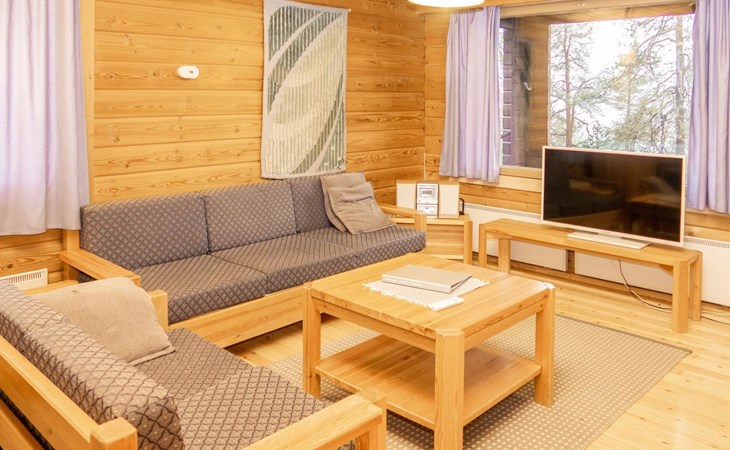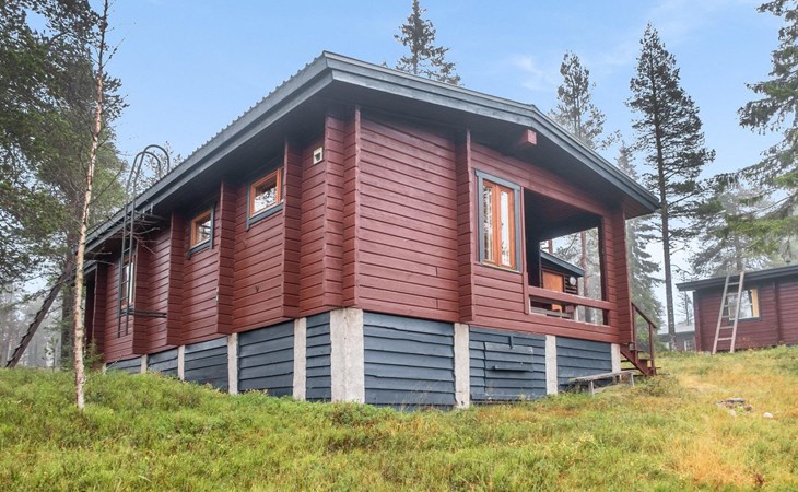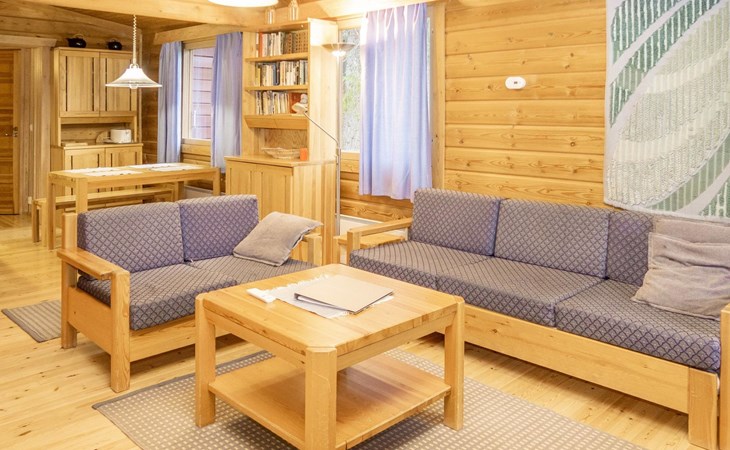 27 km to the north from Kuusamo, Ruka village (West-Ruka) 700 m. Log cabin, built in 1976, renovated in 1994. Bedroom 1: 2 beds, bedroom 2: double bed and sleeping loft for one, living room, kitchen, electric sauna.