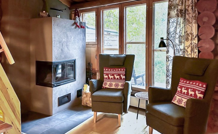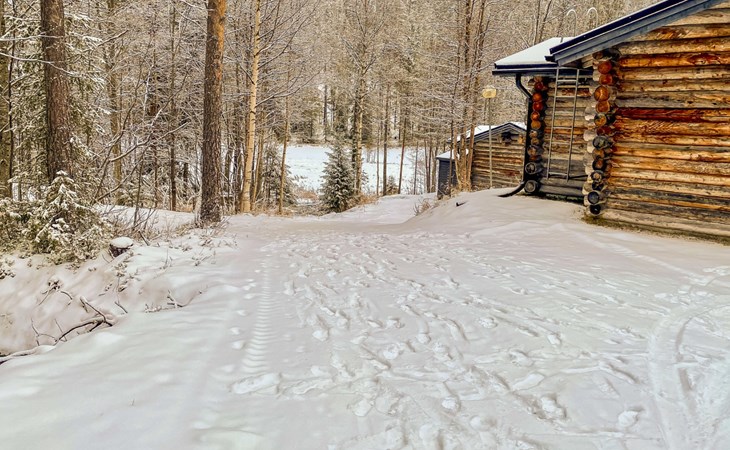 27 km to the north from Kuusamo, Ruka village (West-Ruka) and ski slopes 3,5 km. Ski bus stop about 500 m, cross-country skiing tracks runs pass by the cottage. Pond Salmilampi 40 m.