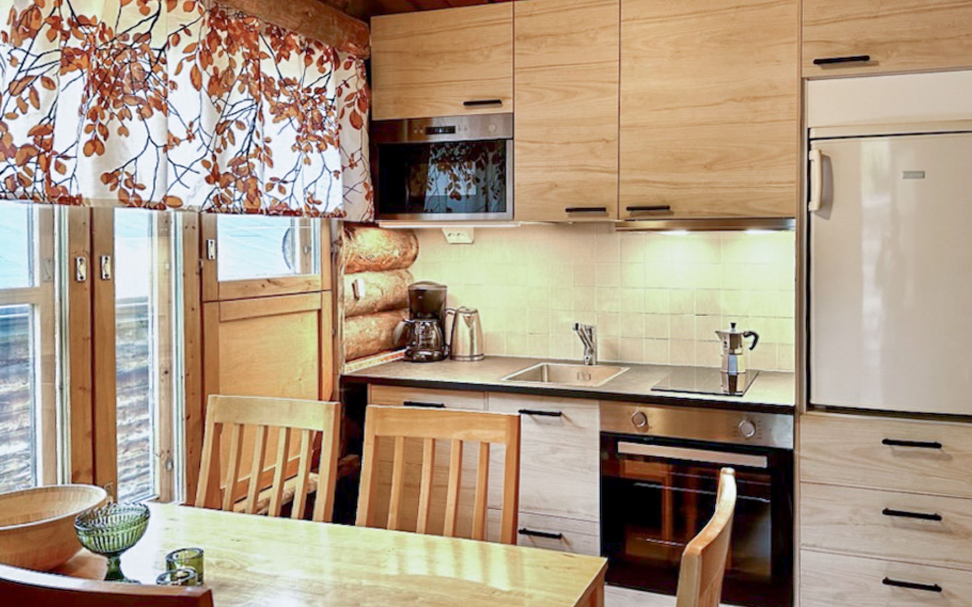 Bed room with double bed and additional mattress. Loft (13 m², low room height) mattresses for three, living room with a sofa bed. The kitchen of the apartment is equipped with tableware for eight people and you will find the necessary utensils for cooking. In the kitchen you will find: coffee maker, kettle, toaster, electric mixer and microwave. The fridge has a small freezer compartment. The living room is decorated for a relaxed stay and the soapstone fireplace warms and creates an atmosphere after a busy day. Washroom (renovated in 2022), electric sauna and toilet.