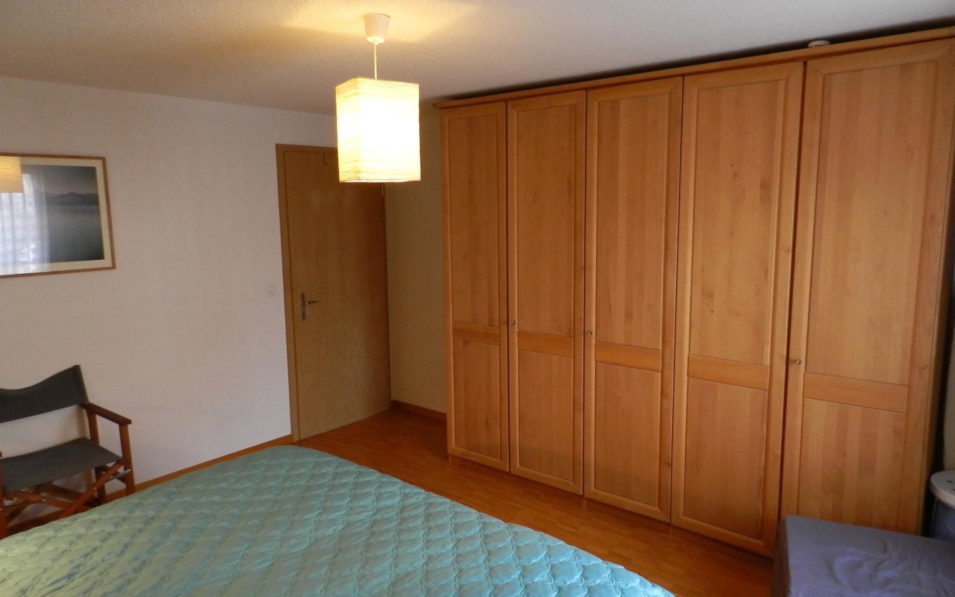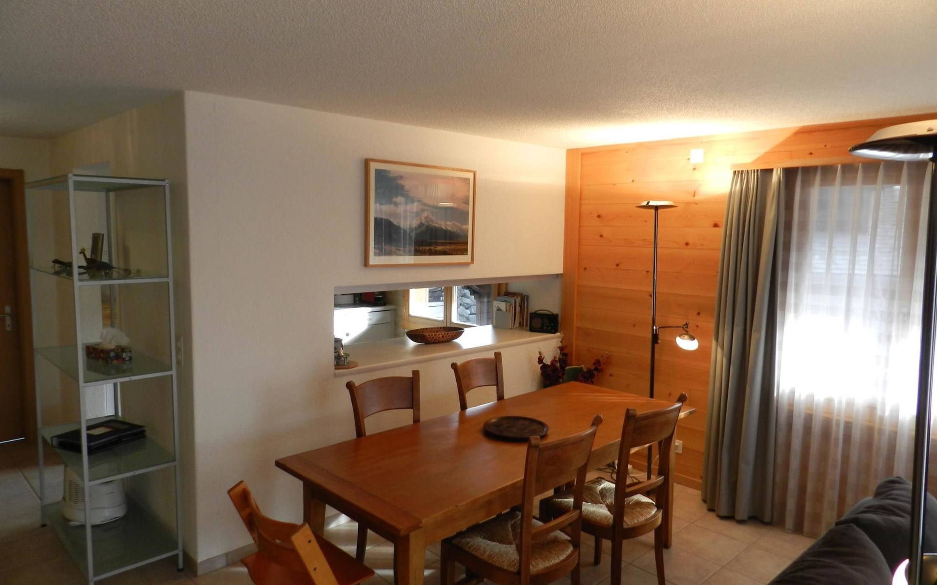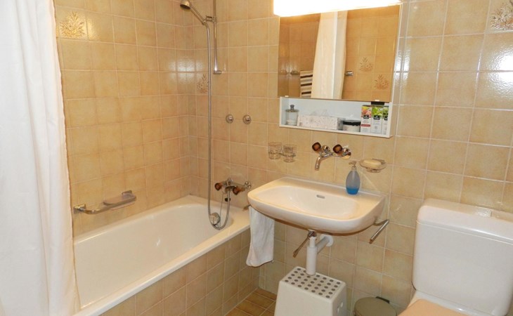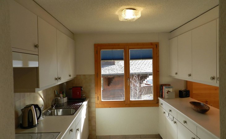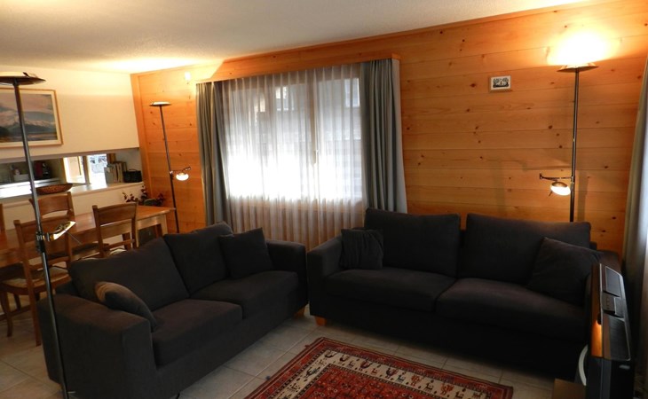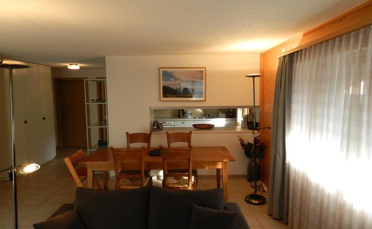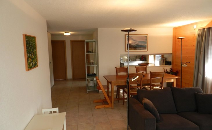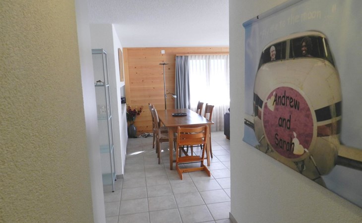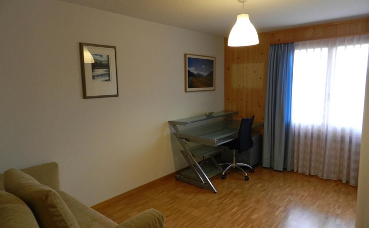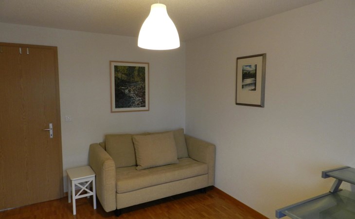 Living-/dining room with kitchen (among other things furnished with ceramic stove, oven, refrigerator with deep-freezer compartment, dishwasher, coffee machine with capsules (Nespresso) as well as a fondue-, raclette-set and table grill), dining table with 4 chairs, 2 sofas, TV and radio. 1 bathroom with bathtub/toilet. 1 bedroom with 1 double bed (180x200cm), big cupboard, 1 chair and 1 extra travel mattress. 1 room with pull-out sofa bed (130x200cm) for max. 2 younger children or max. 1 adult, office desk and wardrobe. WiFi. Travel baby cot (60x120cm) incl. bed linen and highchair available.