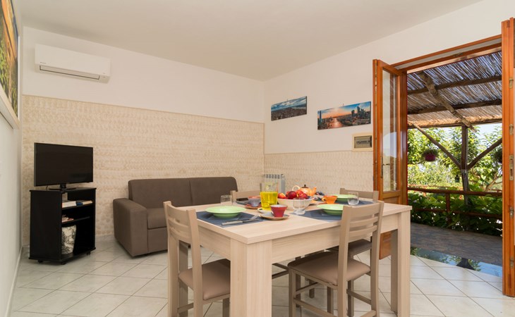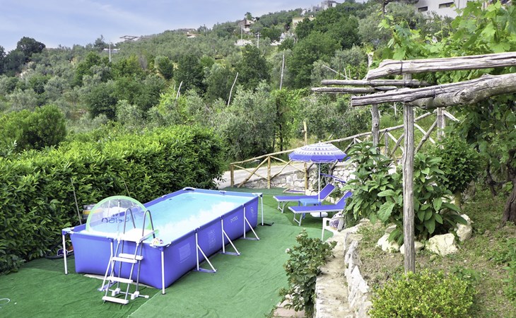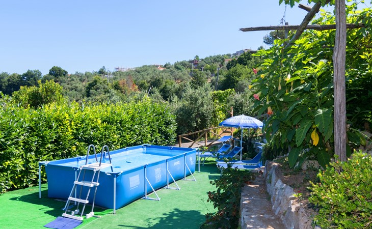 Monticchio 4 km van Massa Lubrense: Mooi, rustieke Huis met 2 woningen "Nataly Country House", omgeven door bomen en velden. 2 appartementen in de woning. Zonnige, verhoogde ligging, 5 km van zee, 5 km van het strand, te midden van groen. Voor alleengebruik: mooie, verzorgde tuin 300 m2 (omheind) met bloemen en bomen, ligweide, openluchtzwembad (verhoogd) omheind (2 x 4 m, 110 - 110 cm diepte, seizoensgebonden beschikbaarheid: 01.Mei. - 30.Sep.). Buitendouche, patio (30 m2), tuinmeubelen, barbecue, onderhoud zwembad door de eigenaar/tuinman. In het huis: Internet (WiFi), air-conditioning, verwarming alleen beschikbaar van 01.Nov. - 31.Mrt.. Schoonmaak op verzoek (extra). Boodschappenpakket mogelijk bij aankomst. Luchthaventransfer (extra). Parkeerplaats nr. 2 bij het huis. Levensmiddelenwinkel 50 m, supermarkt 50 m, restaurant 100 m, bar 100 m, bushalte 20 m, station "Sorrento" 9 km, veerboot 9 km, kiezelstrand "Marina del Cantone" 5 km, duikschool 5 km. Attracties in de buurt: Sorrento 9 km, Positano 18 km, Amalfi 35 km, Ischia, Capri, Napoli 60 km. Auto noodzakelijk. Baby uitrusting op aanvraag (extra), kinderopvang mogelijk in het hoogseizoen (extra). Op aanvraag kan een transfer vanaf de luchthaven naar de vakantiewoning geregeld worden. De sleuteloverdracht vindt plaats bij het agentschap Interhome in Sant'Agata, 4 km. De eigenaar woont op hetzelfde terrein. De eigenaar heeft een hond.