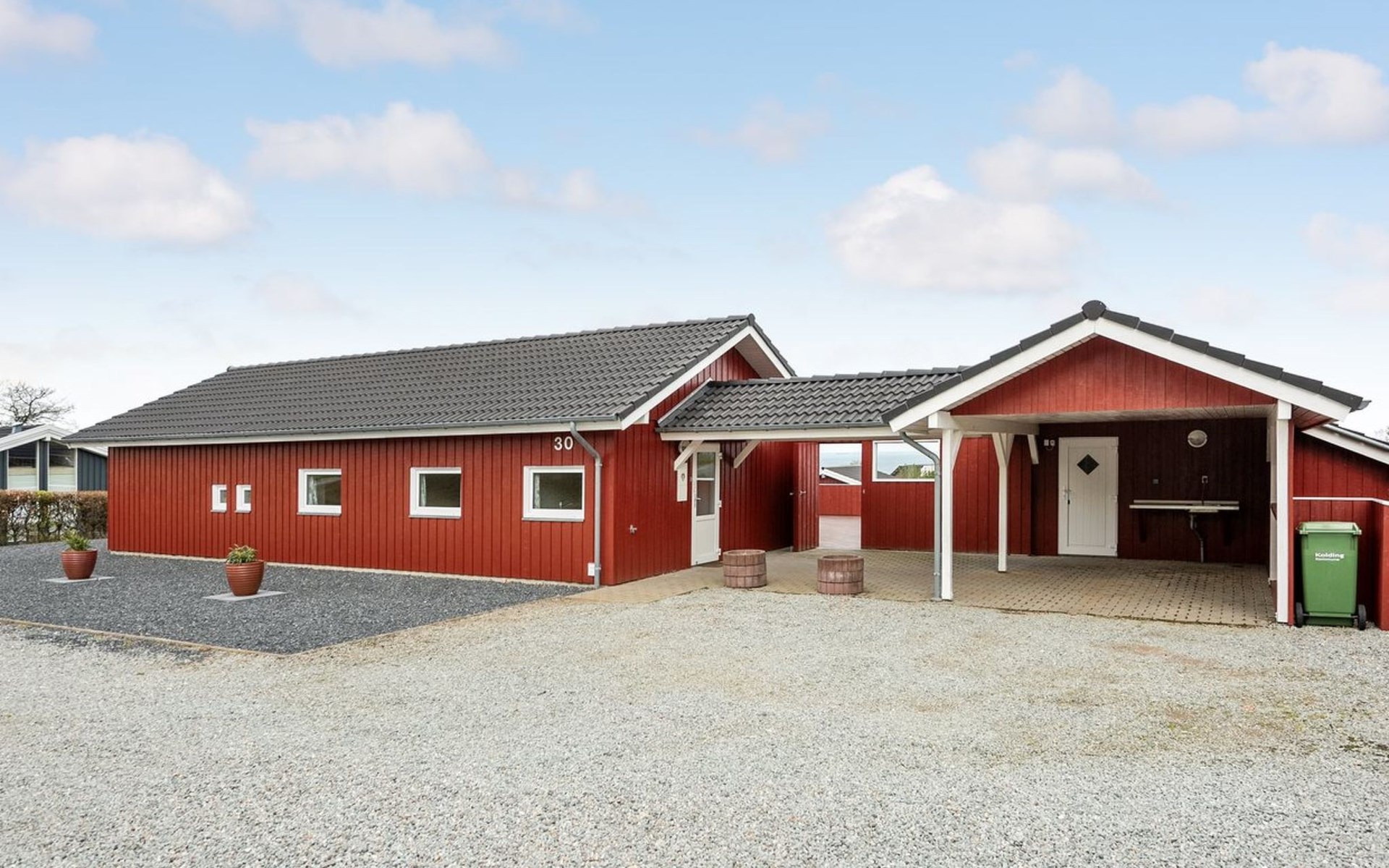 Eengezinswoning, bouwjaar 2000. 200 m van zee. Voor alleengebruik: terrein 950 m2, verzorgde tuin. Terras (50 m2). In het huis: sauna, wasmachine, droger. Carport. Levensmiddelenwinkel 500 m.