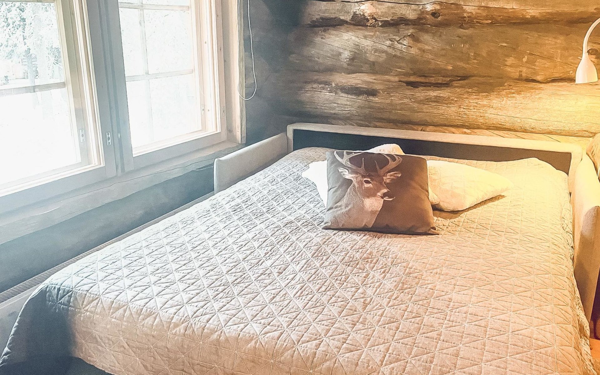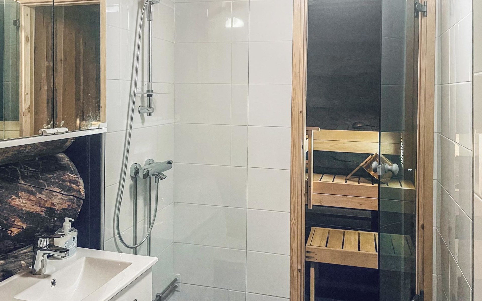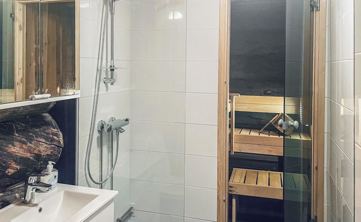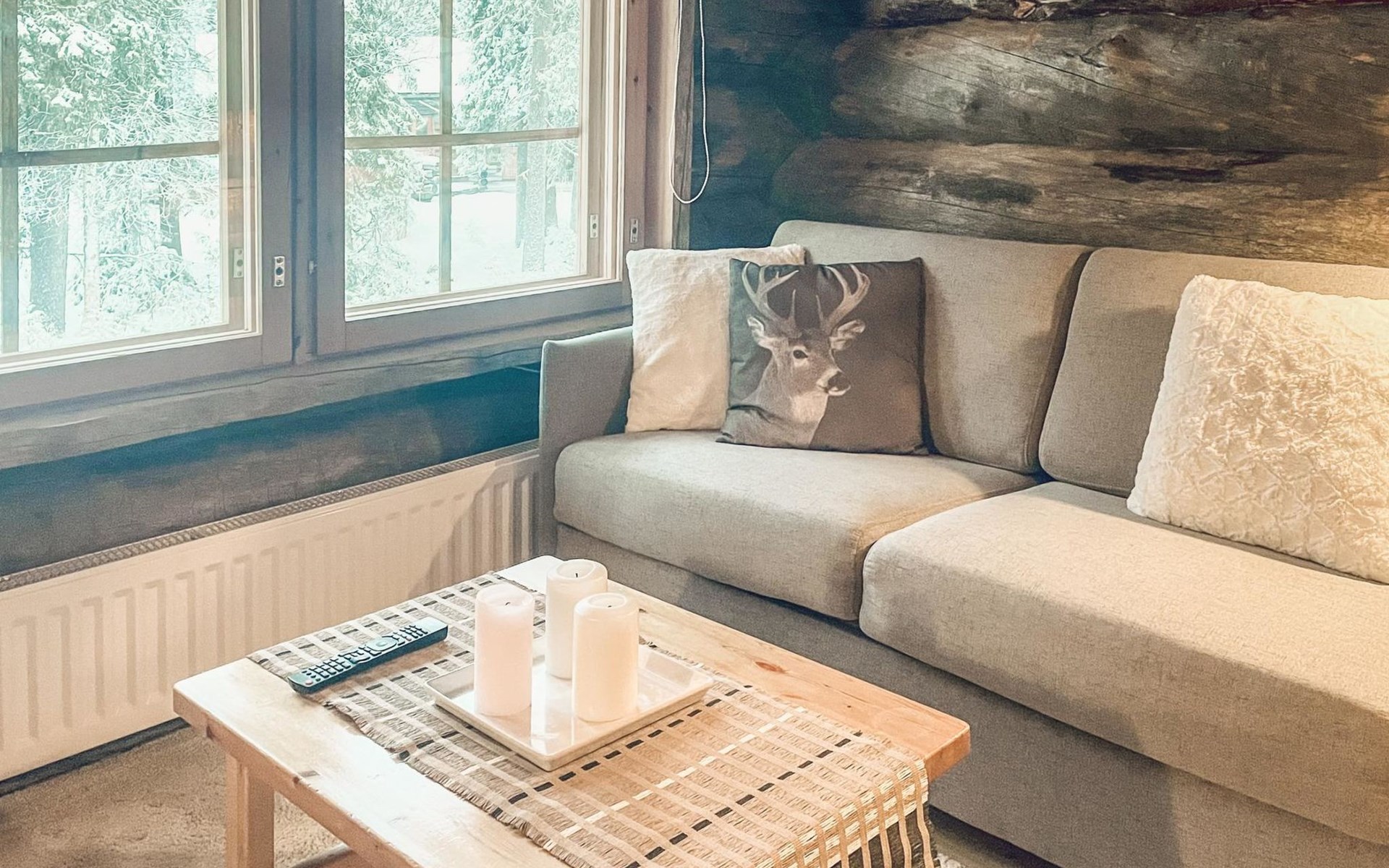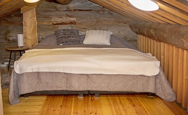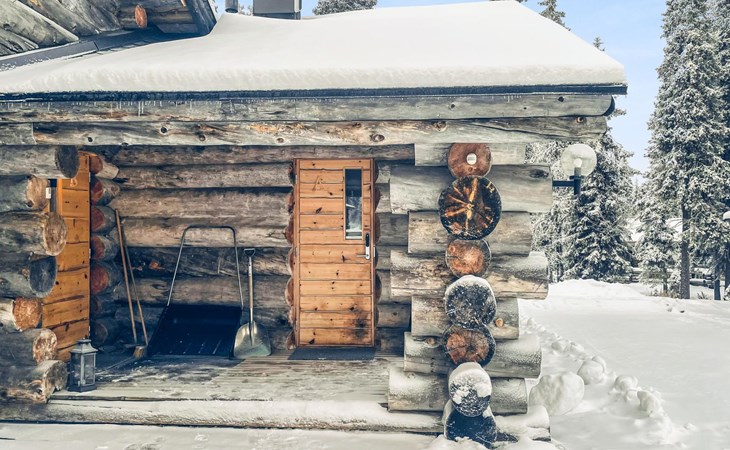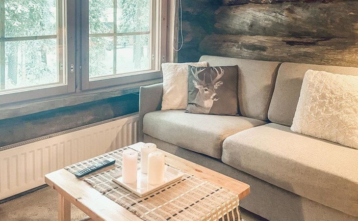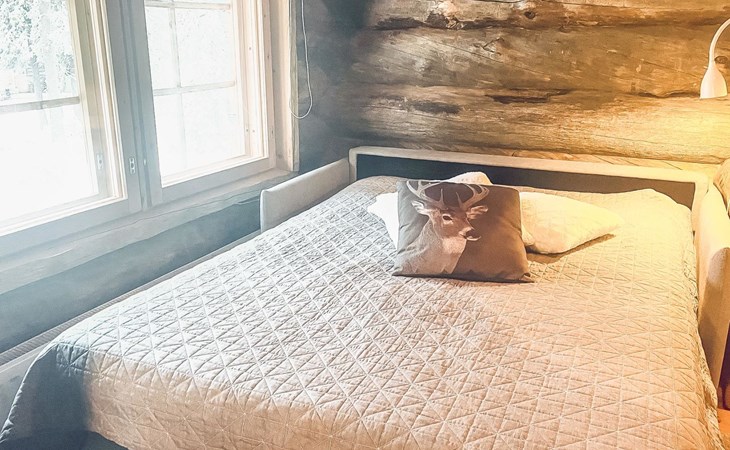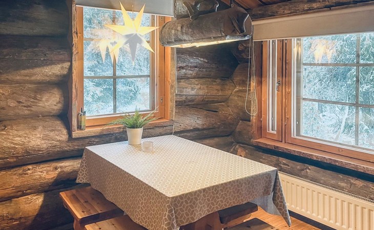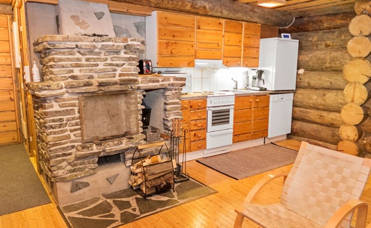 27 km to the north from Kuusamo, Vuosseli (East-Ruka) 900 m. Apartment in a kelo log-made semi-detached house, built in 1996. Loft: 2 beds, living room/kitchen: spreadable sofa bed, electric sauna.