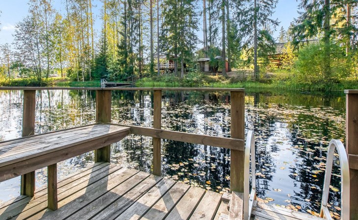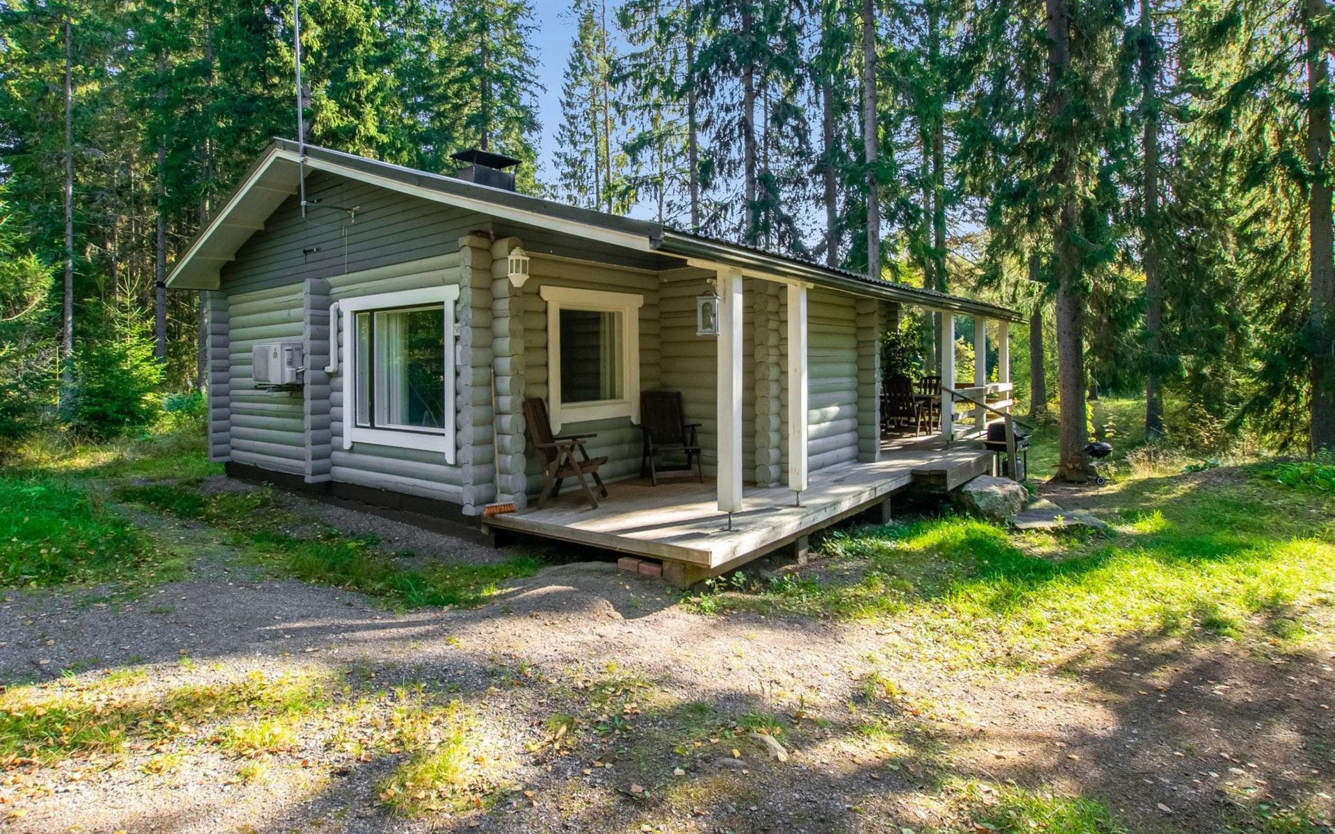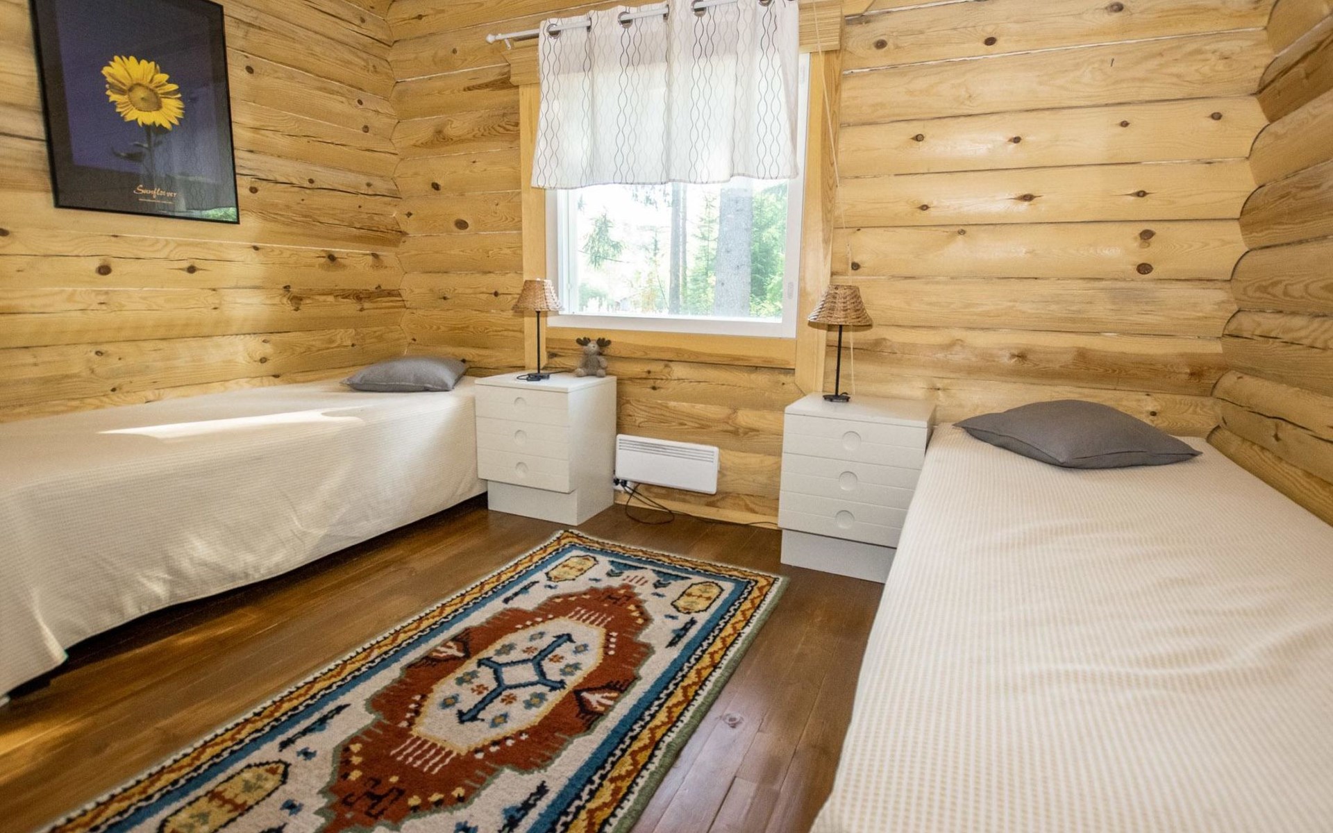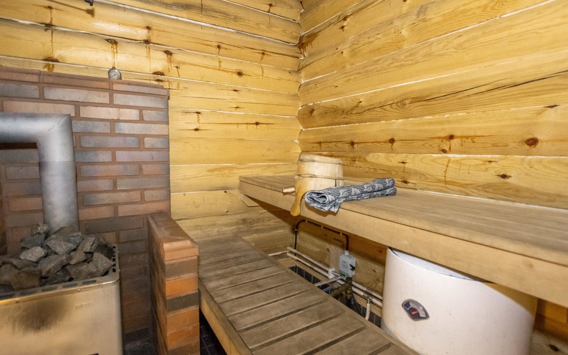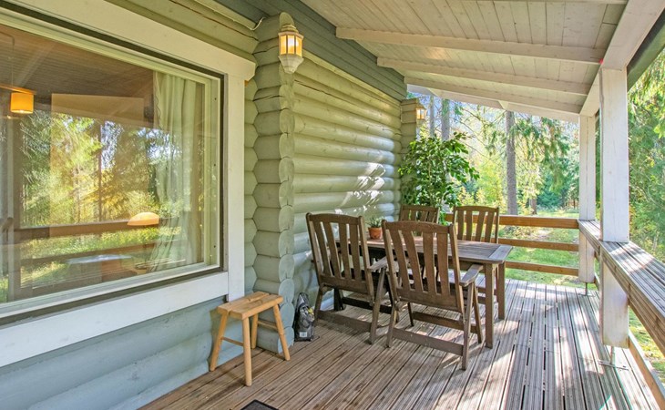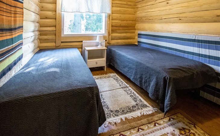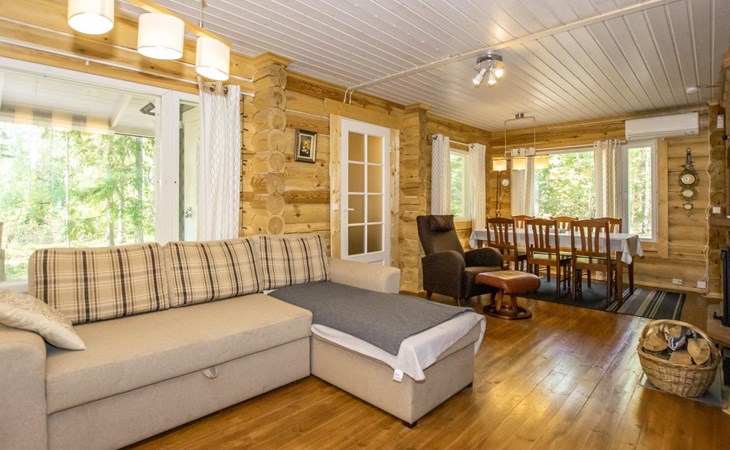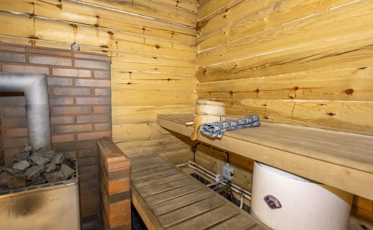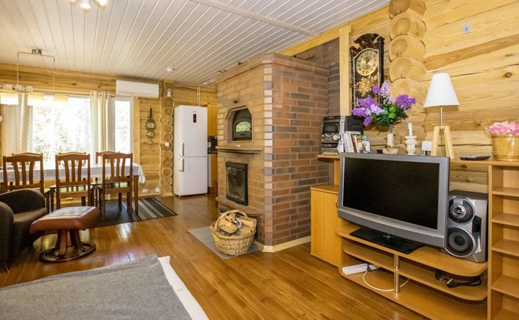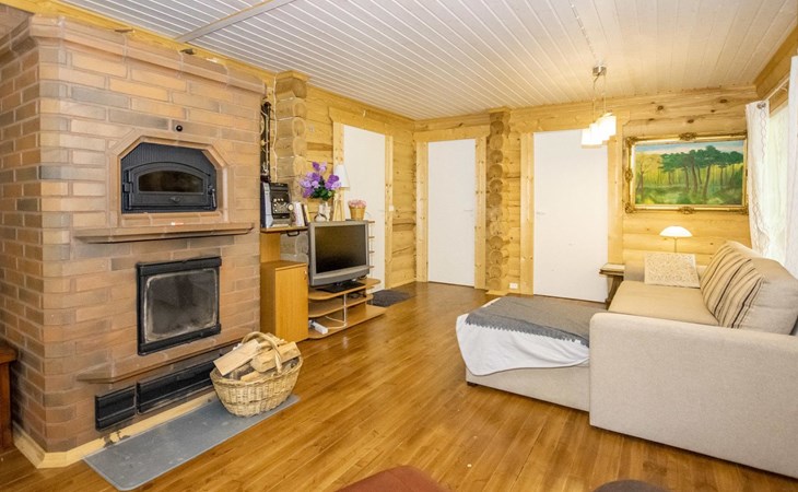 Log cabin in 2013, kitchen-living room with sofa bed, bedroom with 2 beds, bedroom with 2 beds, bathroom (shower and toilet), sauna (wood stove), terrace.