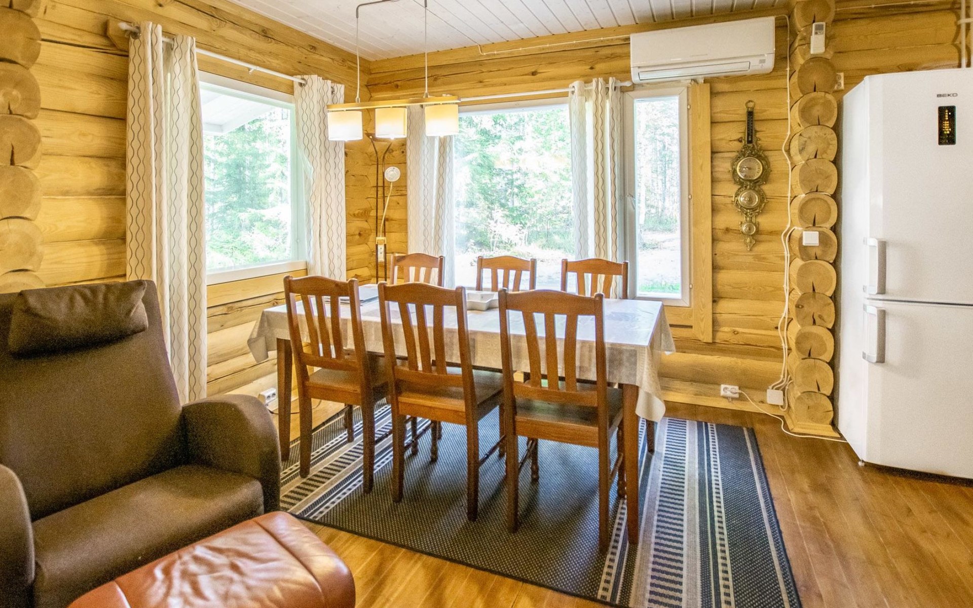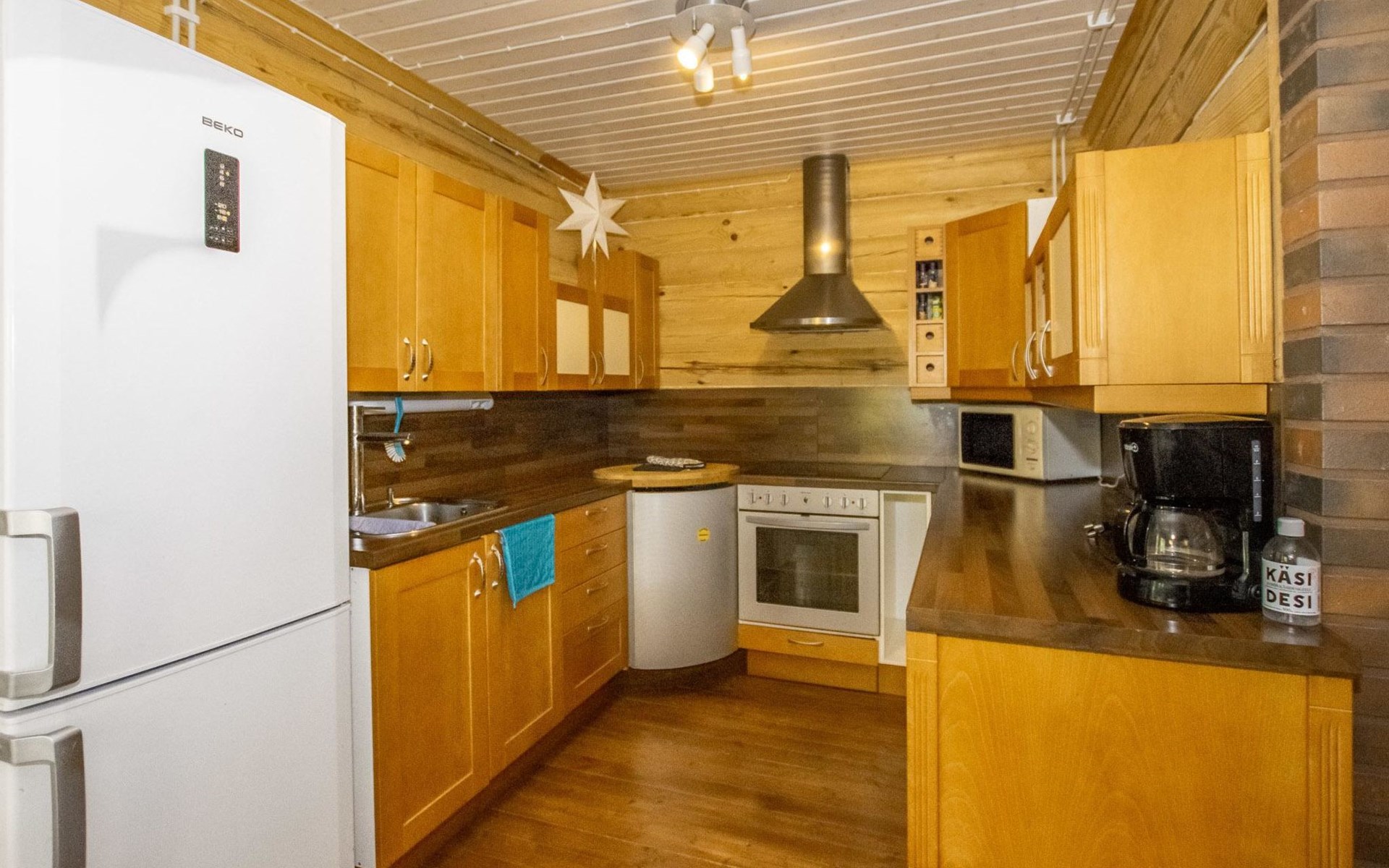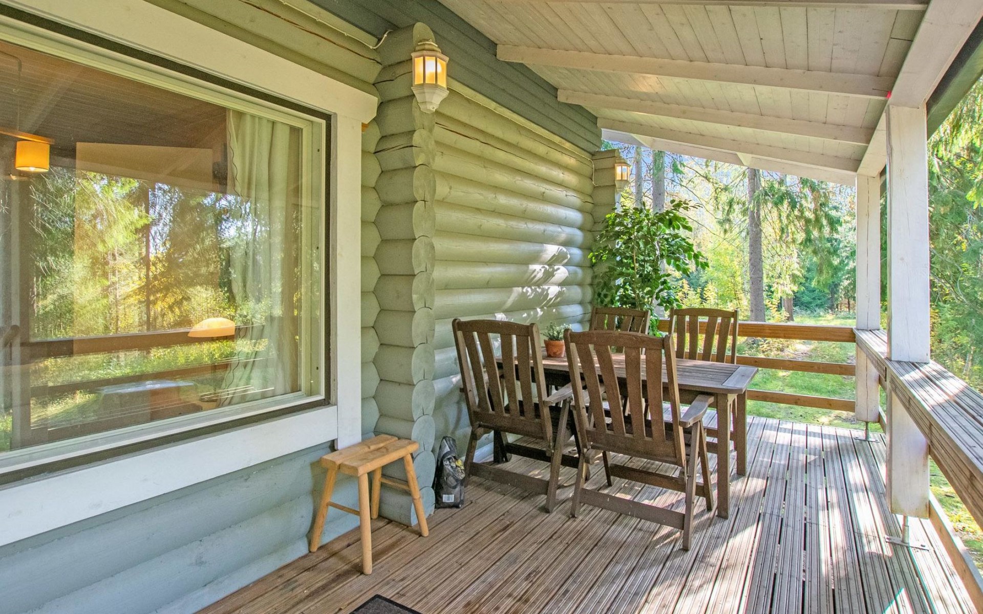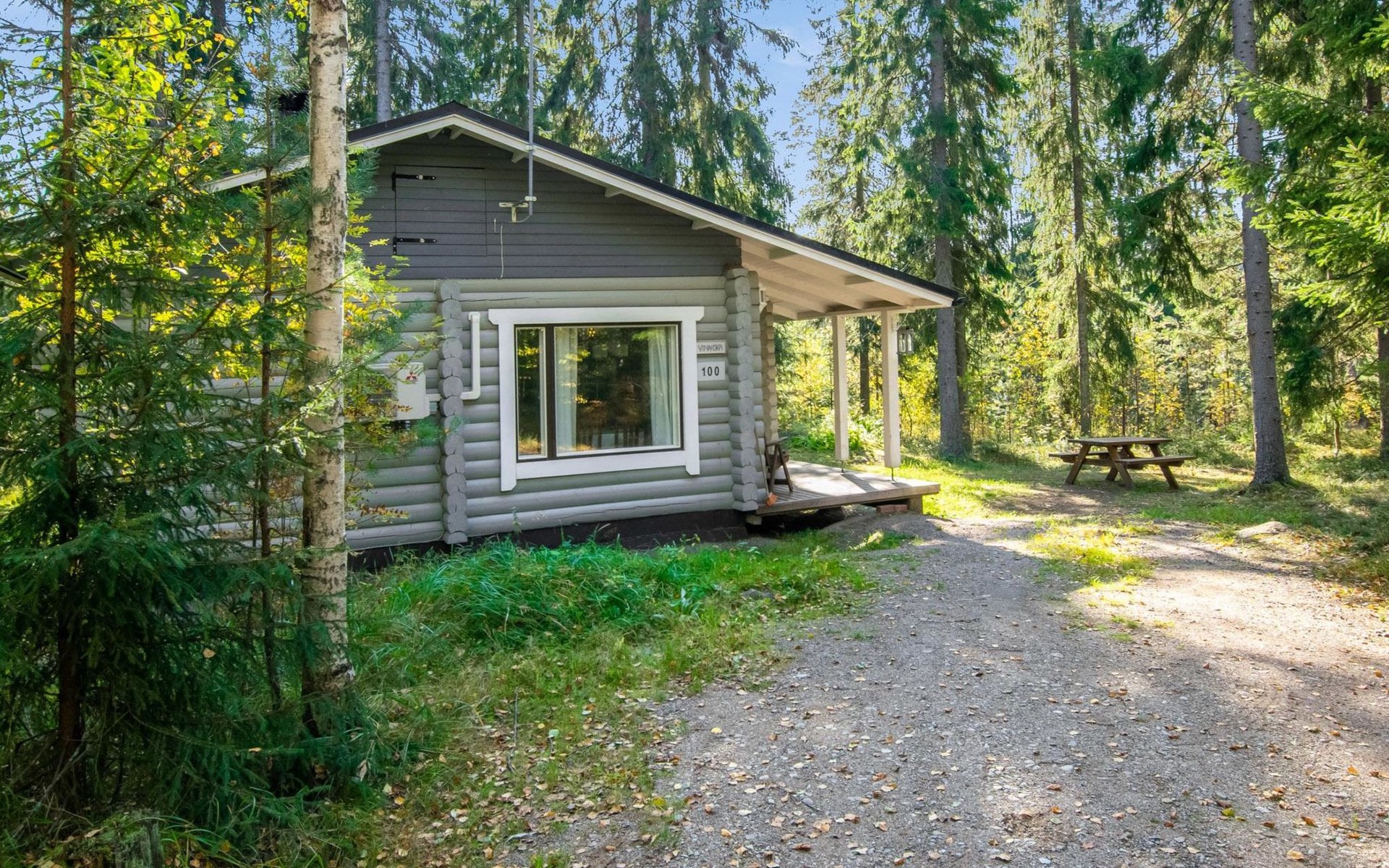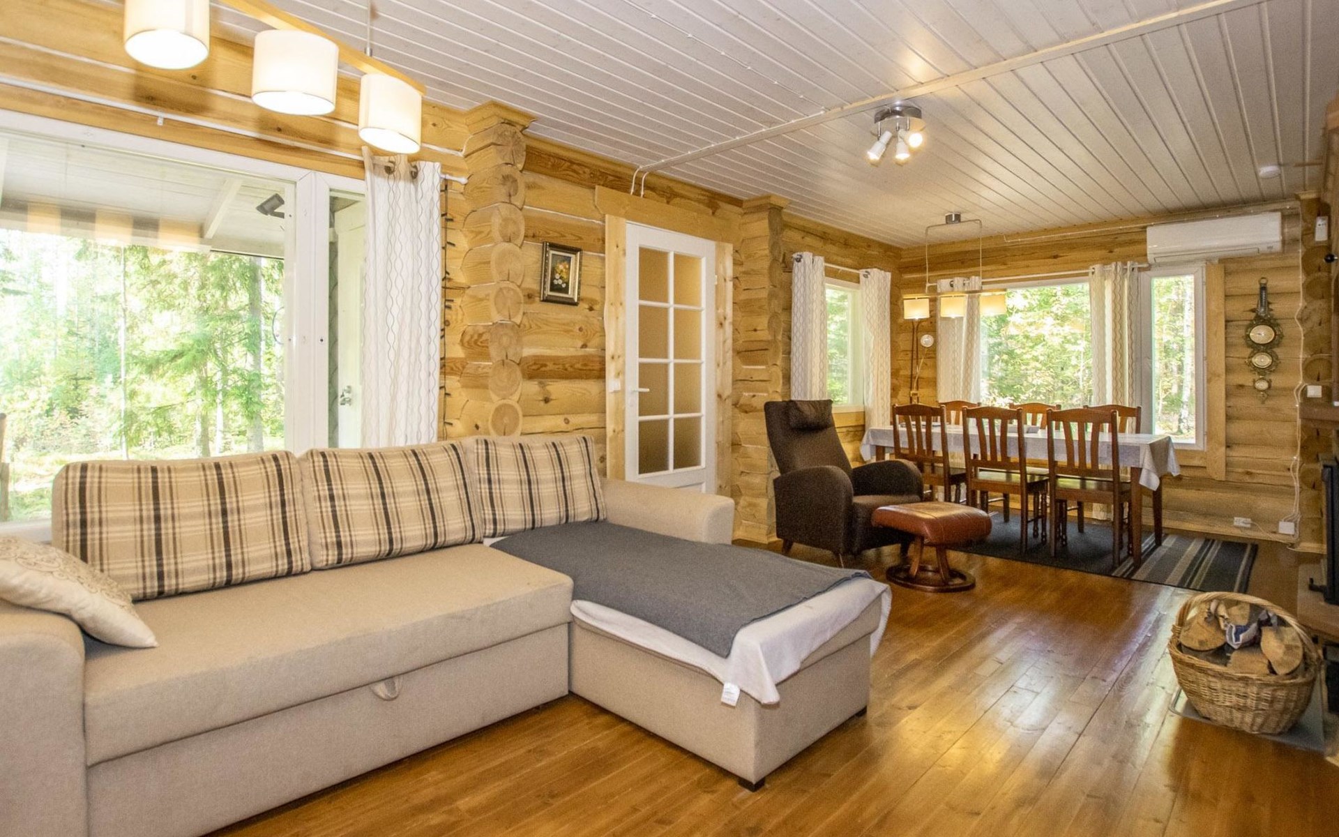 Log cabin in 2013, kitchen-living room with sofa bed, bedroom with 2 beds, bedroom with 2 beds, bathroom (shower and toilet), sauna (wood stove), terrace.