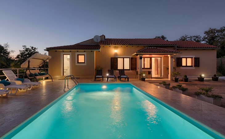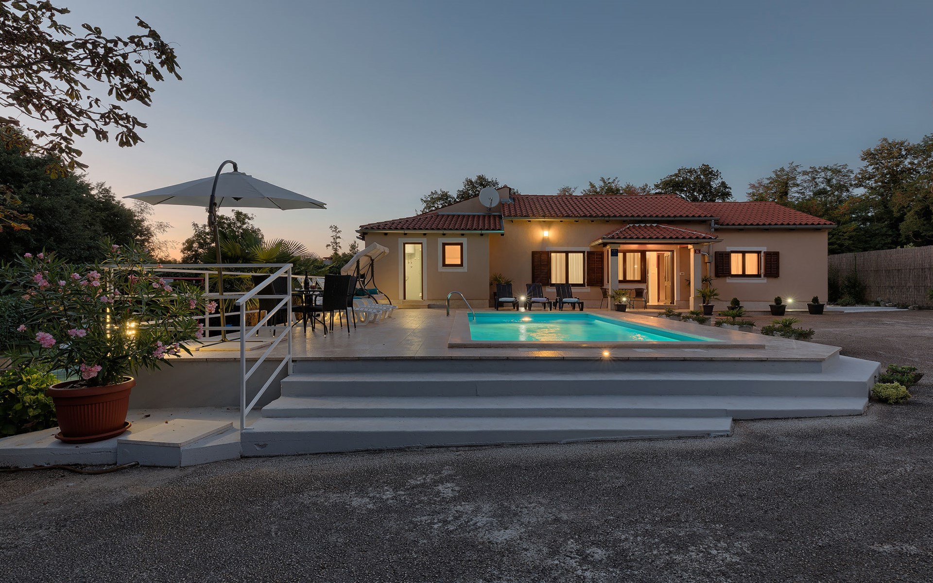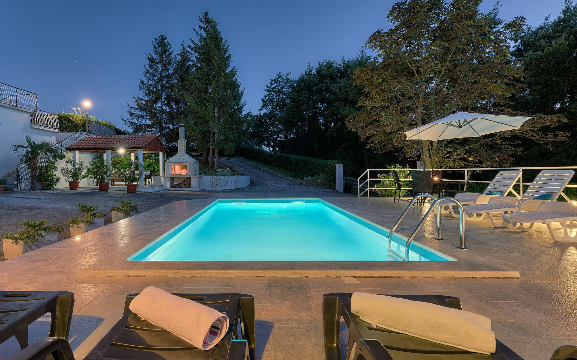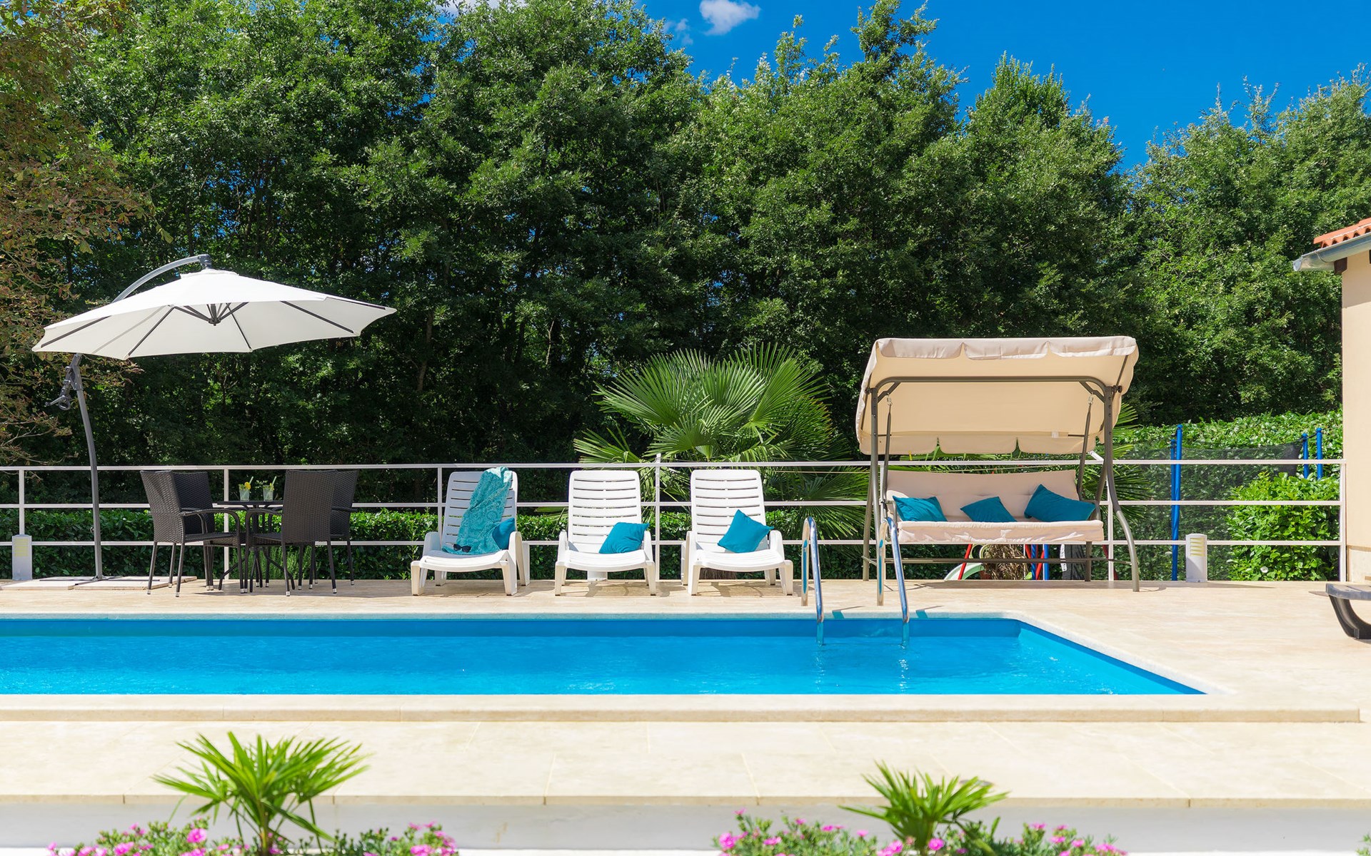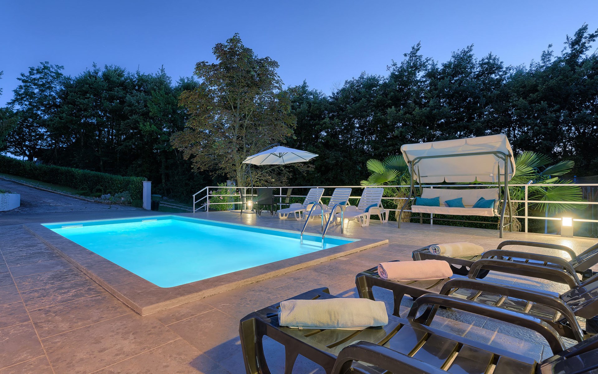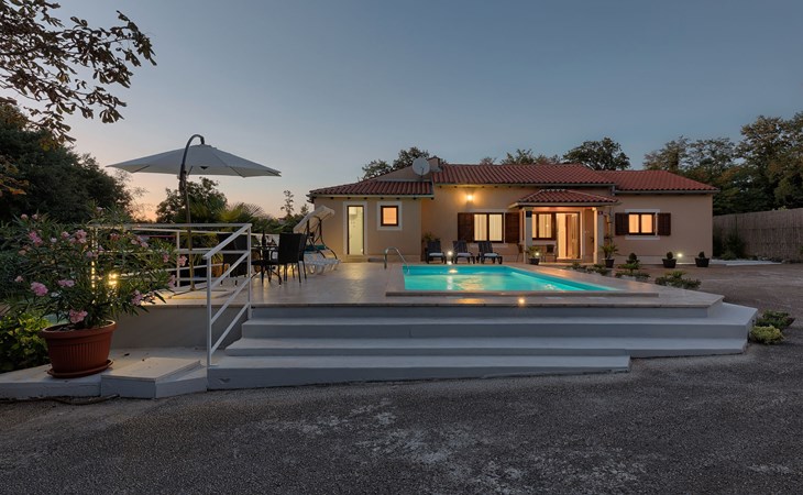 Eengezinswoning "Liberat". In het gehucht Zgrablići, 3 km van het centrum van Žminj, 20 km van zee. Voor medegebruik: terrein 5.000 m2 met gazon en planten. Voor alleengebruik: openluchtzwembad hoekig (7 x 3 m, 23 m2, 130 cm diepte, seizoensgebonden beschikbaarheid: 15.Mei. - 30.Sep.). WC bij het zwembad, buitendouche, prieel, terras, tuinmeubelen, barbecue, kinderspeelplaats (glijbaan, schommel). In het huis: internetaansluiting, wasmachine. Parkeerplaats op het terrein. Winkel 3 km, supermarkt 3 km, restaurant 1 km, bushalte 4 km, rotsstrand 28 km. De eigenaar woont op hetzelfde terrein.