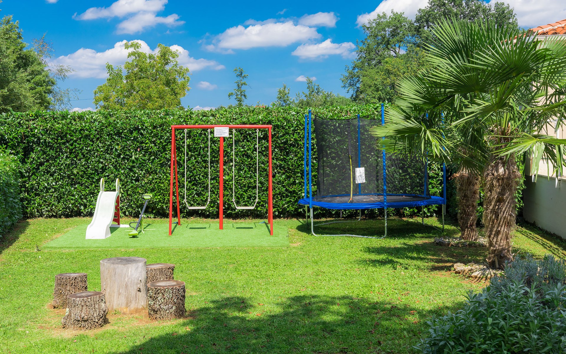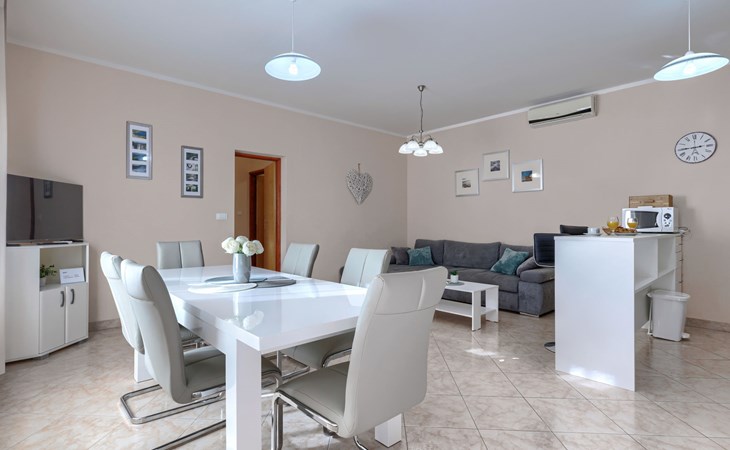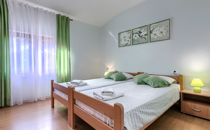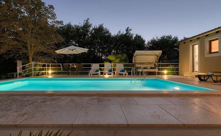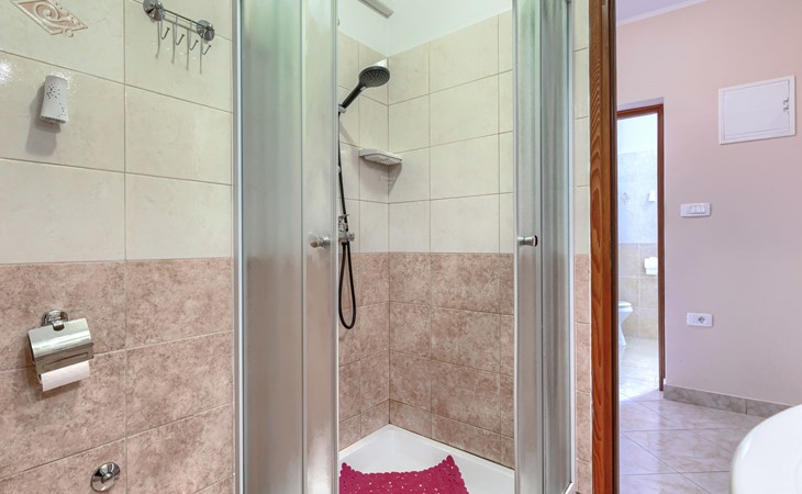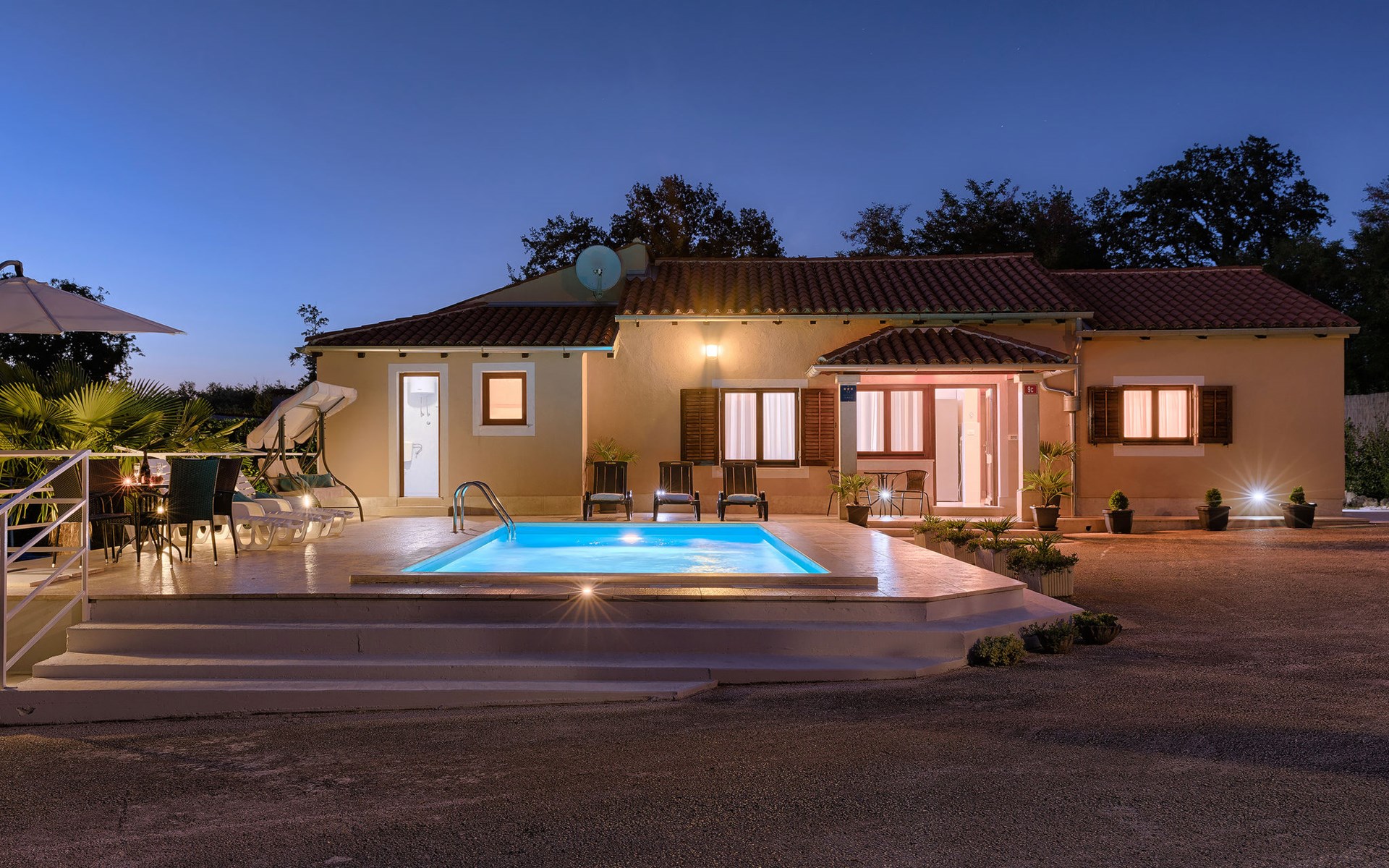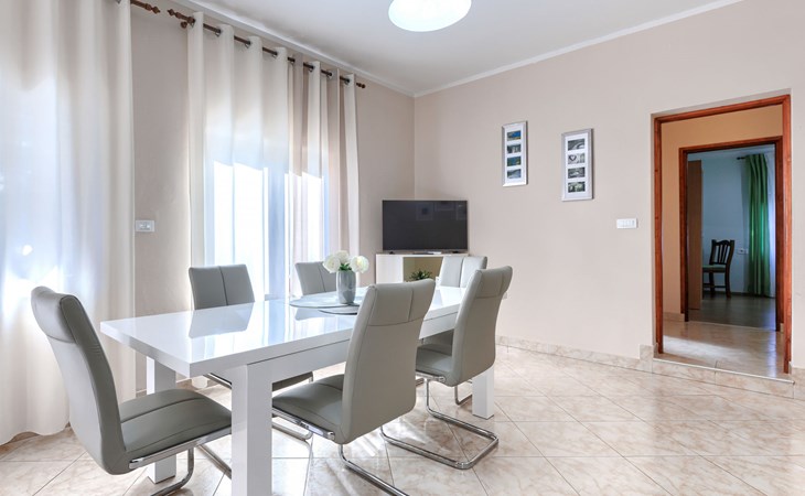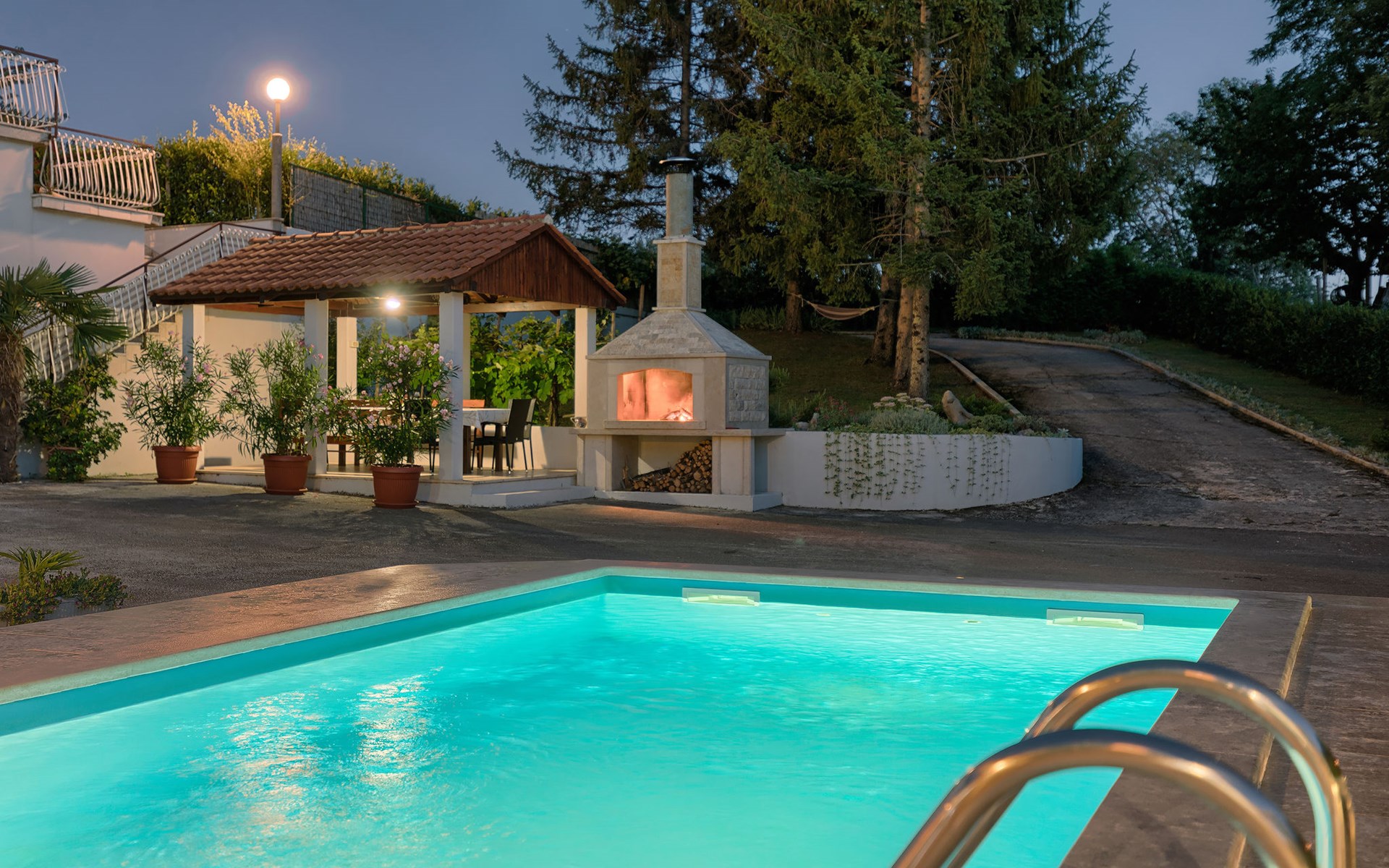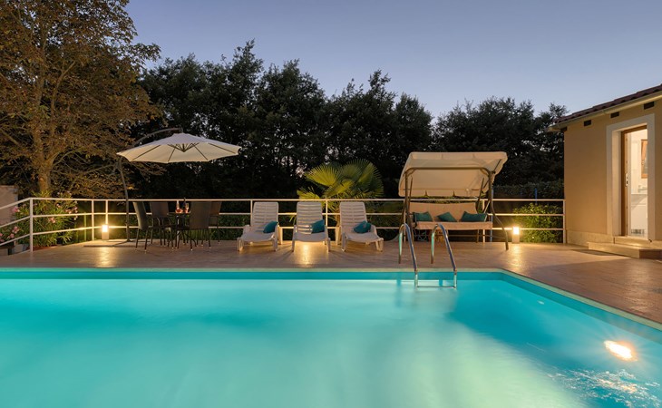 Eengezinswoning "Liberat". In het gehucht Zgrablići, 3 km van het centrum van Žminj, 20 km van zee. Voor medegebruik: terrein 5.000 m2 met gazon en planten. Voor alleengebruik: openluchtzwembad hoekig (7 x 3 m, 23 m2, 130 cm diepte, seizoensgebonden beschikbaarheid: 15.Mei. - 30.Sep.). WC bij het zwembad, buitendouche, prieel, terras, tuinmeubelen, barbecue, kinderspeelplaats (glijbaan, schommel). In het huis: internetaansluiting, wasmachine. Parkeerplaats op het terrein. Winkel 3 km, supermarkt 3 km, restaurant 1 km, bushalte 4 km, rotsstrand 28 km. De eigenaar woont op hetzelfde terrein.