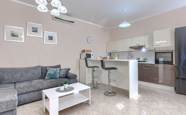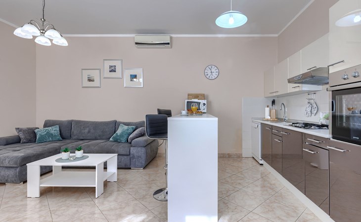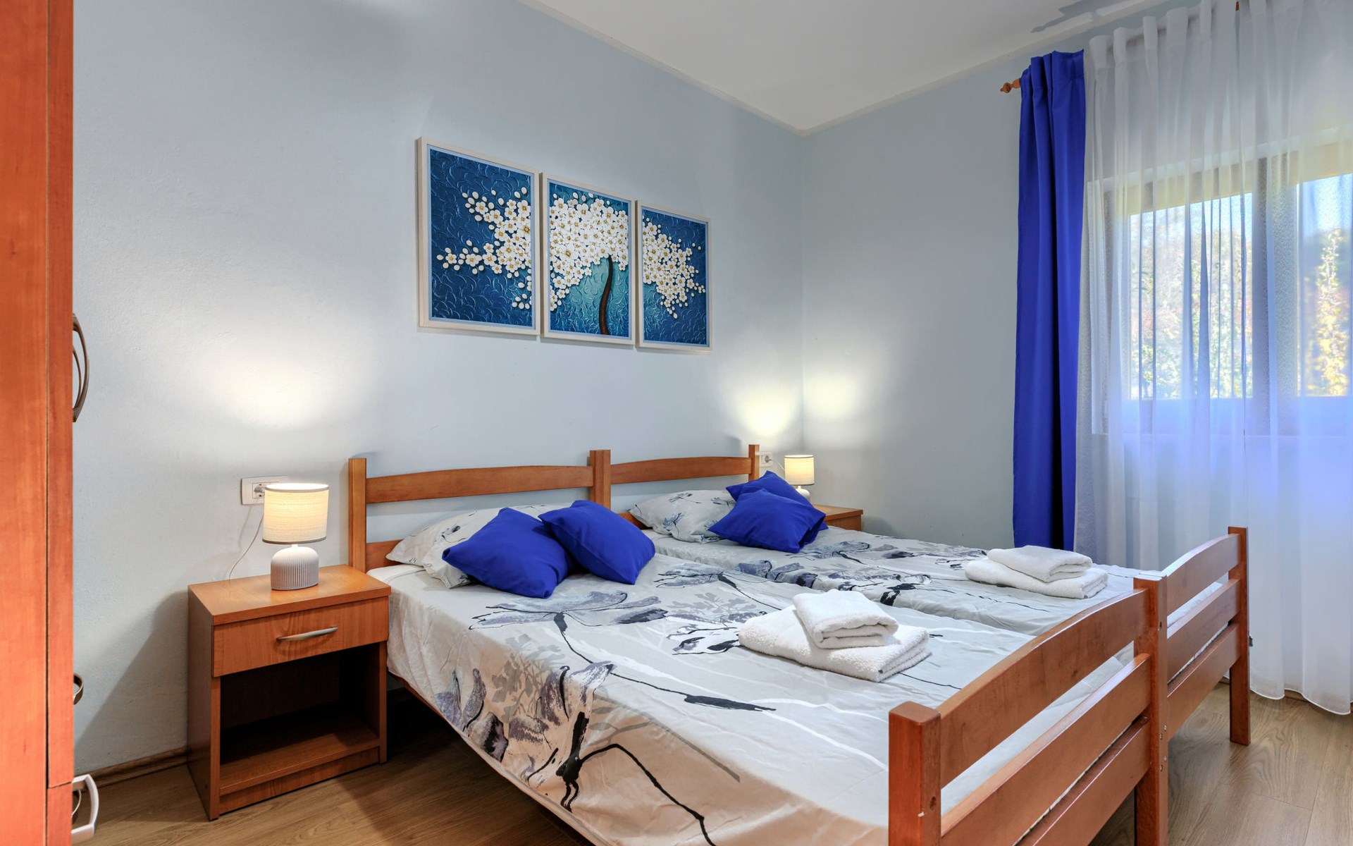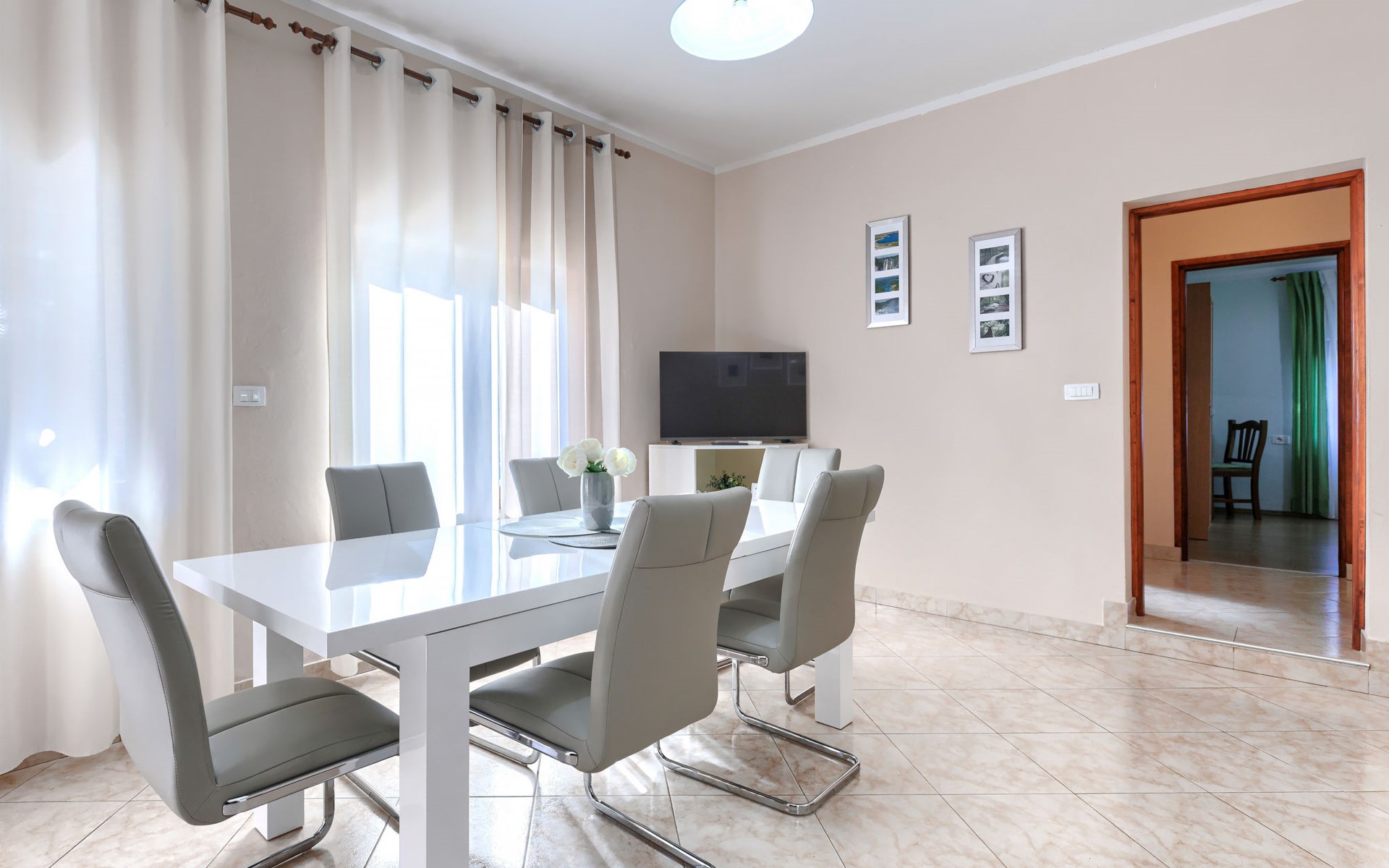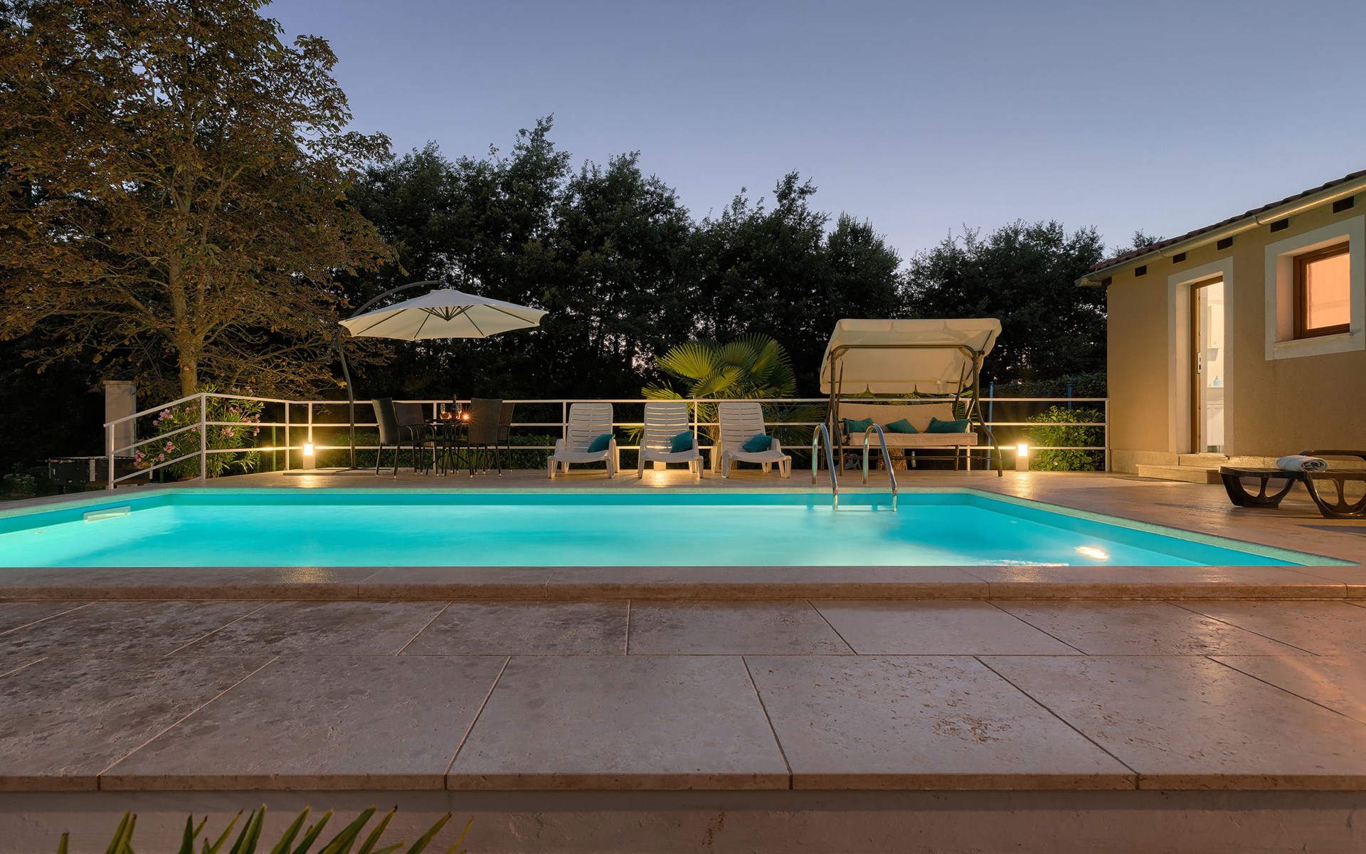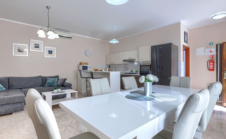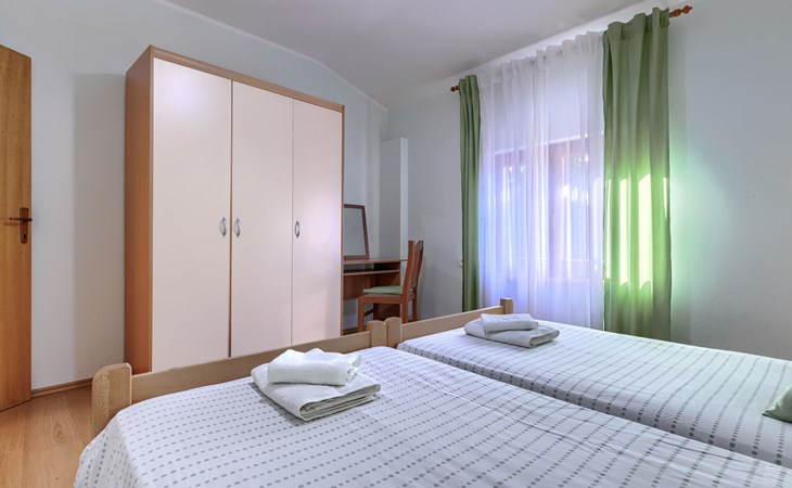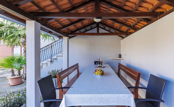 Eengezinswoning "Liberat". In het gehucht Zgrablići, 3 km van het centrum van Žminj, 20 km van zee. Voor medegebruik: terrein 5.000 m2 met gazon en planten. Voor alleengebruik: openluchtzwembad hoekig (7 x 3 m, 23 m2, 130 cm diepte, seizoensgebonden beschikbaarheid: 15.Mei. - 30.Sep.). WC bij het zwembad, buitendouche, prieel, terras, tuinmeubelen, barbecue, kinderspeelplaats (glijbaan, schommel). In het huis: internetaansluiting, wasmachine. Parkeerplaats op het terrein. Winkel 3 km, supermarkt 3 km, restaurant 1 km, bushalte 4 km, rotsstrand 28 km. De eigenaar woont op hetzelfde terrein.