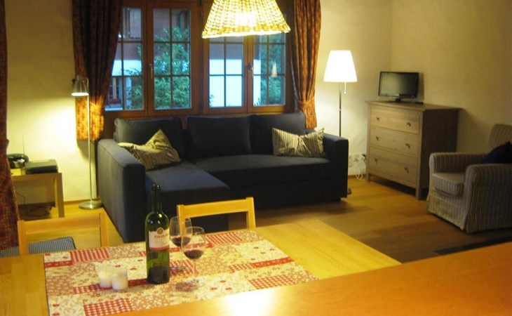 3 room apartment, quiet location. Renovated and newly furnished in 2010. Living room with sofa, tv, radio with MP3 connection. WiFi. Open-plan kitchen (among other things furnished with capsule coffee machine and fondue-set) with refrigerator and freezer. 1 bedroom with a double bed (140x200cm), 1 bedroom with a bunk bed (90x190cm) and 1 separate bed (90x200cm). Bathroom with bath tub/toilet. Baby cot (different sizes) incl. bed linen and highchair available on request from the keyholder.